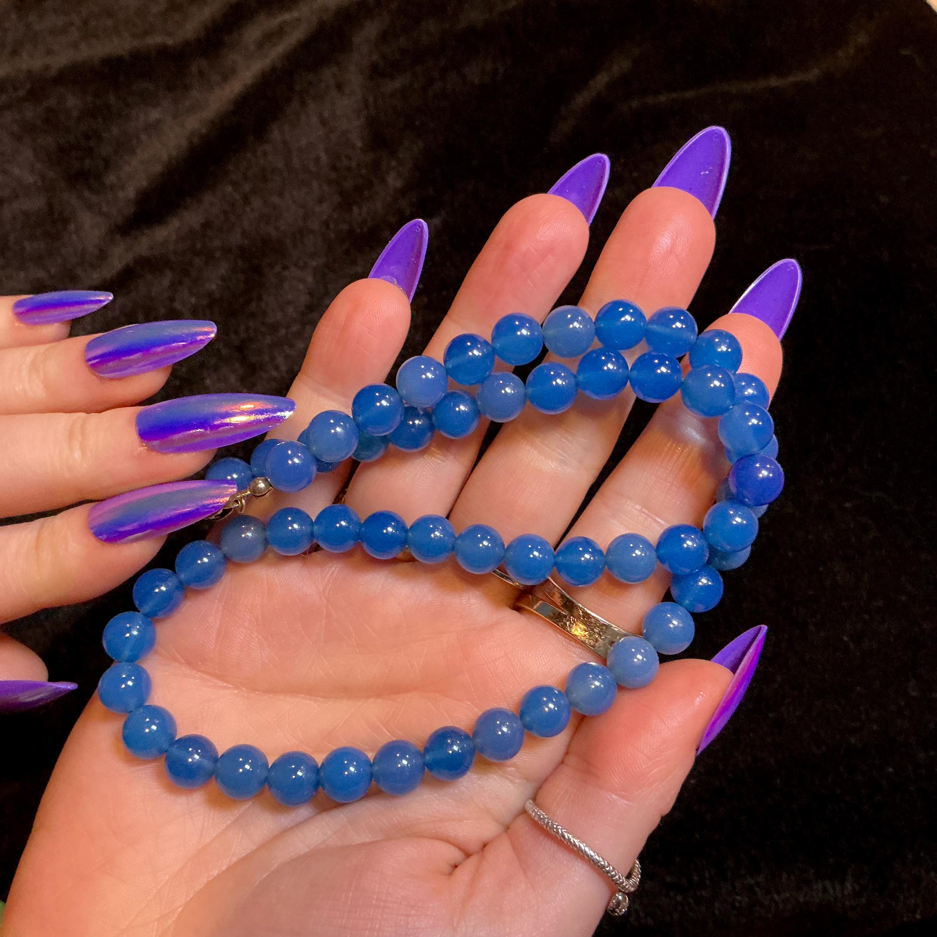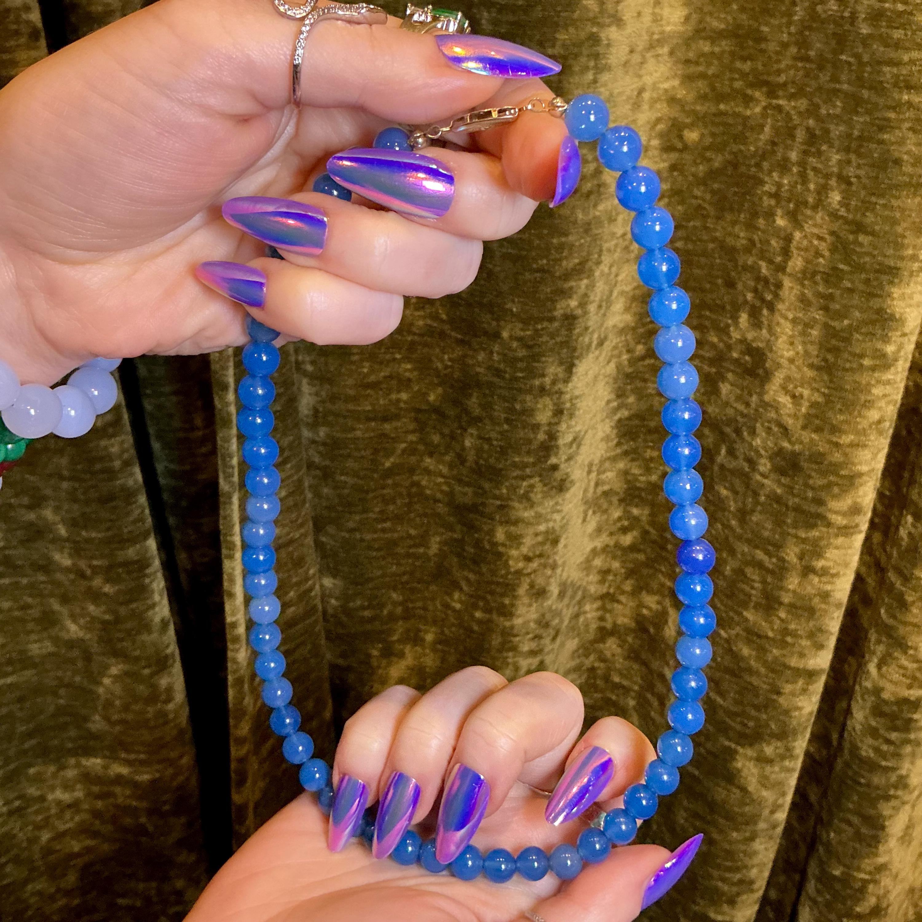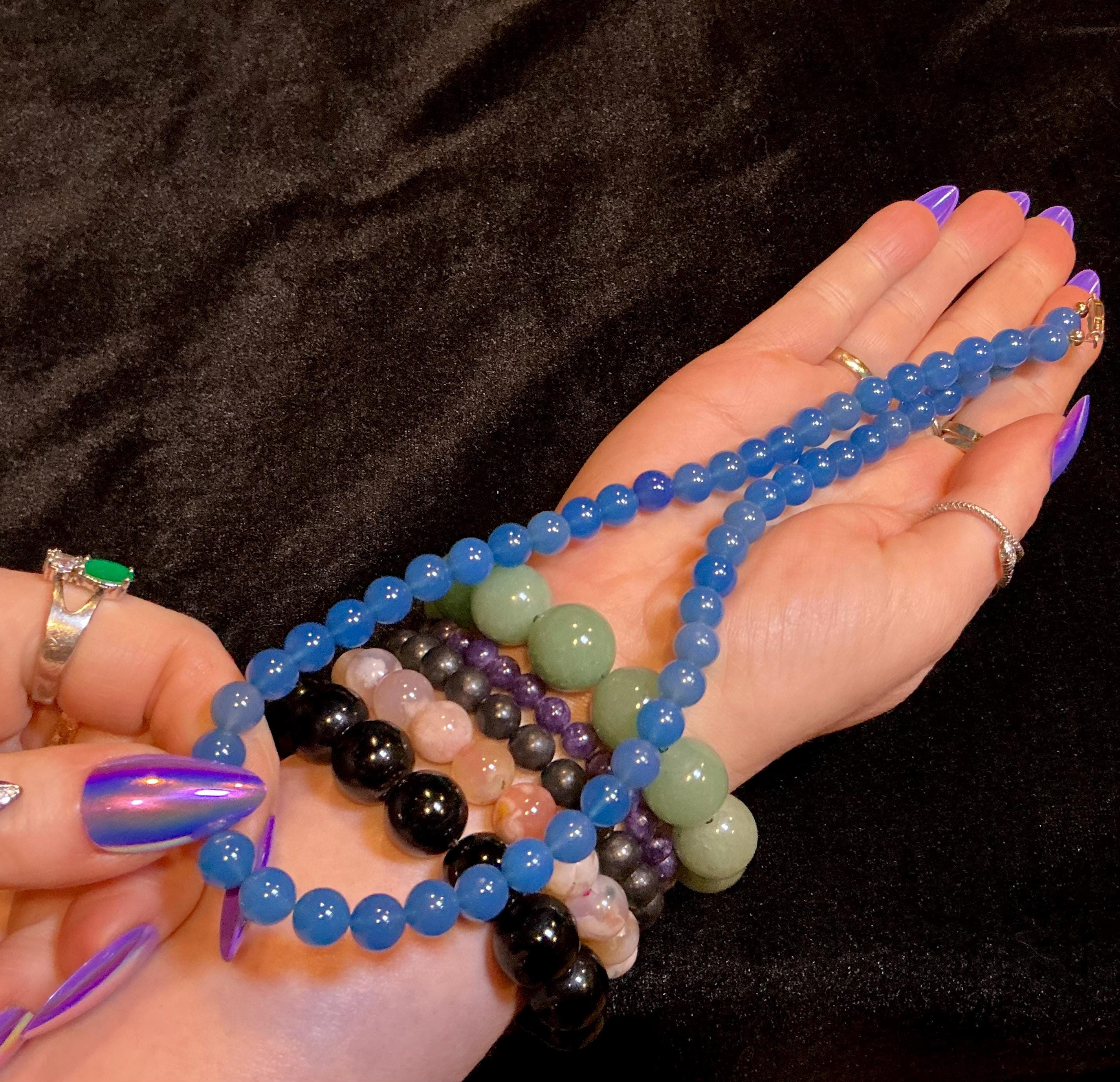Vintage Chalcedony Necklace ~ Genuine Blue Beaded Gemstones ~ Crystal Goddess Sacred Adornment ~ 18 inches.