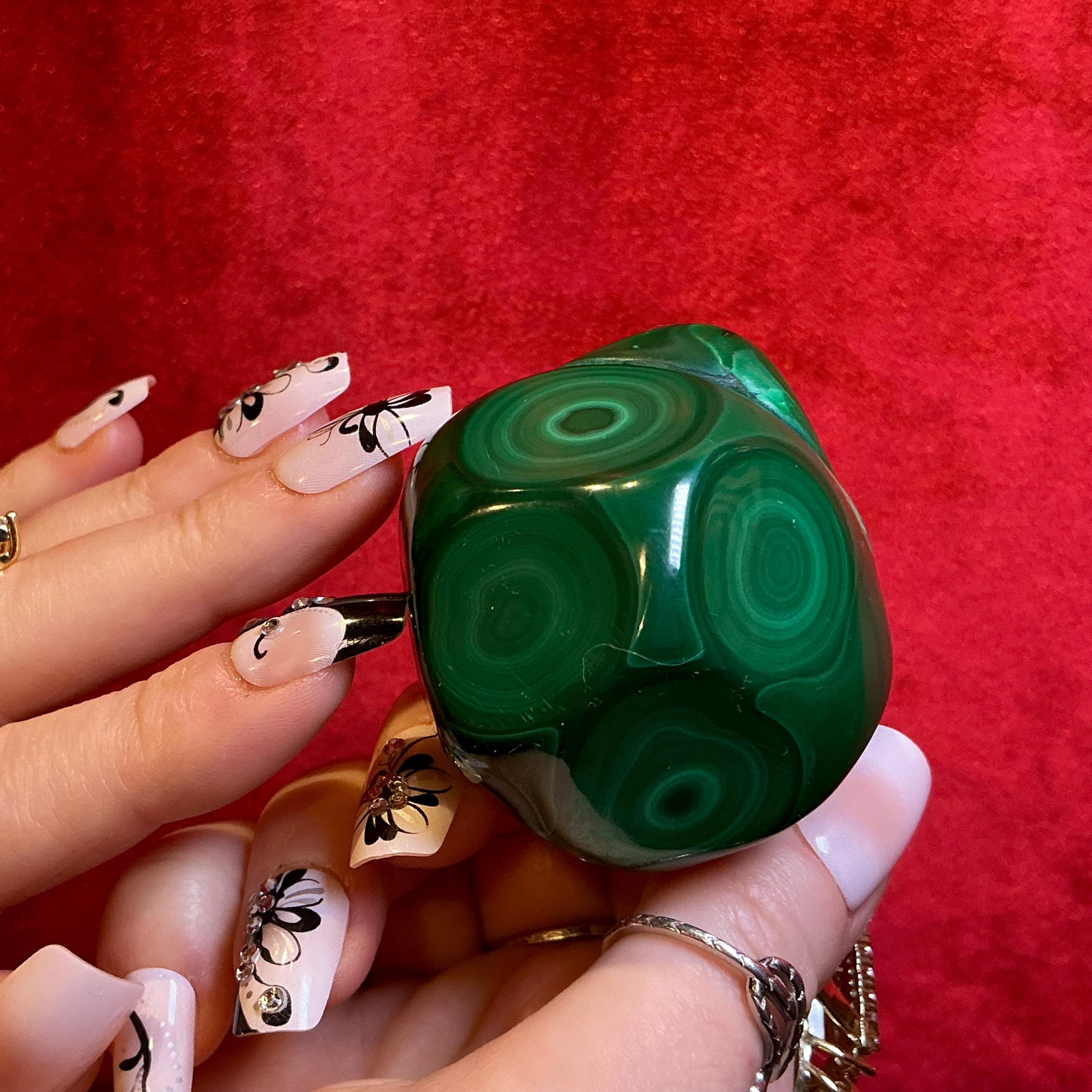 Malachite Freeform Crystal ~ Large 8 oz. ~ 2 1/2" Long ~ Beautiful Polished Green Mineral Specimen Display ~ Swirling Bullseye Patterns ~