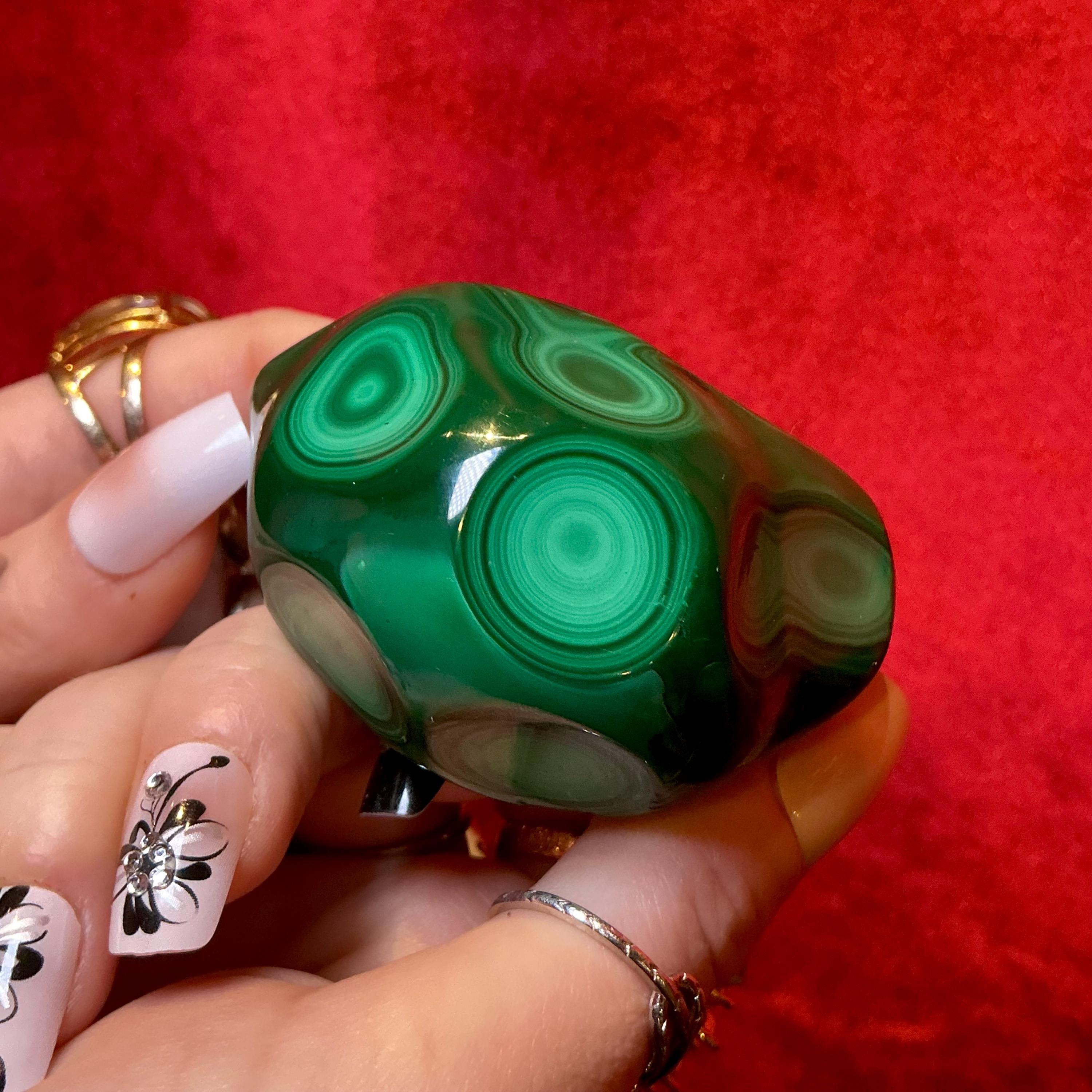 Malachite Freeform Crystal ~ Large 8.5 oz. ~ 2 1/2" Long ~ Beautiful Polished Green Mineral Specimen Display ~ Swirling Bullseye Patterns ~