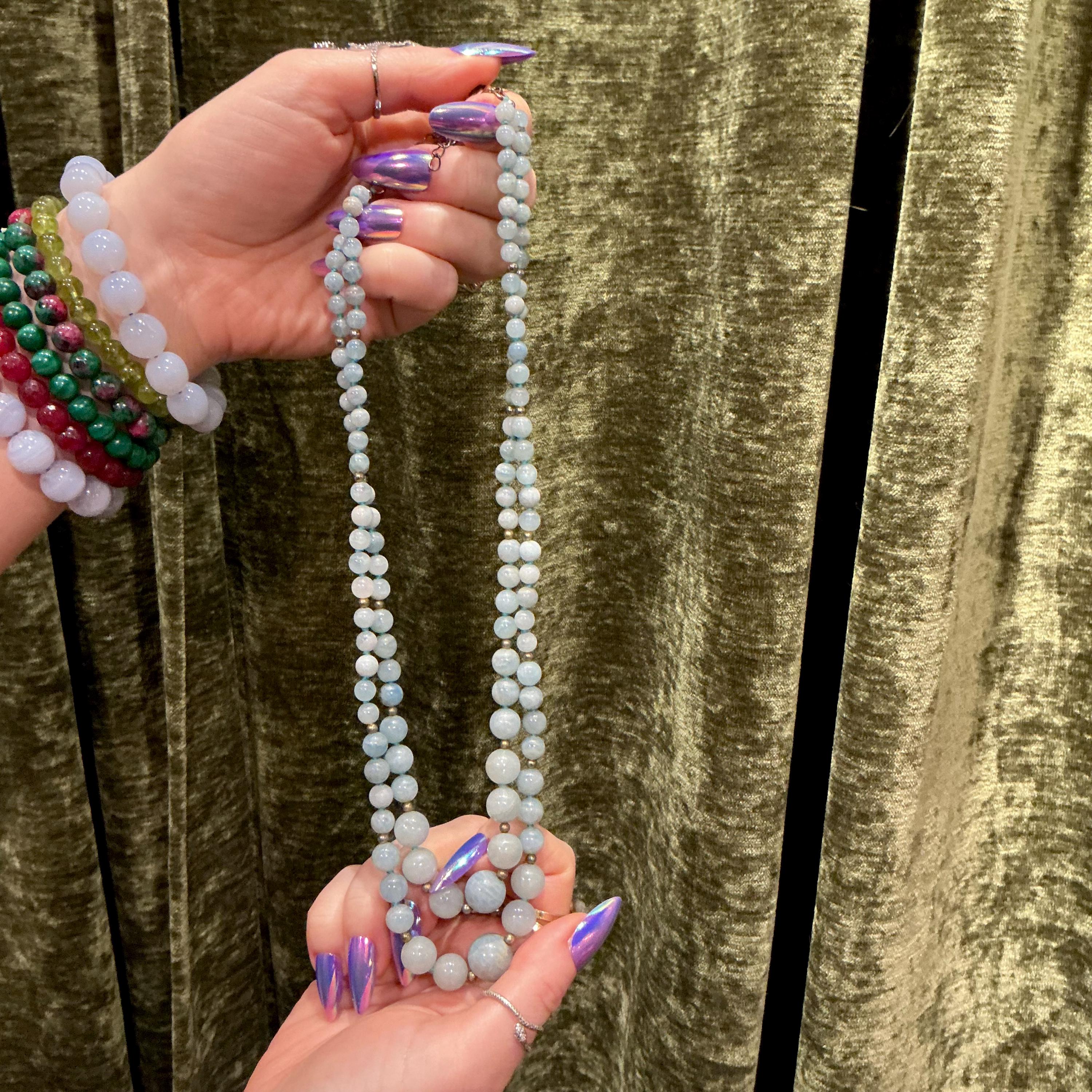 This is such a fun and radiant Aquamarine double stranded necklace.