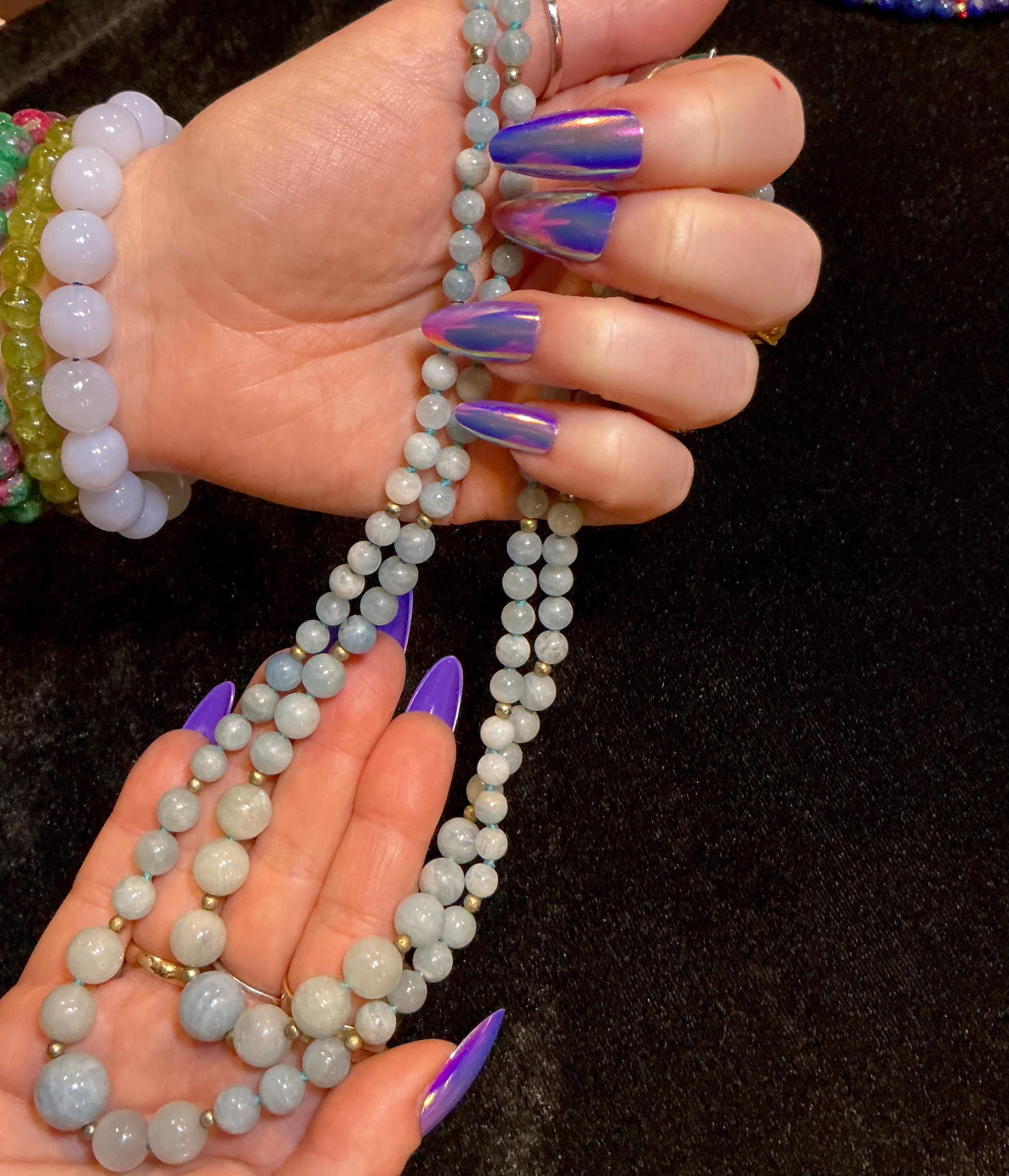 Vintage Aquamarine 18" Necklace ~ Genuine Beaded Gemstones ~ Sacred Adornment