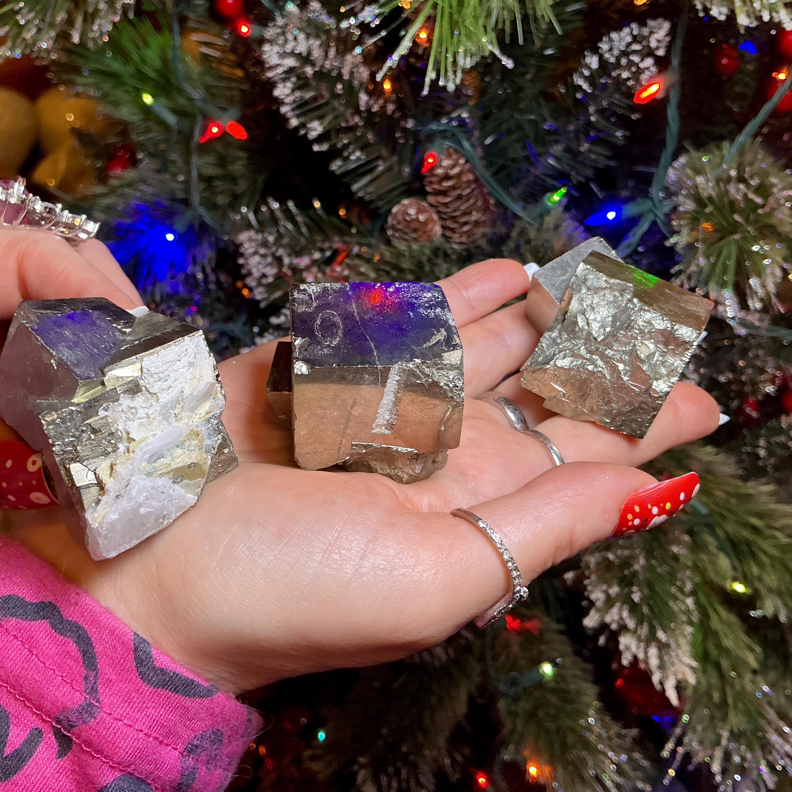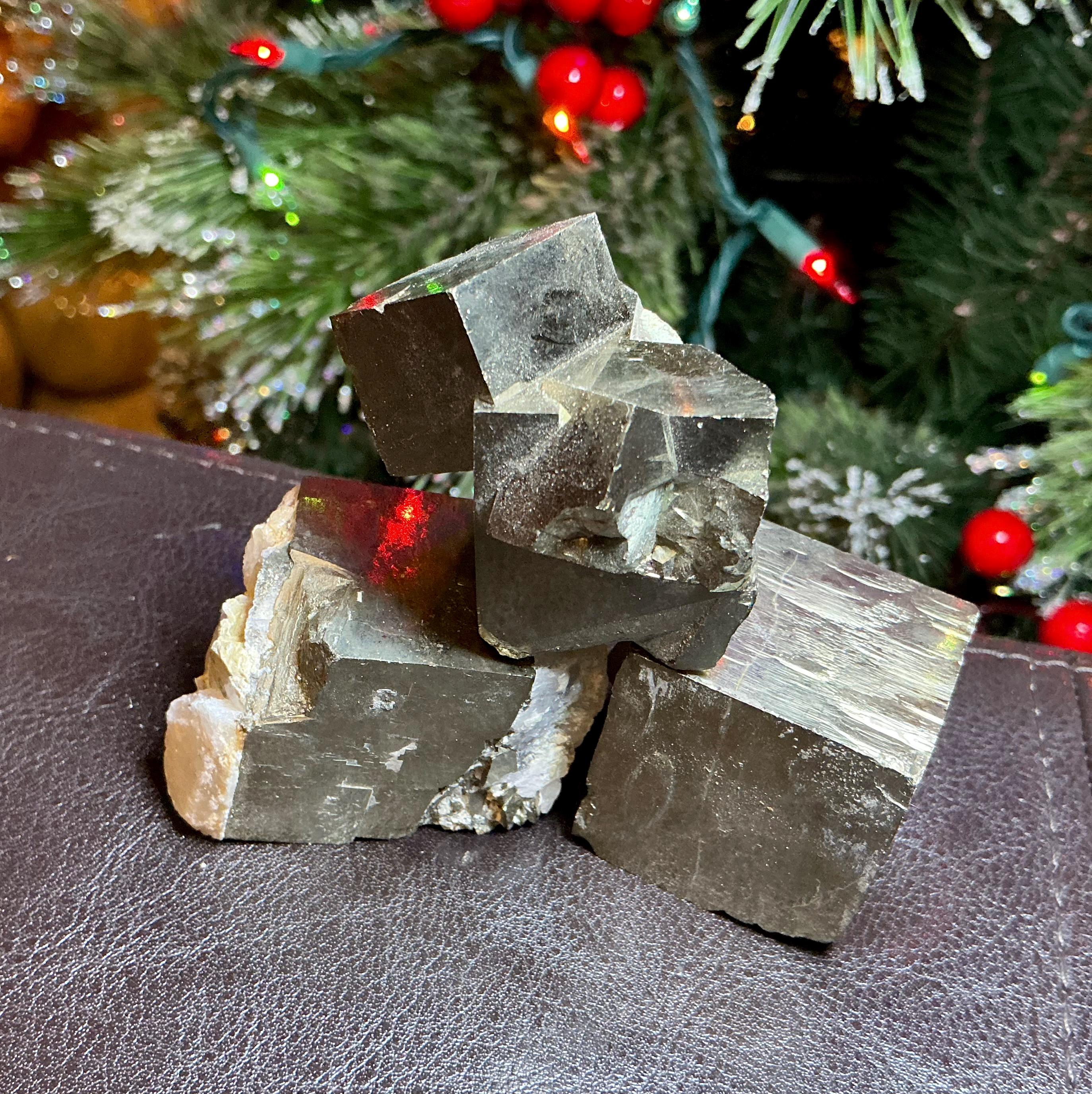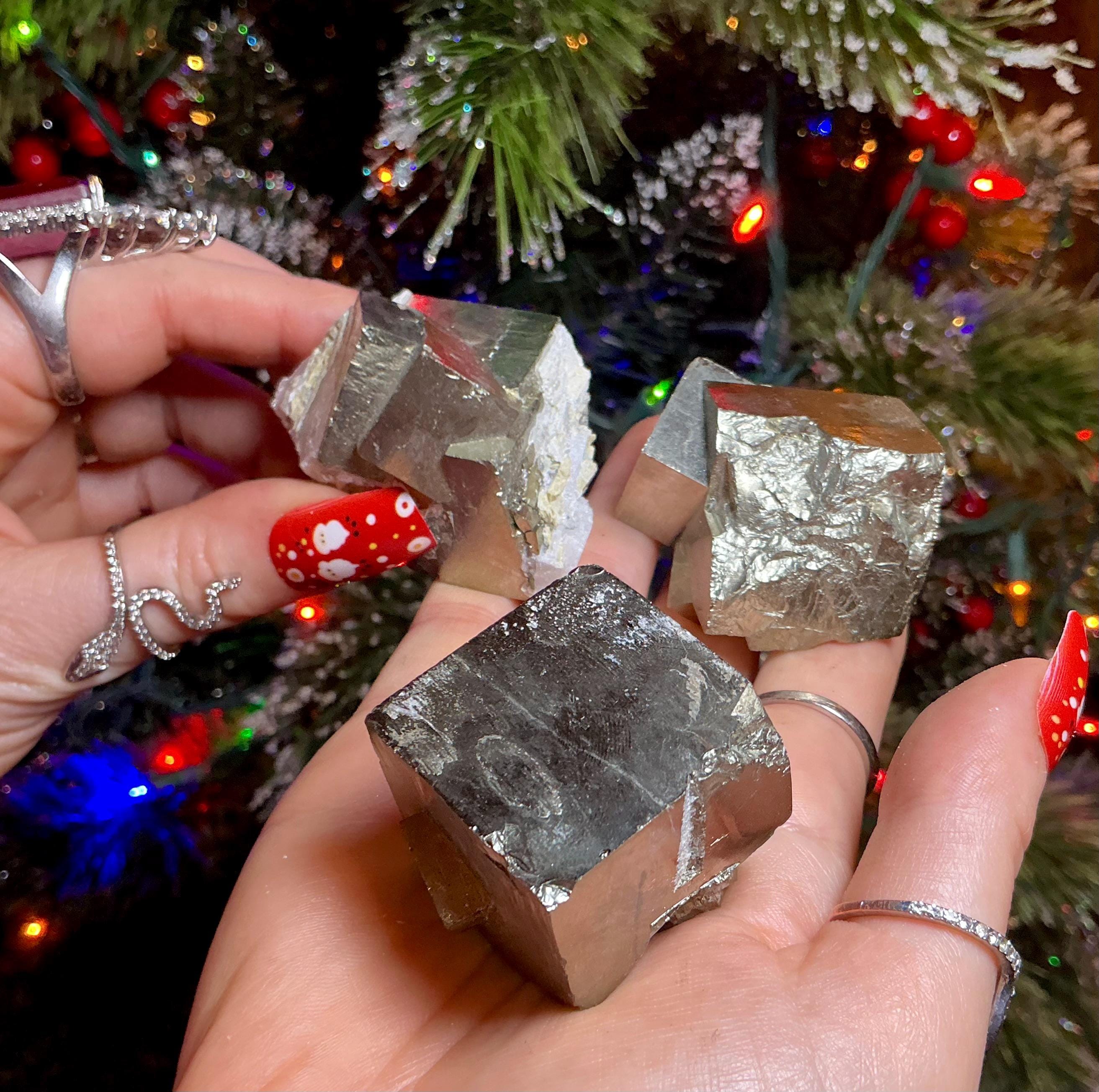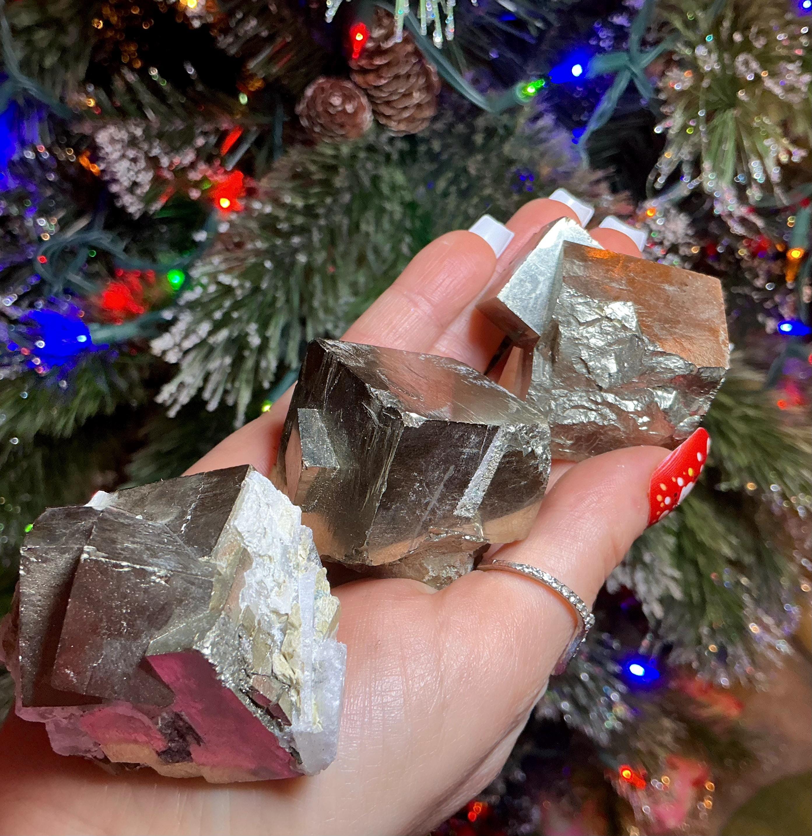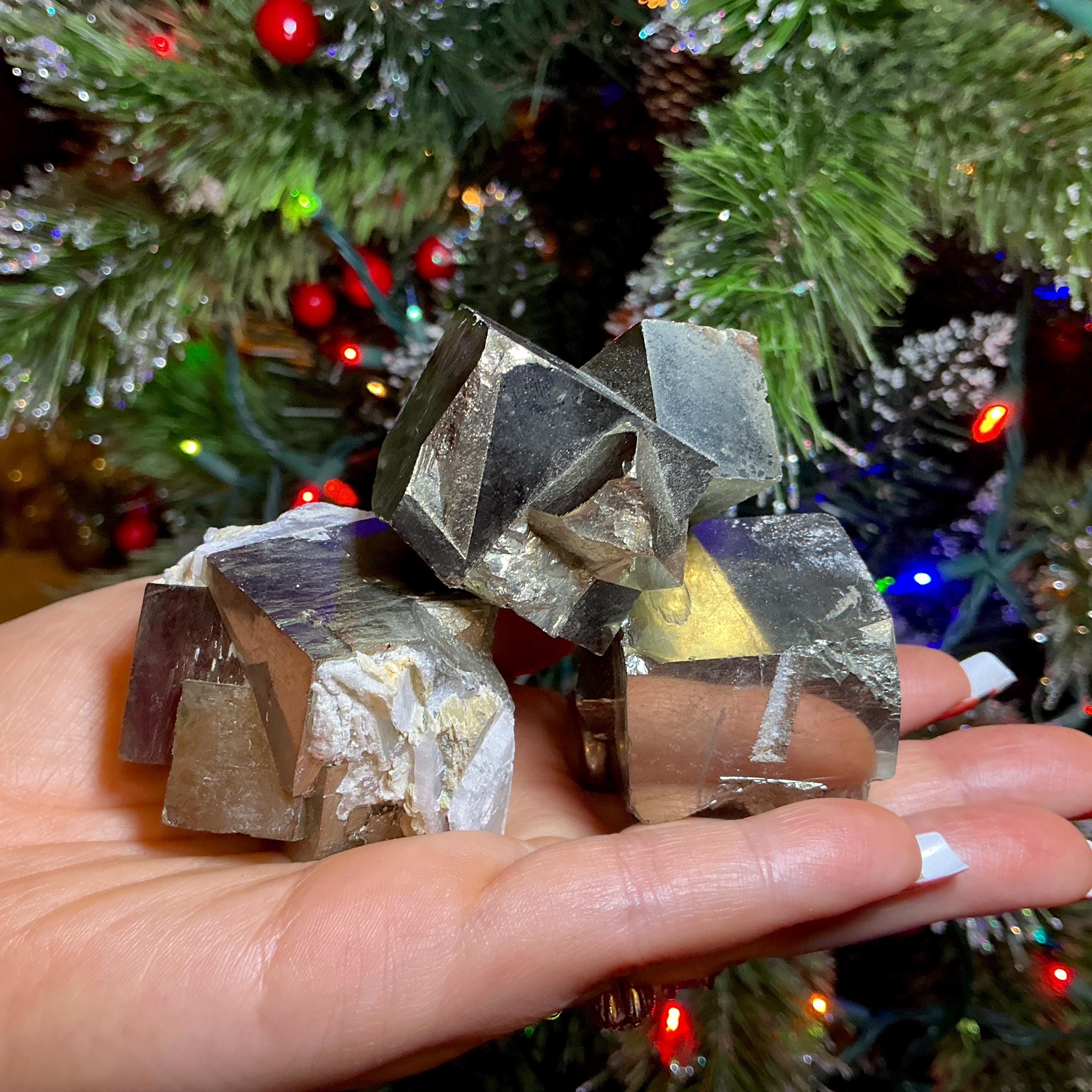 Pyrite Cubic Crystal 3 Piece Set ~ 15 oz. Total Weight ~ 1 1/2" Square ~ Naturally Sparkly Gold Mineral ~ Meditation Stone, Zen Room, Yoga Studio, Altar Display, Feng Shui Decor