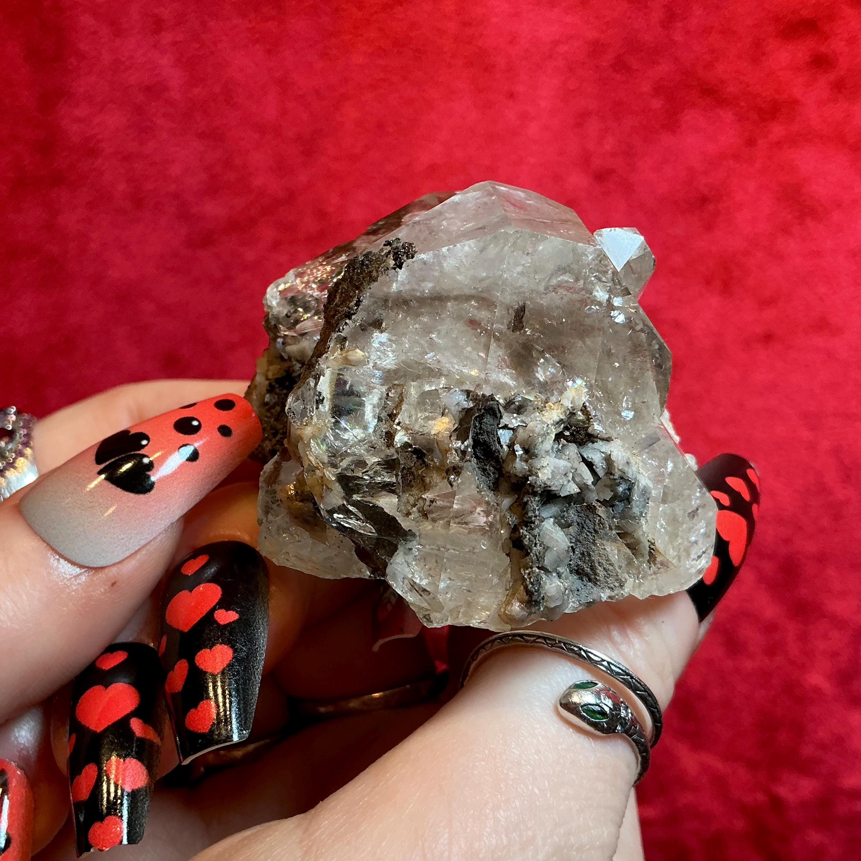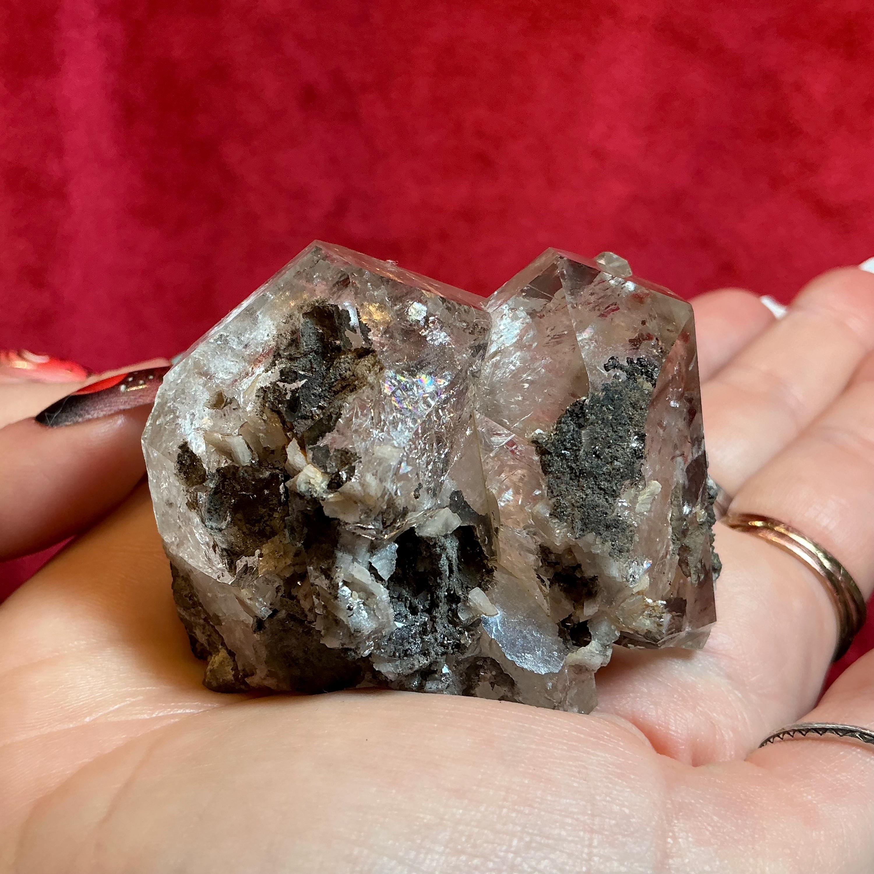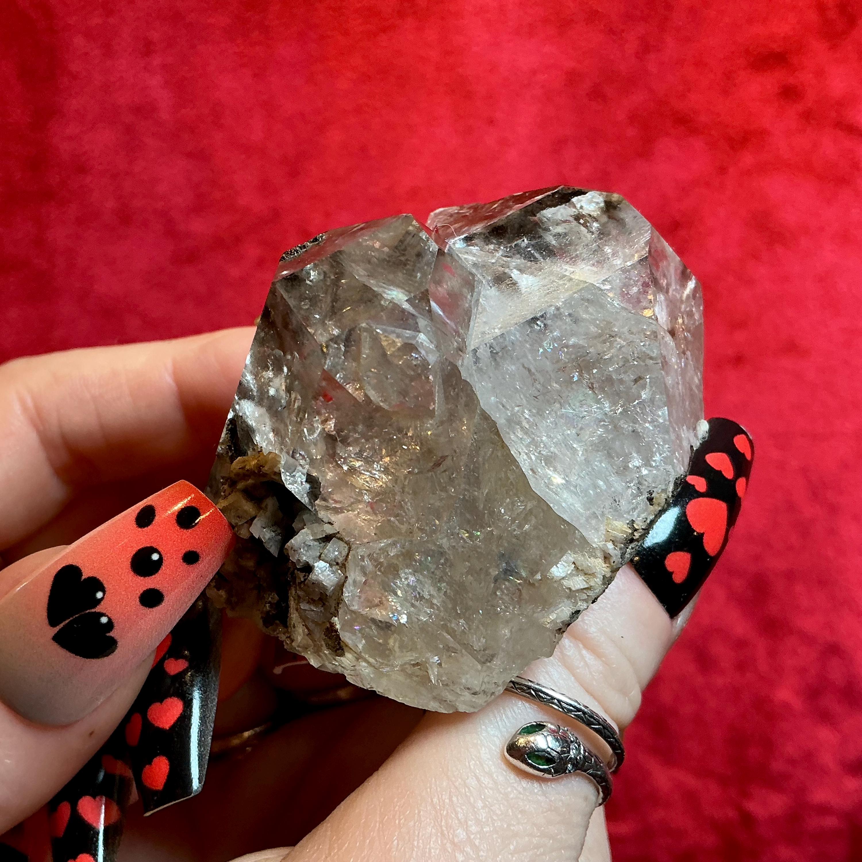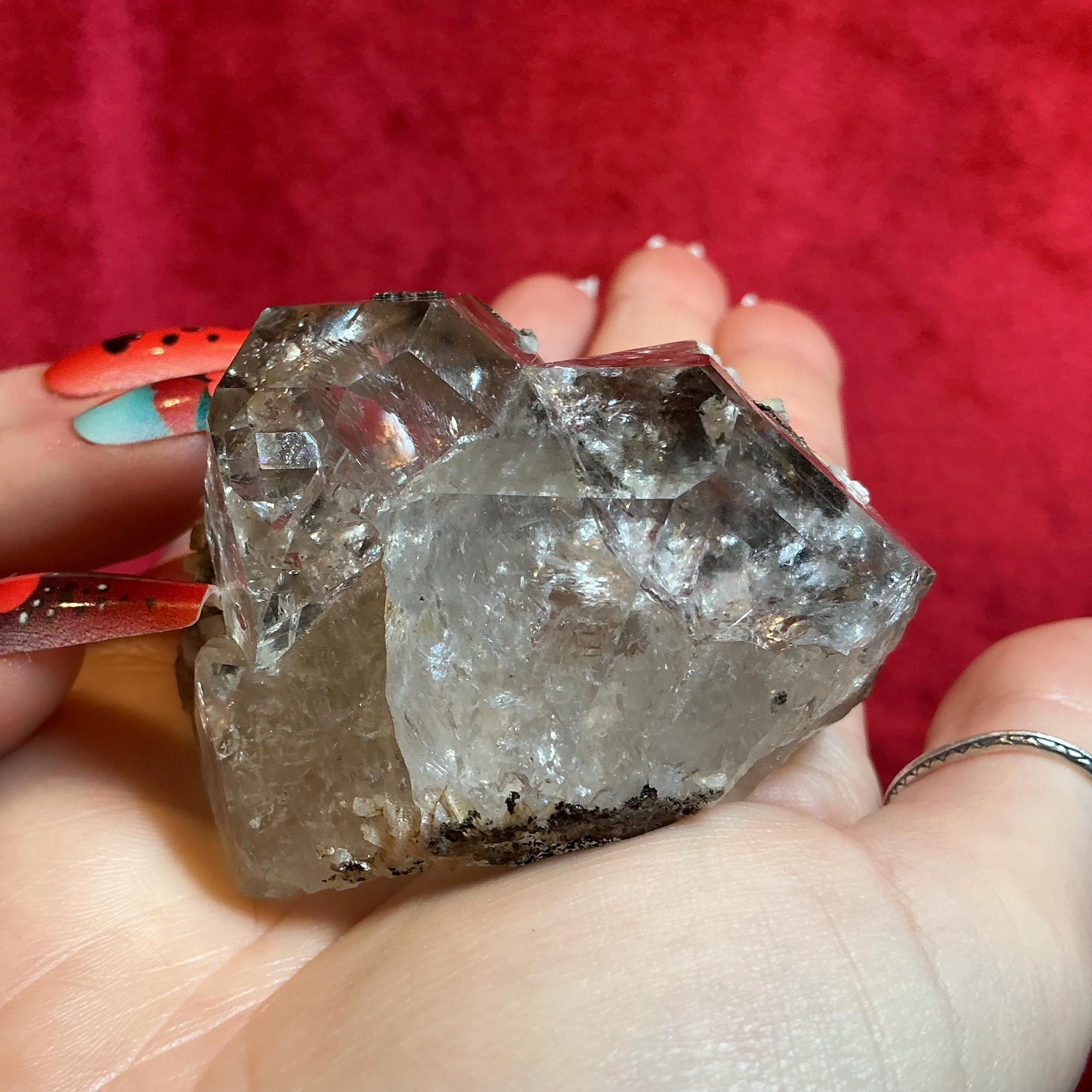 Large Stunning 4 oz. ~ Natural, Raw, Herkimer Diamond Crystal ~ 2 1/2" Long ~ Sparkling Rainbow Inclusions ~Silver Flashes ~ Large, Handheld Size