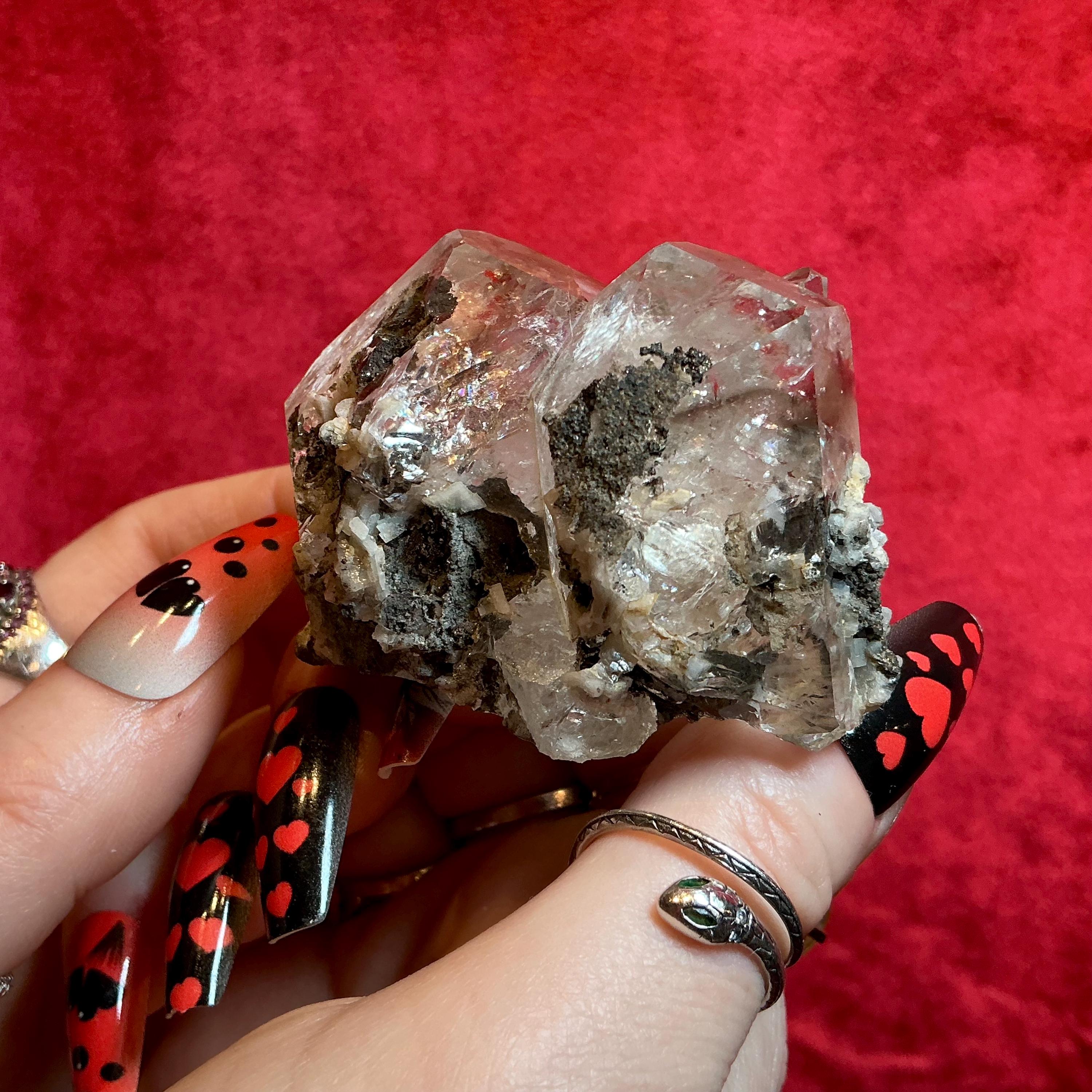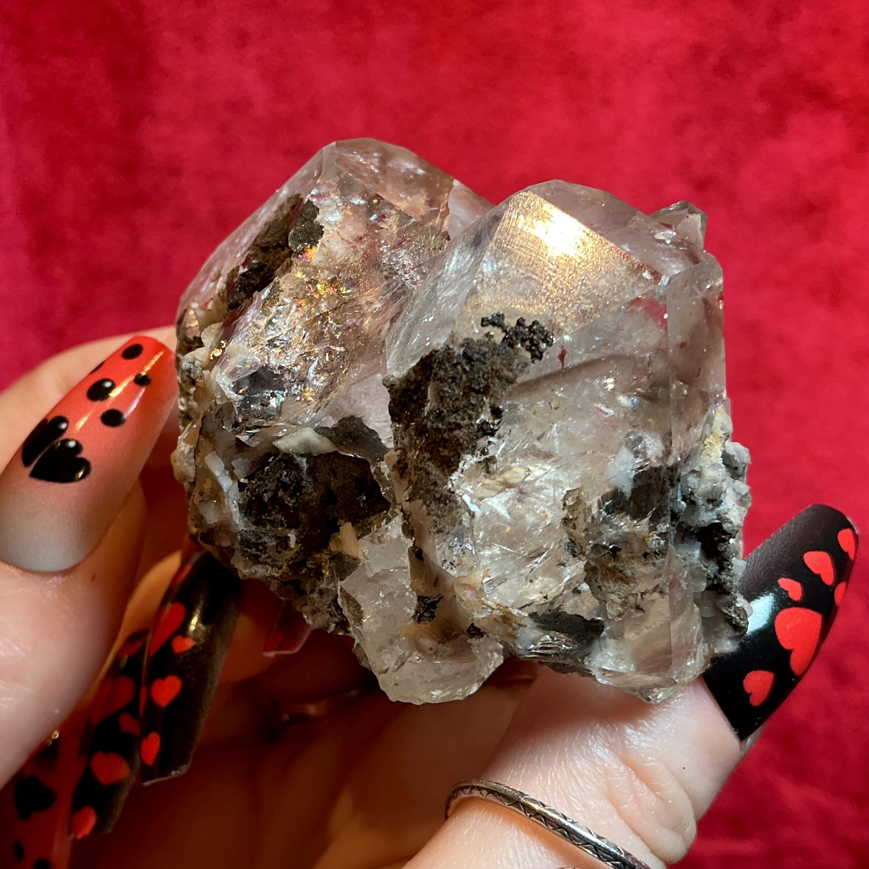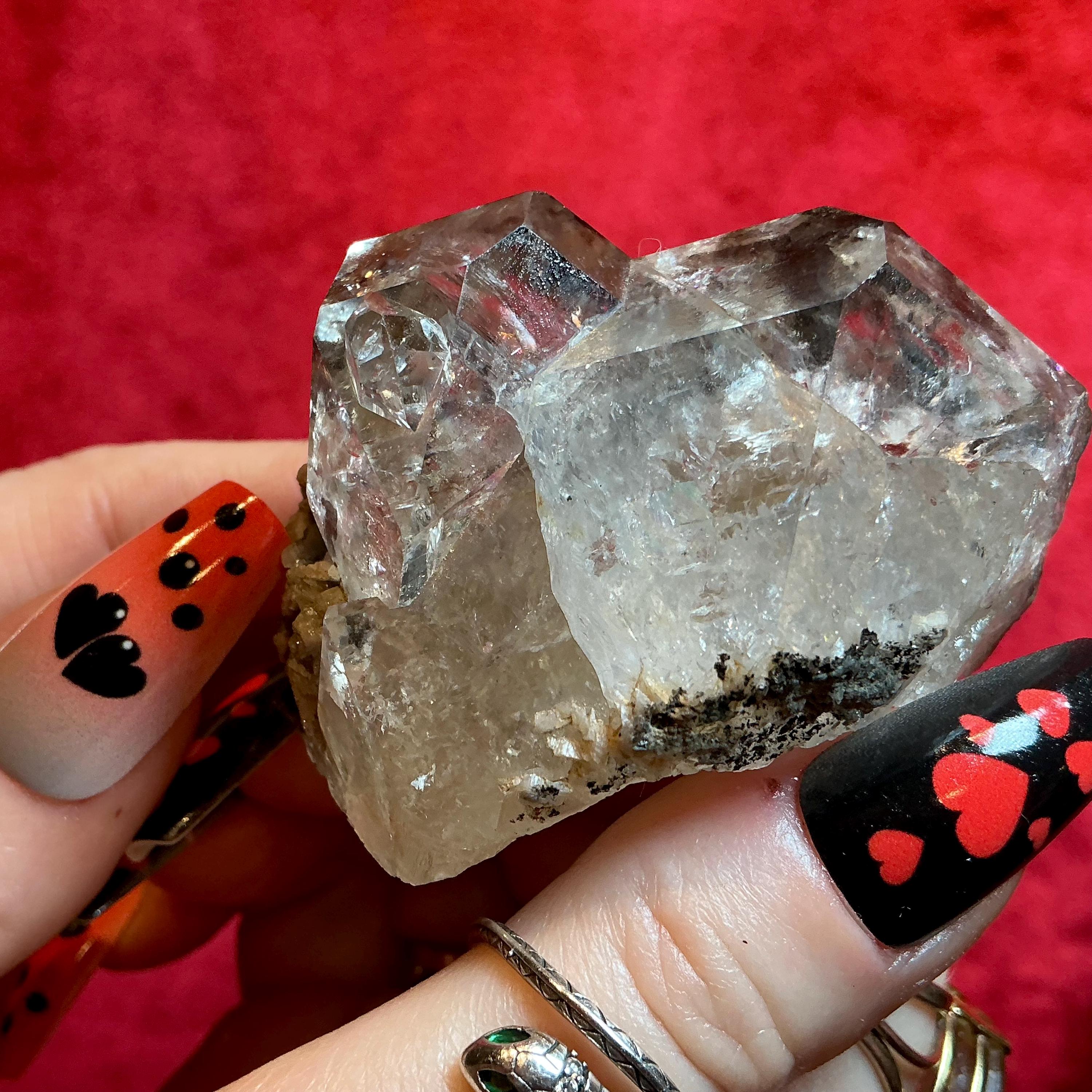 Herkimer Diamonds are blissful stones; this skeletal Herkimer diamond is a rare treasure, and what makes this a one of a kind is that there is a perfect terminated crystals growing out of the side. As well as the skeletal formation, and the silver flashes.