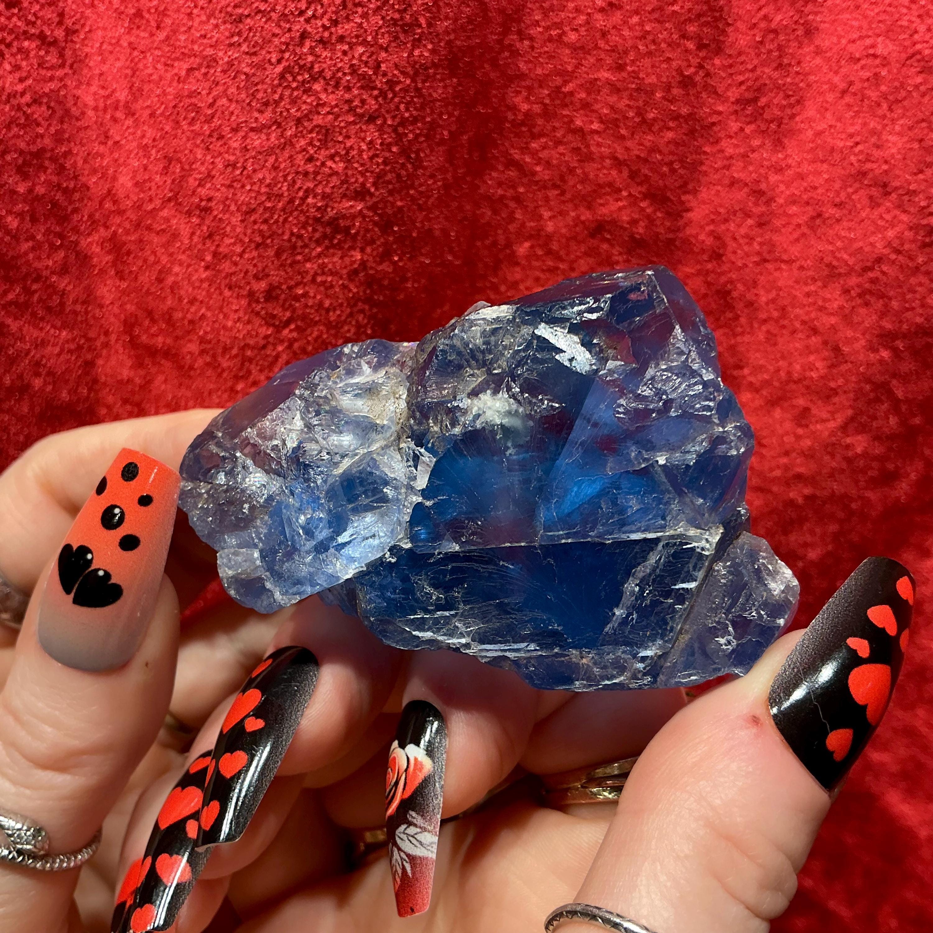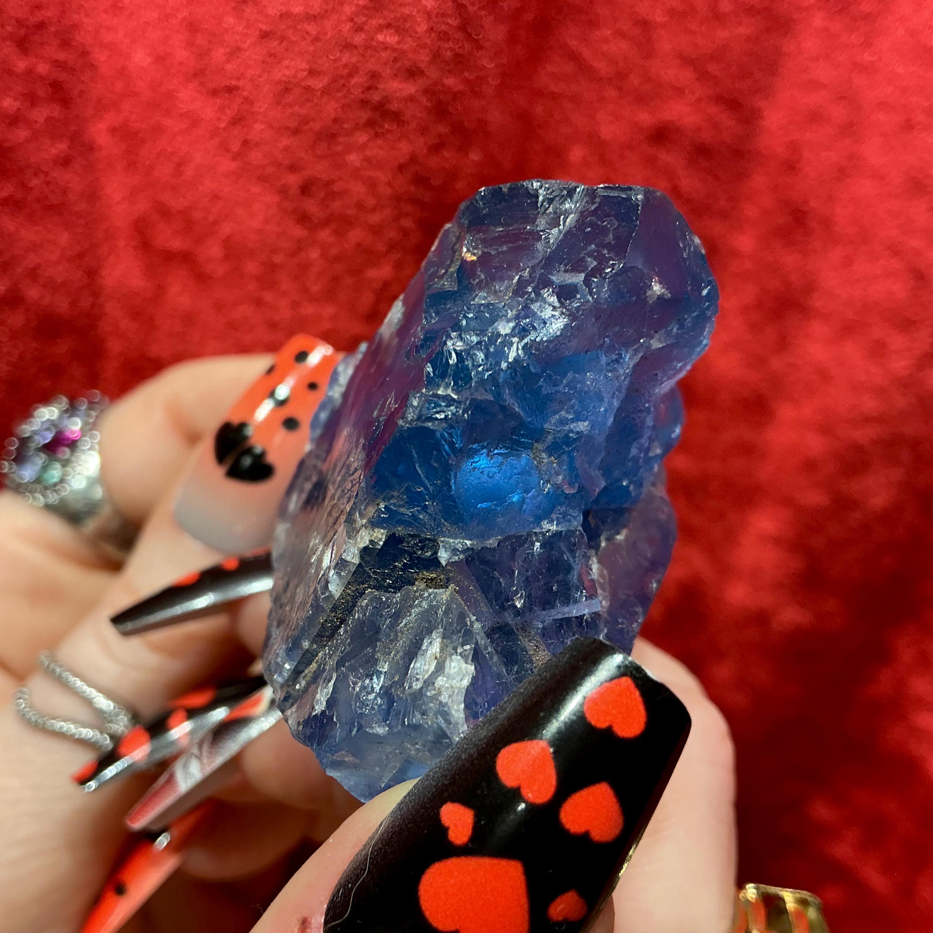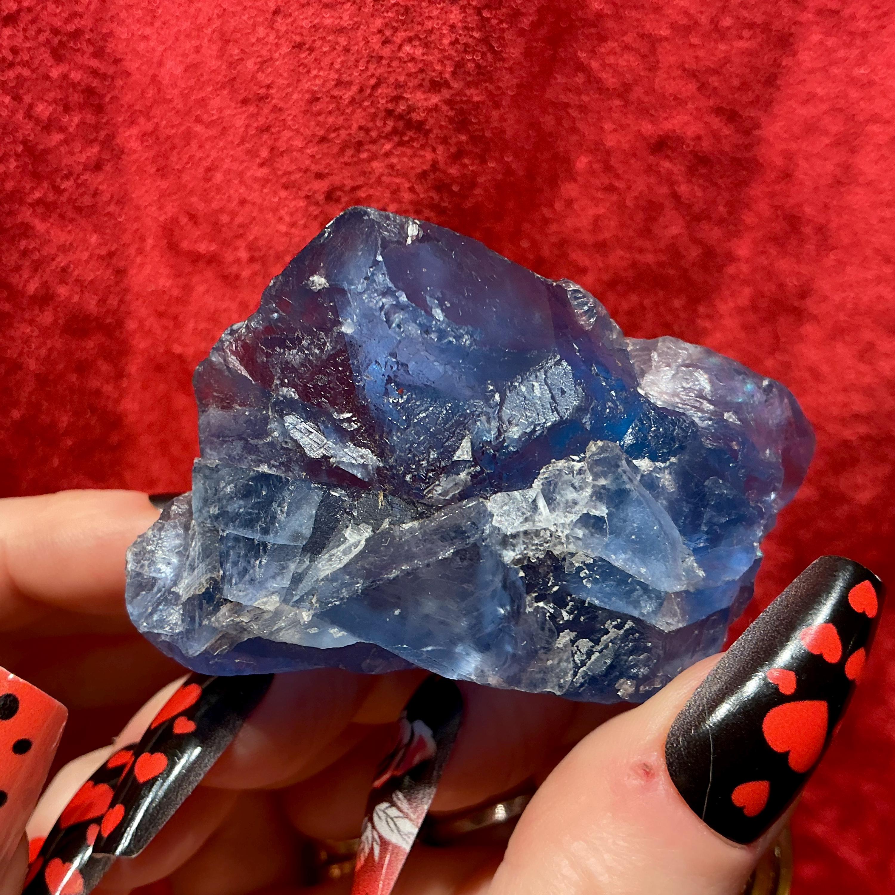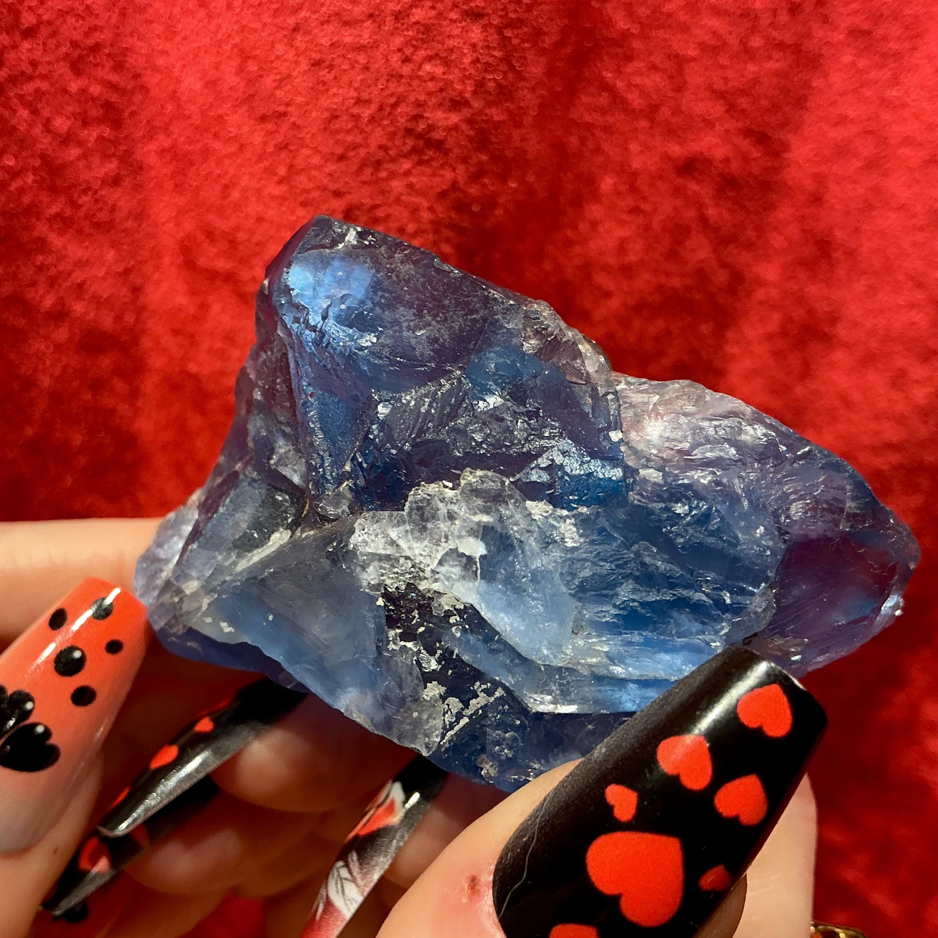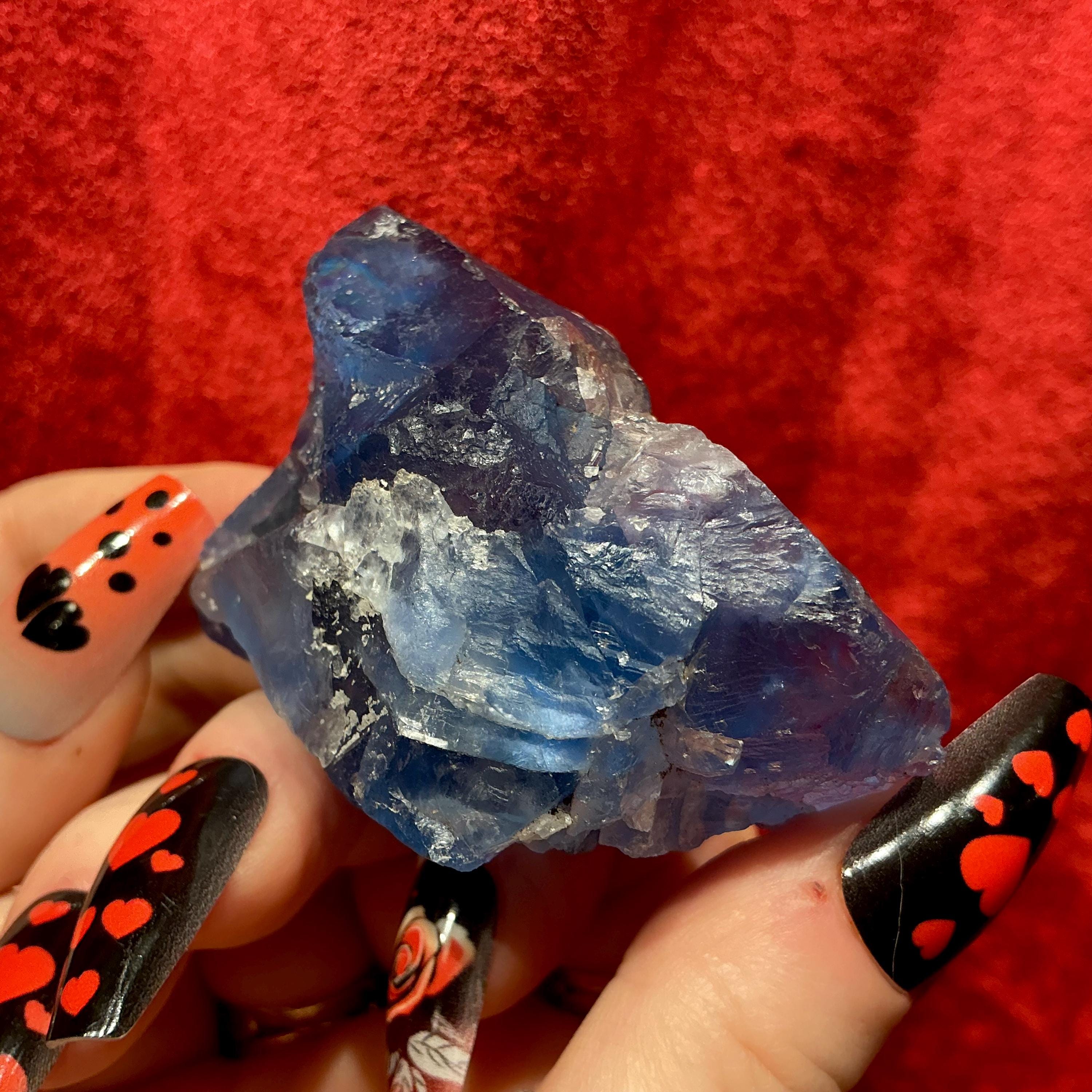 Blue Fluorite Crystal Cluster ~ 4.4 oz. ~ 3" Long ~ Rare Deep Ocean Blue Color