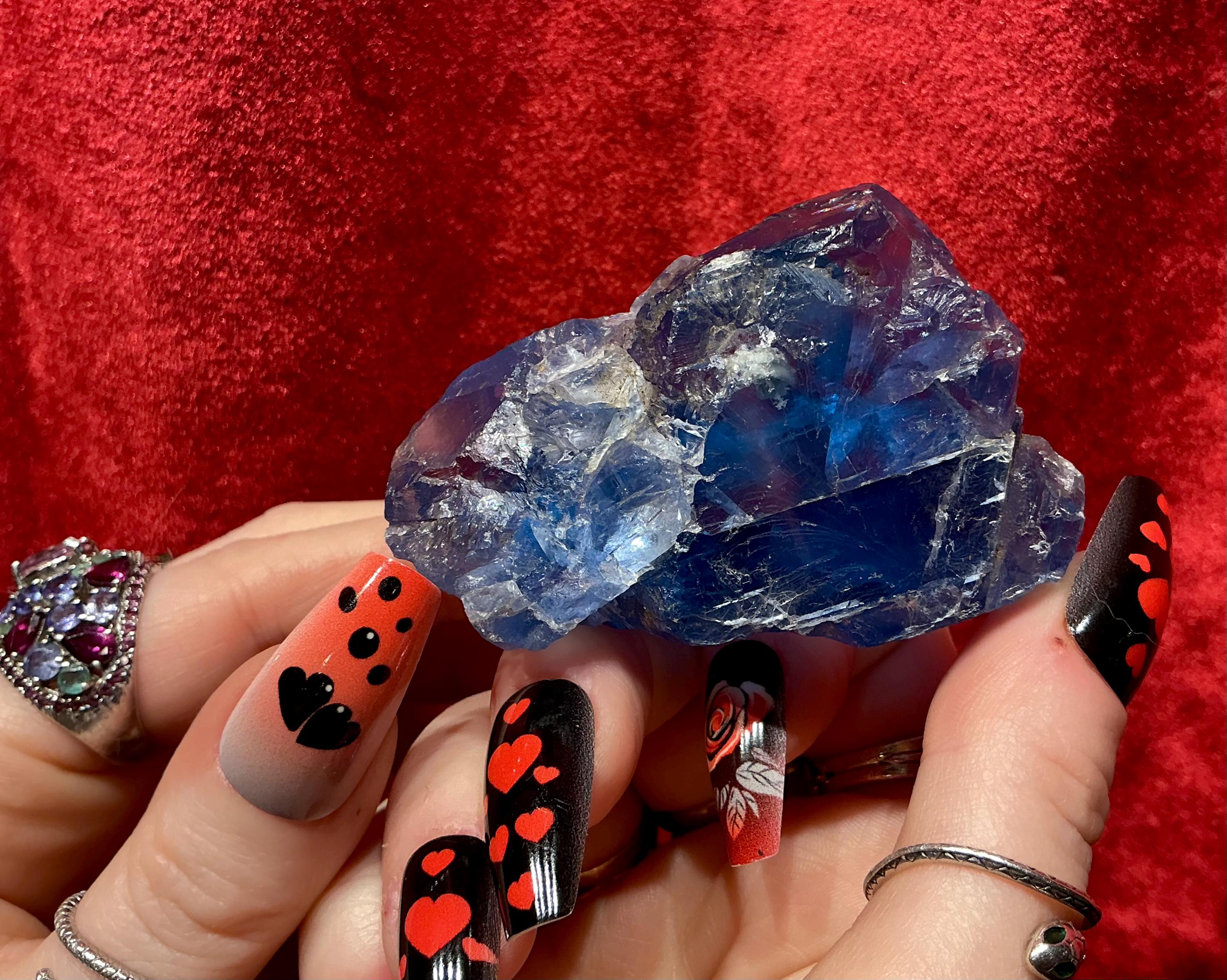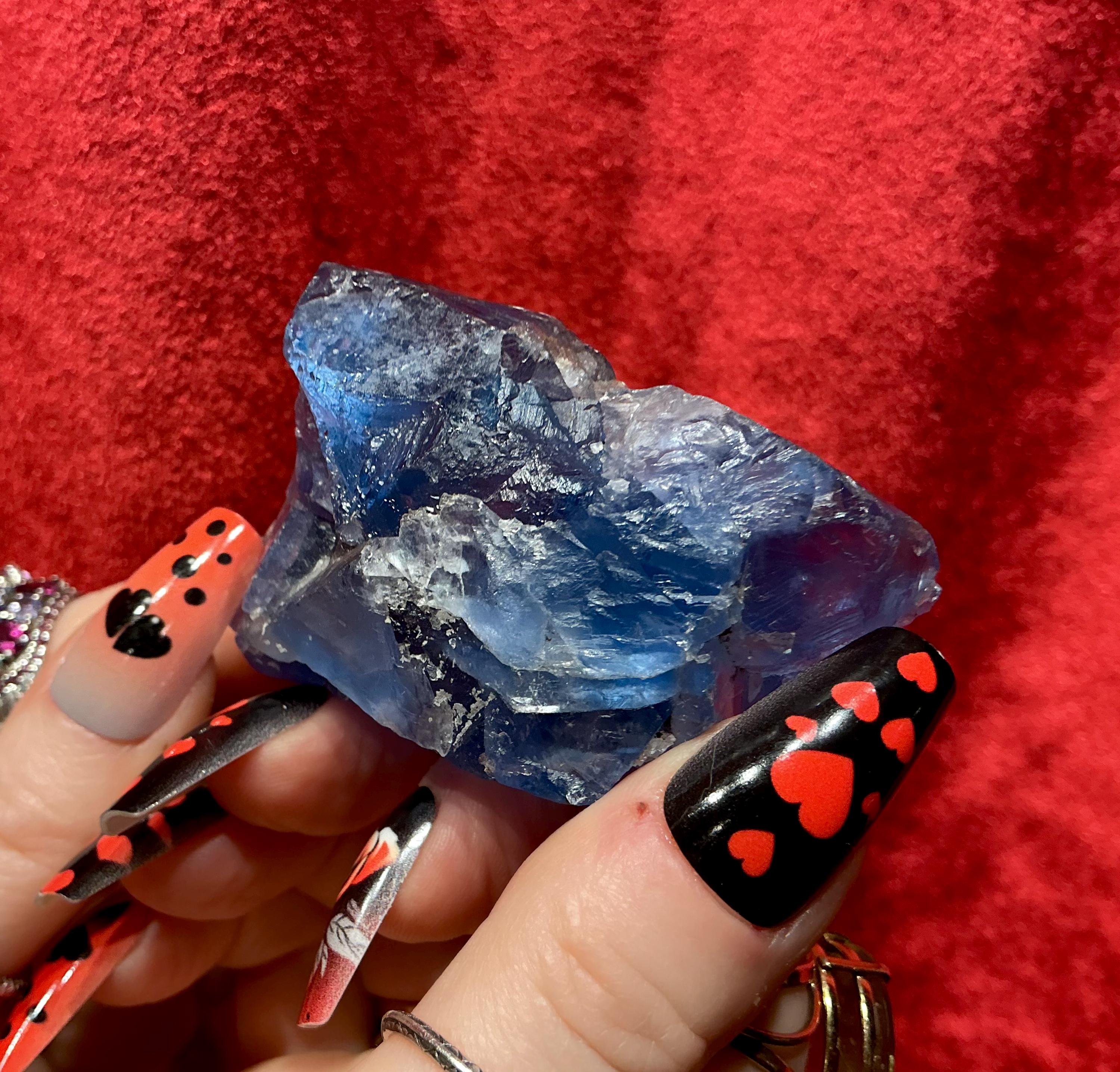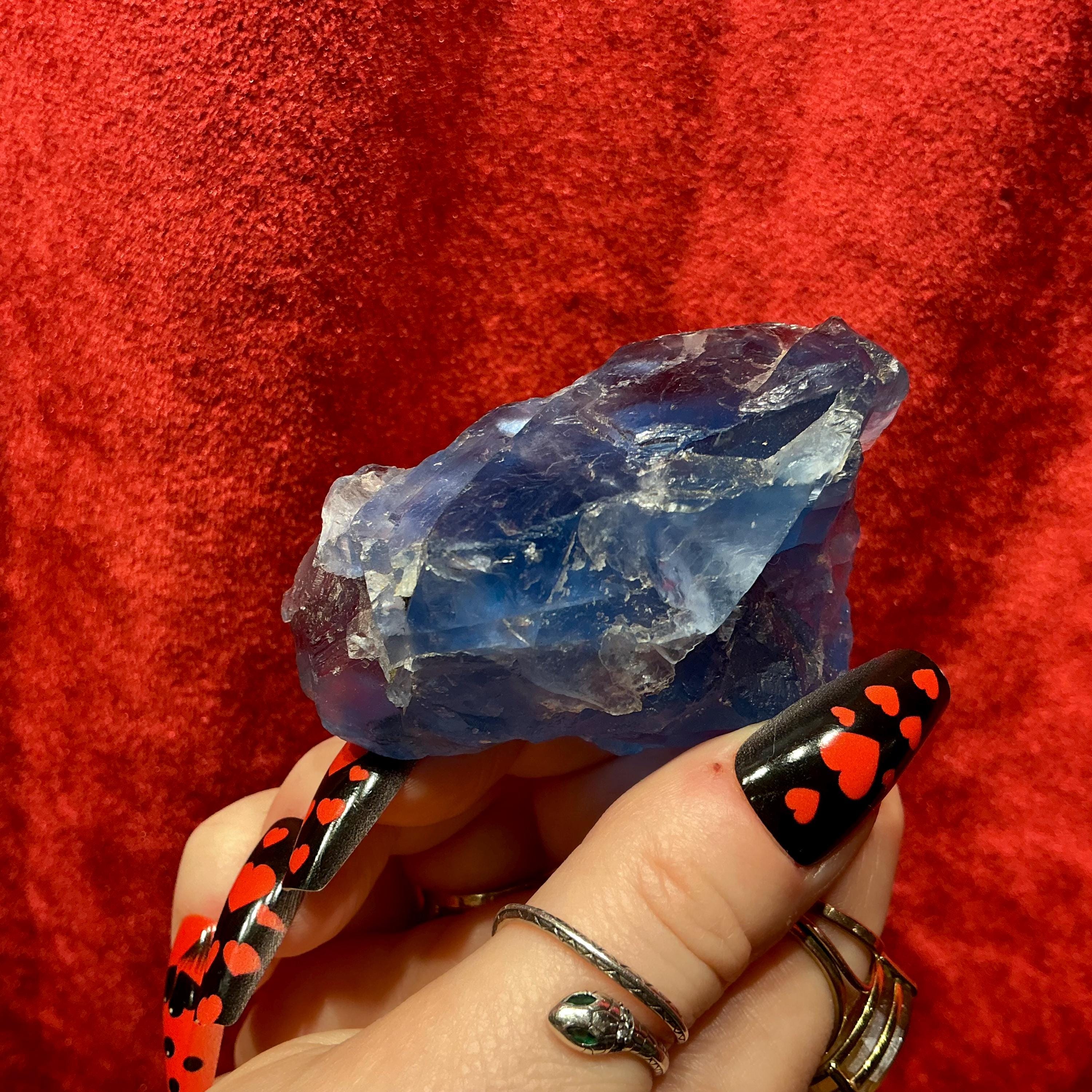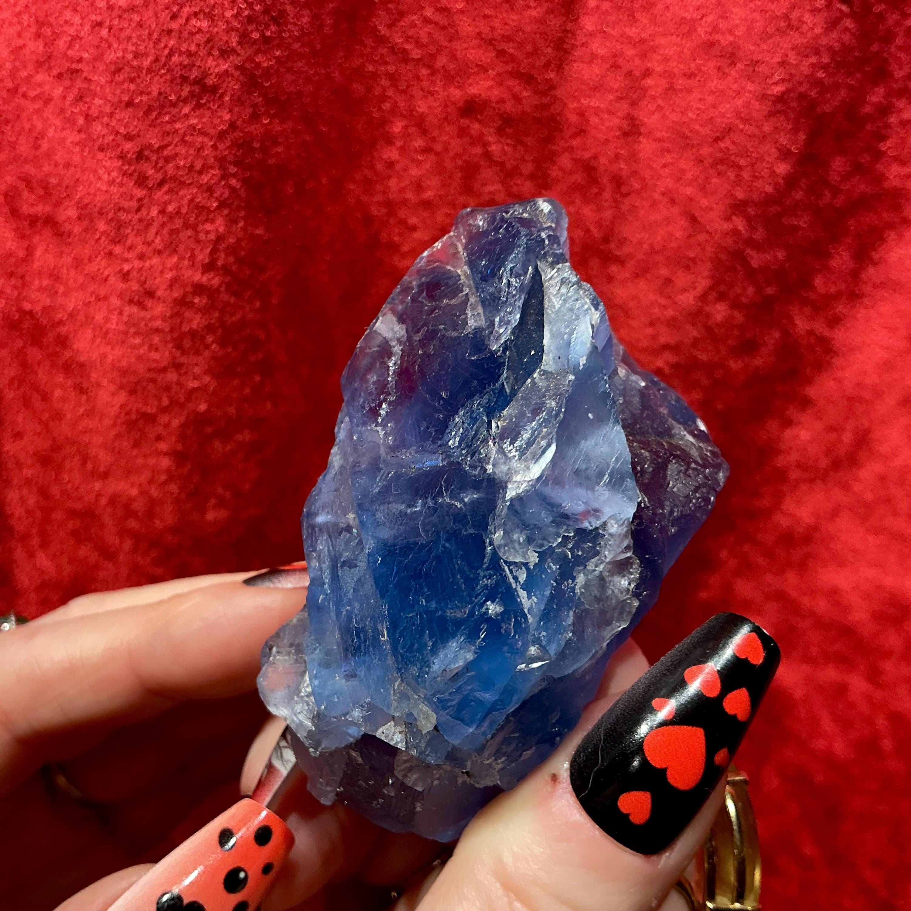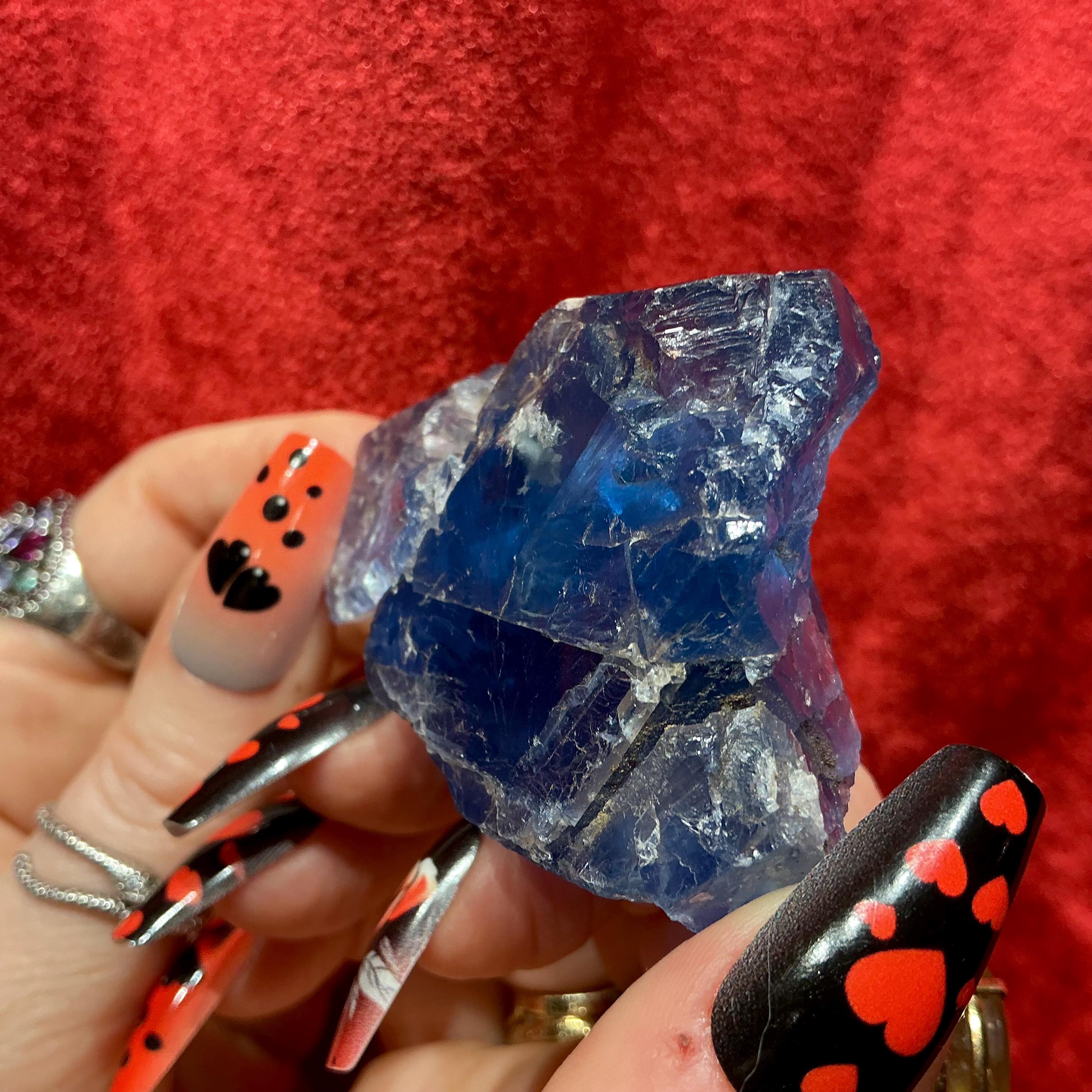 Blue Fluorite Crystal Cluster ~ 4.4 oz. ~ 3" Long ~ Rare Deep Ocean Blue Color