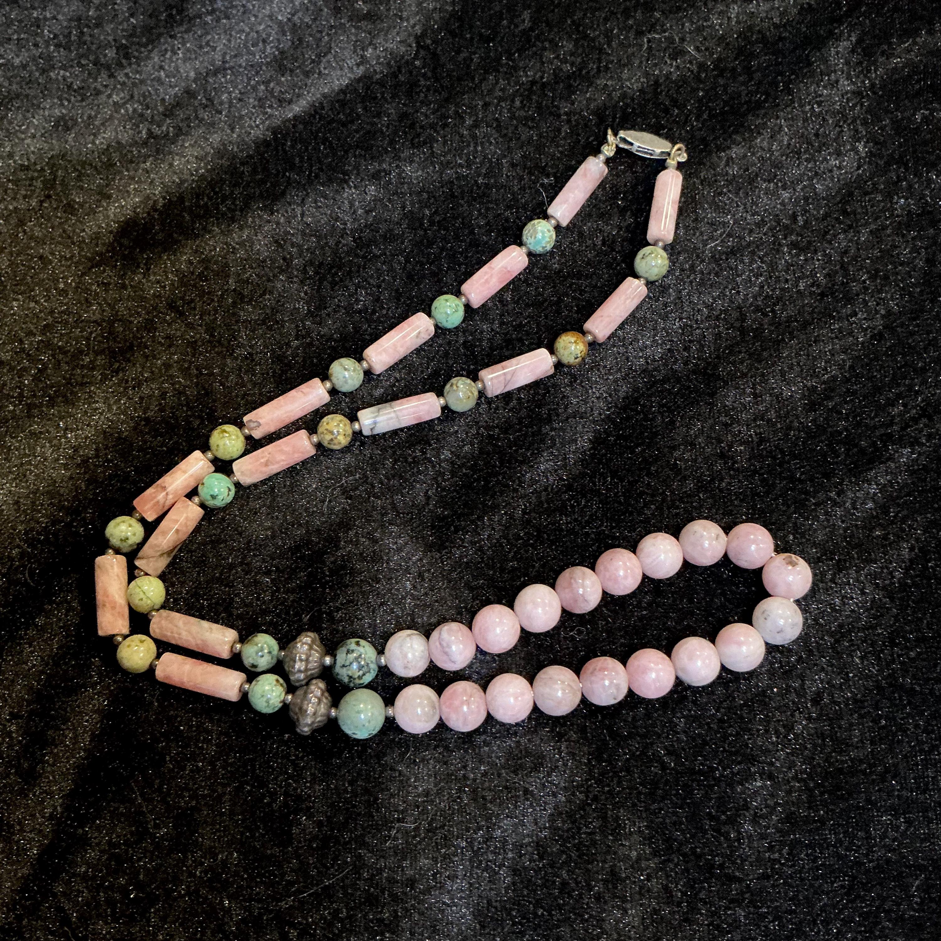 Rhodonite & Turquoise Vintage 26" Necklace ~ Genuine Beaded Gemstones ~ Sacred Adornment