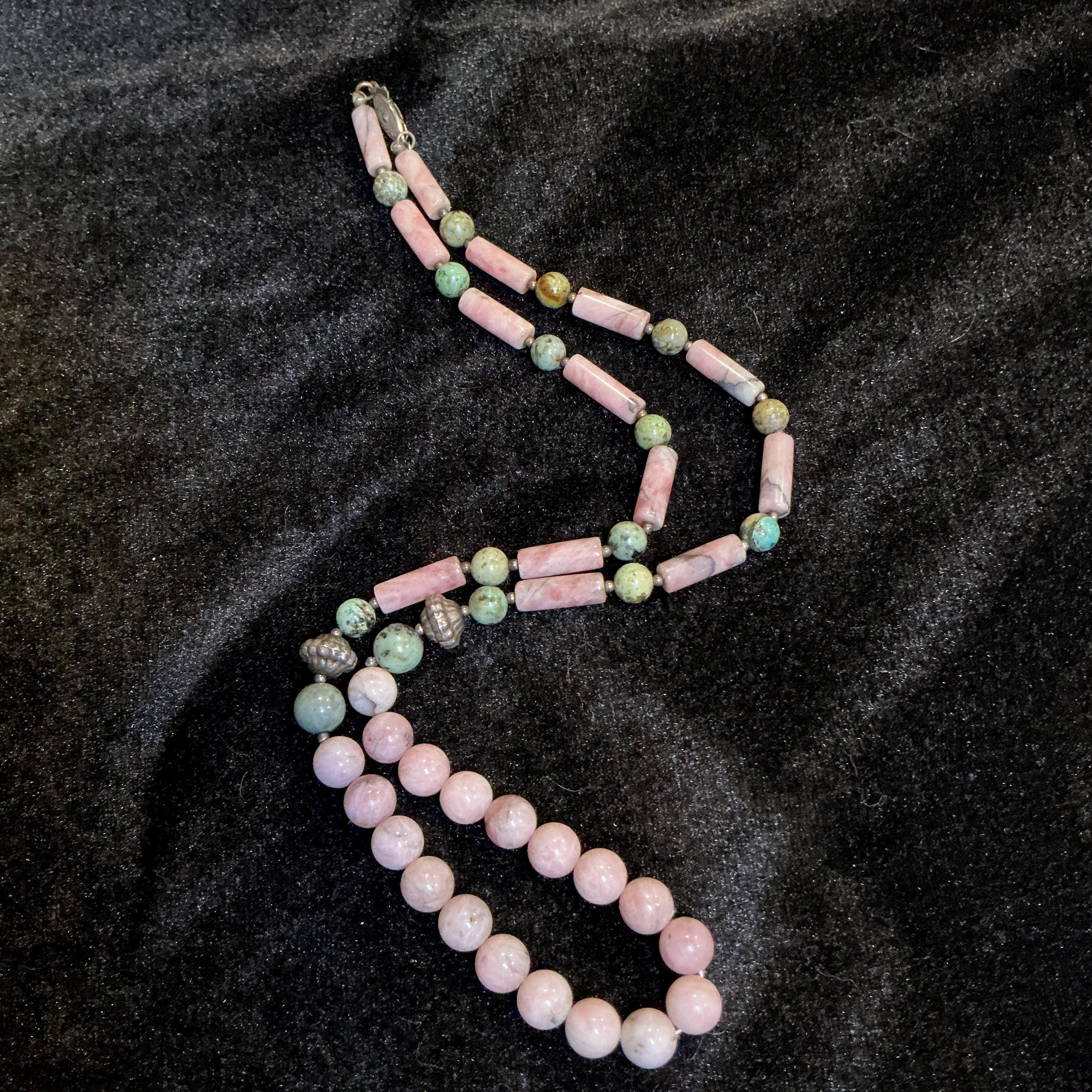 This is such a fun and radiant 26-inch Rhodonite & Turquoise necklace.