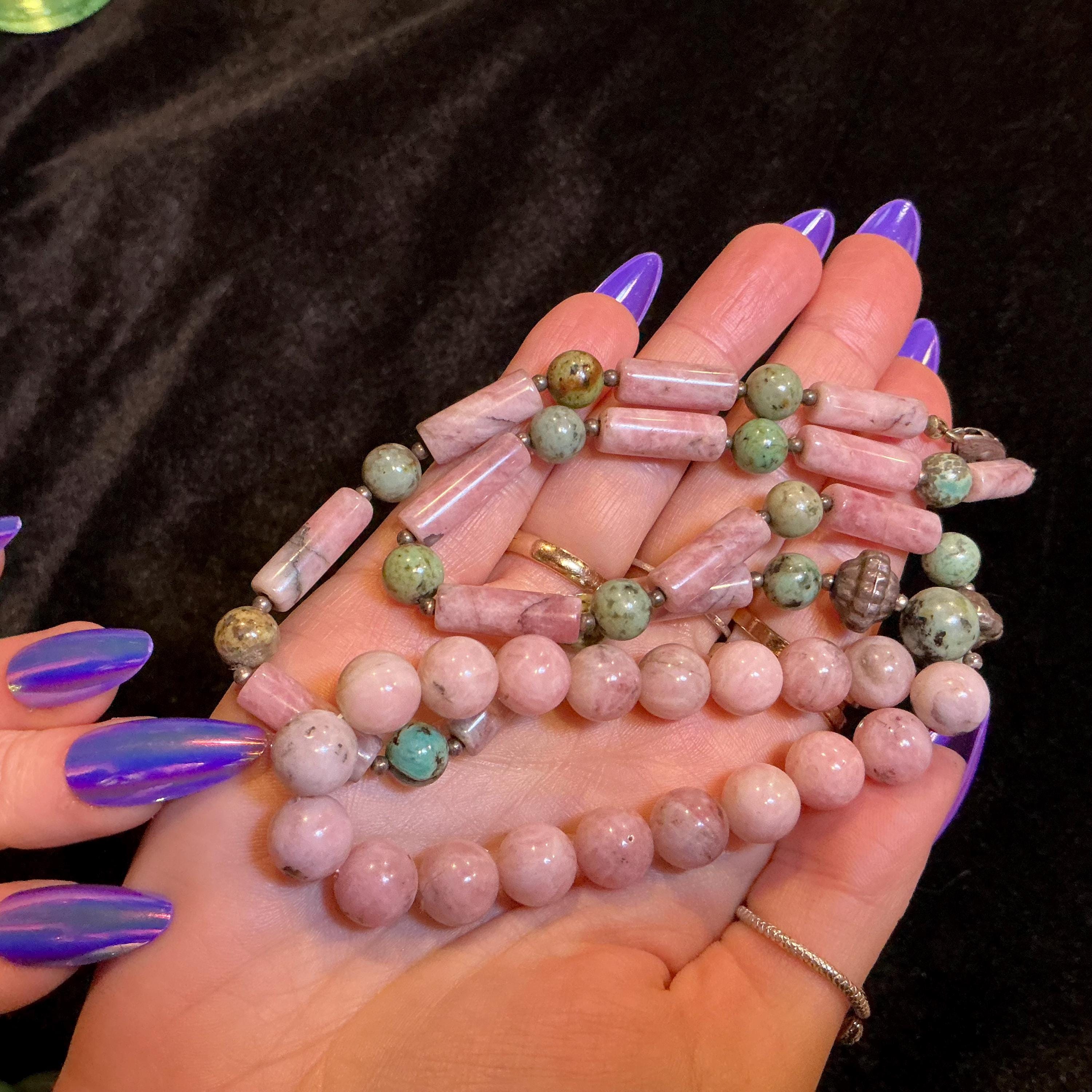 Rhodonite & Turquoise Vintage Multicolored 26" Necklace ~ Genuine Rhodonite & Turquoise Beaded Gemstones ~ Crystal Goddess Sacred Adornment