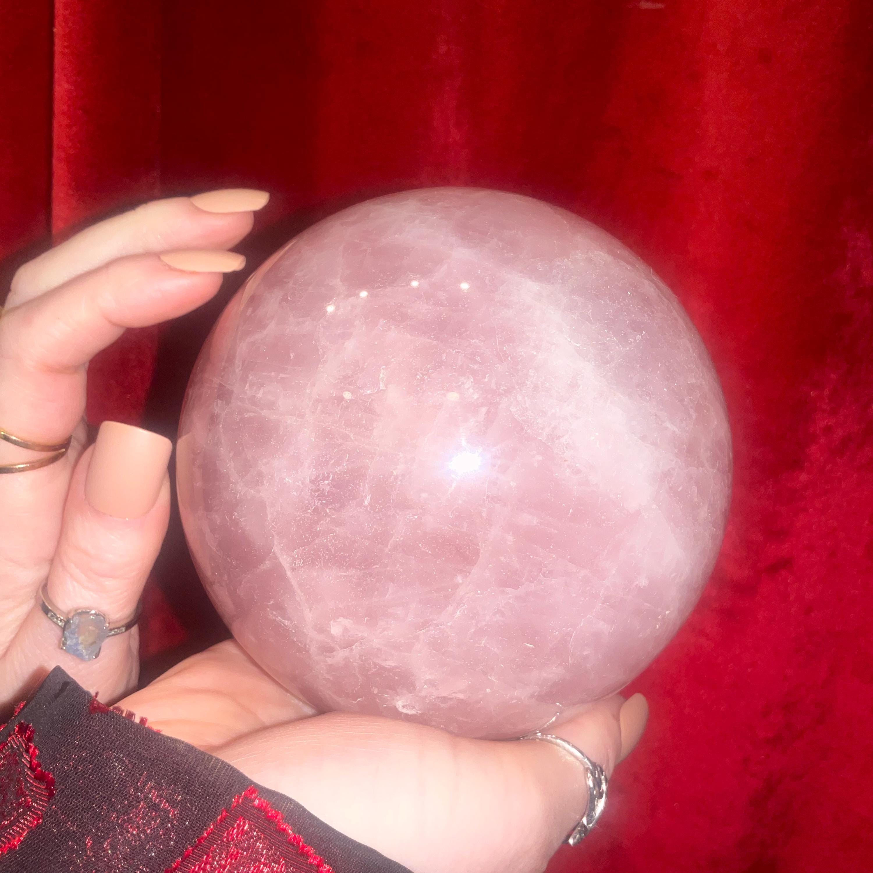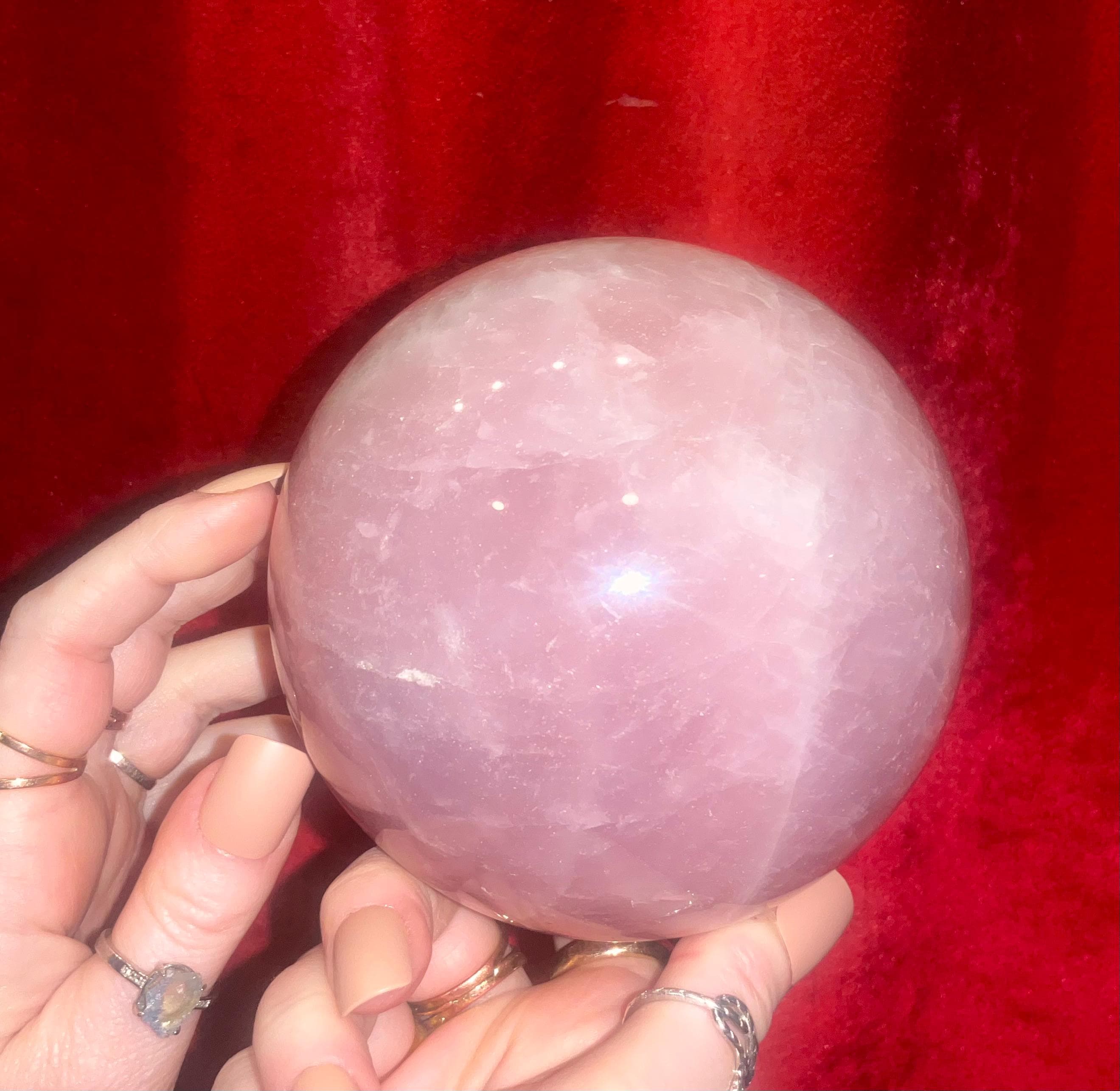 Rose Quartz Large 4 Lb. 4 oz. Crystal Ball: 4" Wide ~ Polished Pink Sphere, Reiki Altar Decor