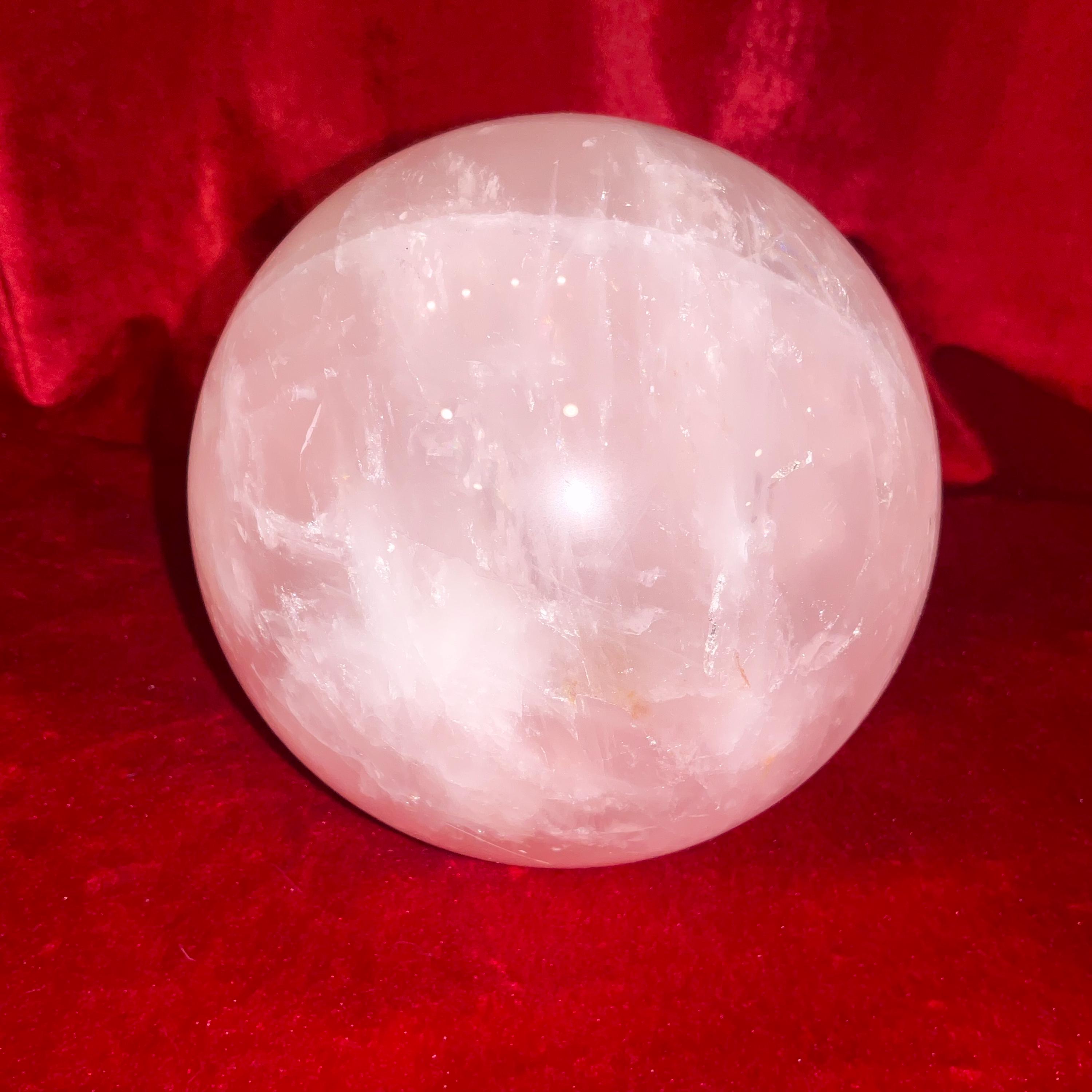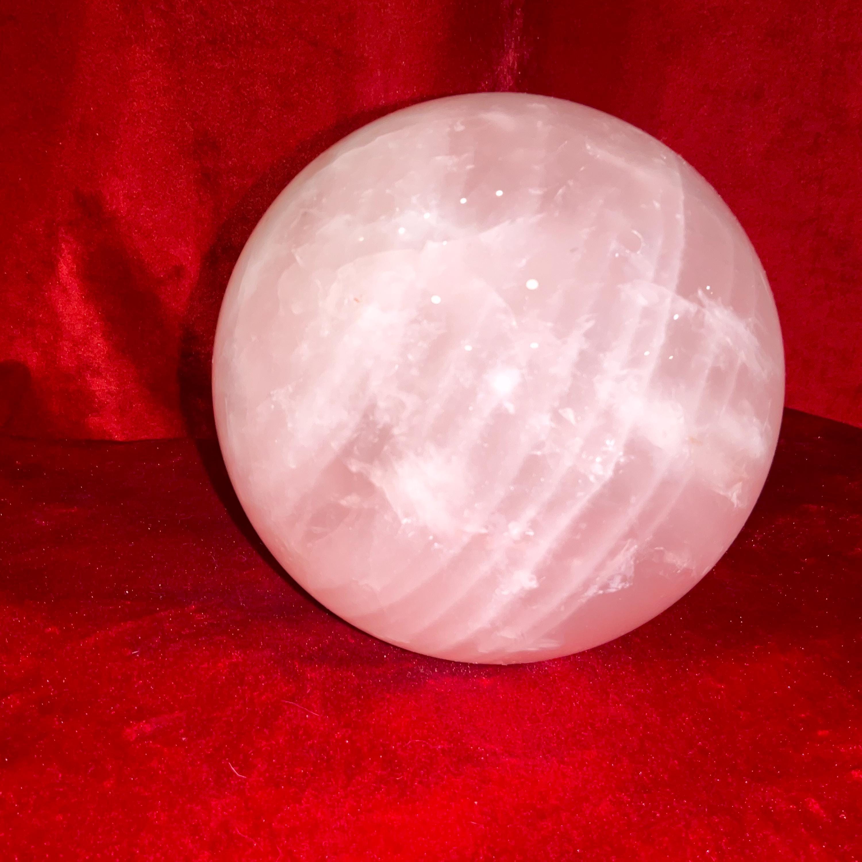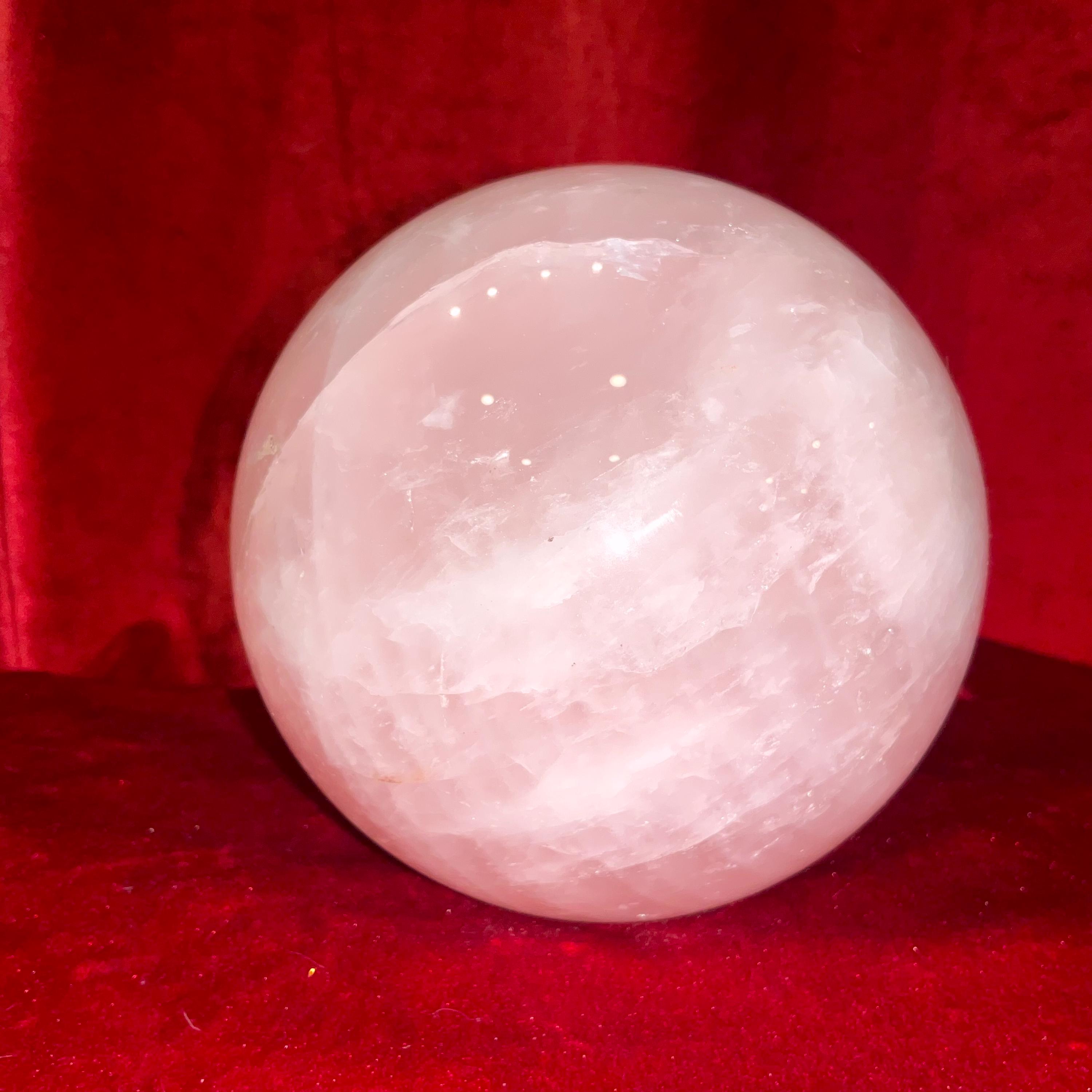 I am very happy to pass along this MIGHTY 6-pound 15-ounce pink rose quartz sphere which has been privately owned by my husband and me for the last 5 years.