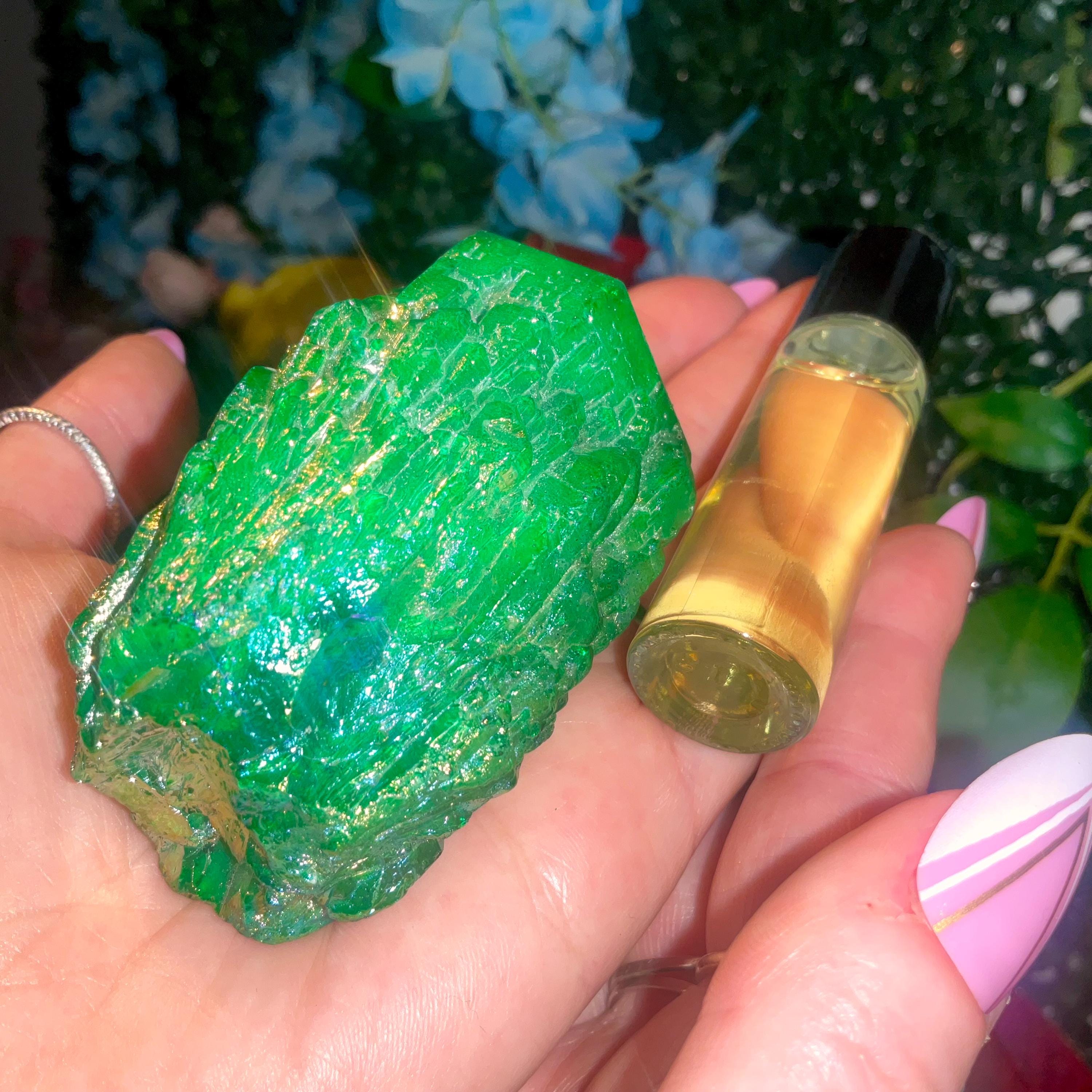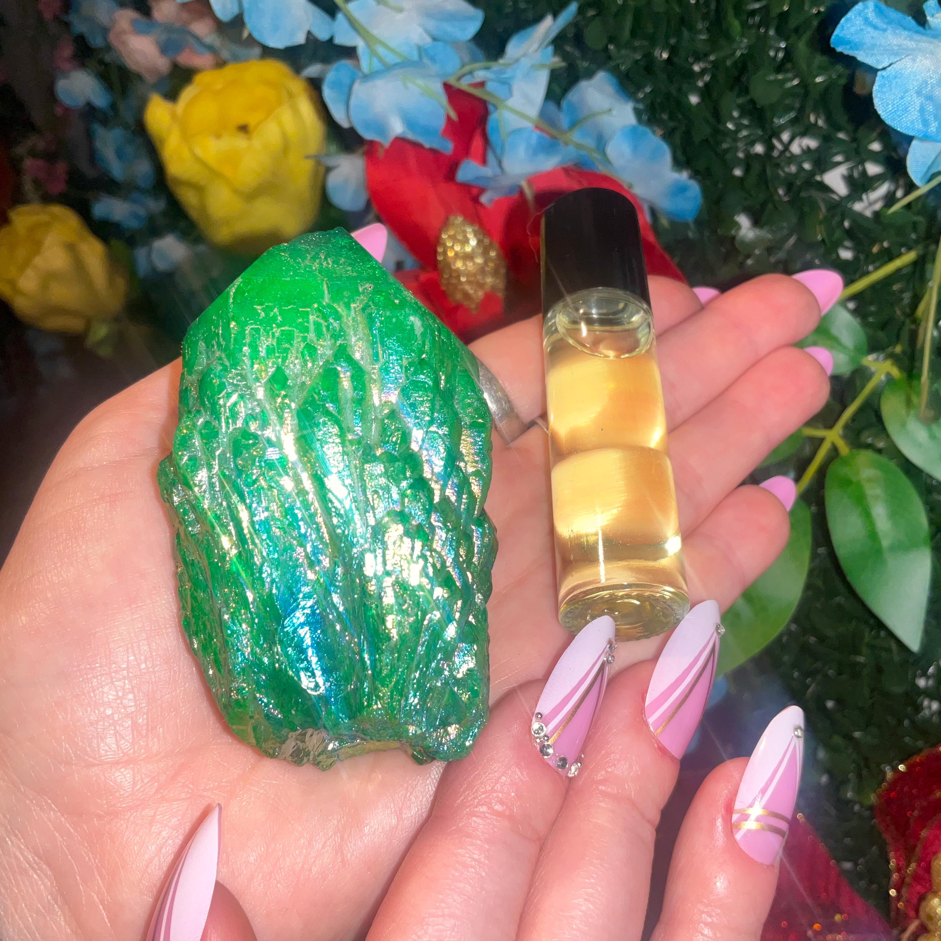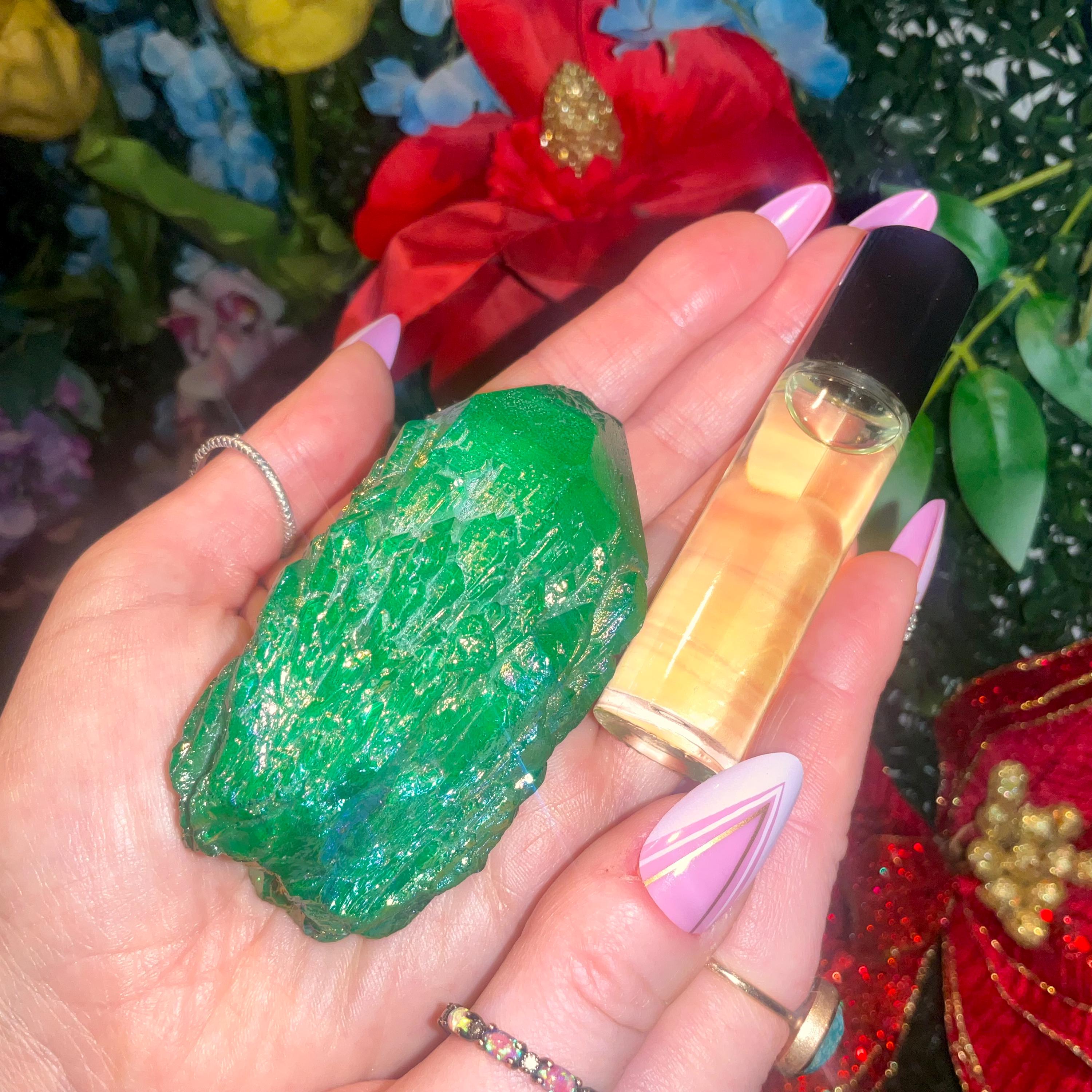Green Aura Mischief ~ Crystal Goddess 888 Exclusive Set ~ Combining Poetry, Scent and Crystals for a Multi-Sensory Experience ~