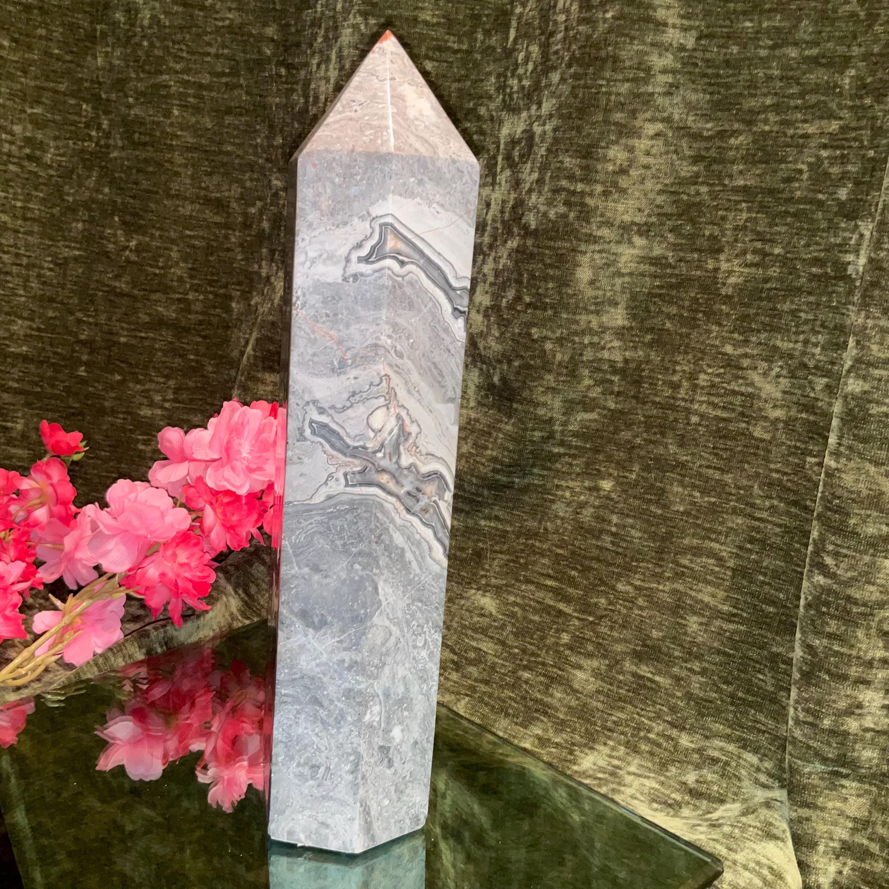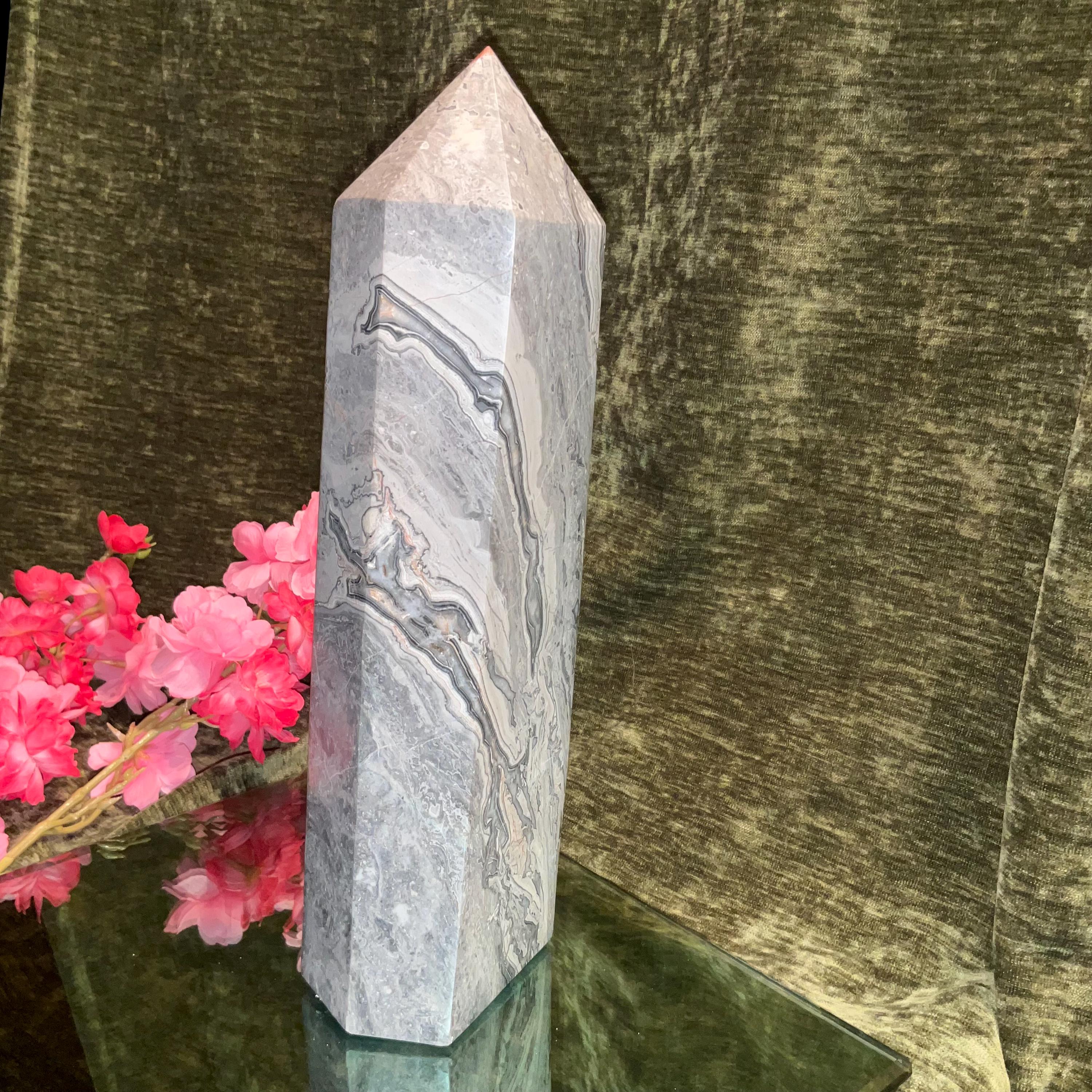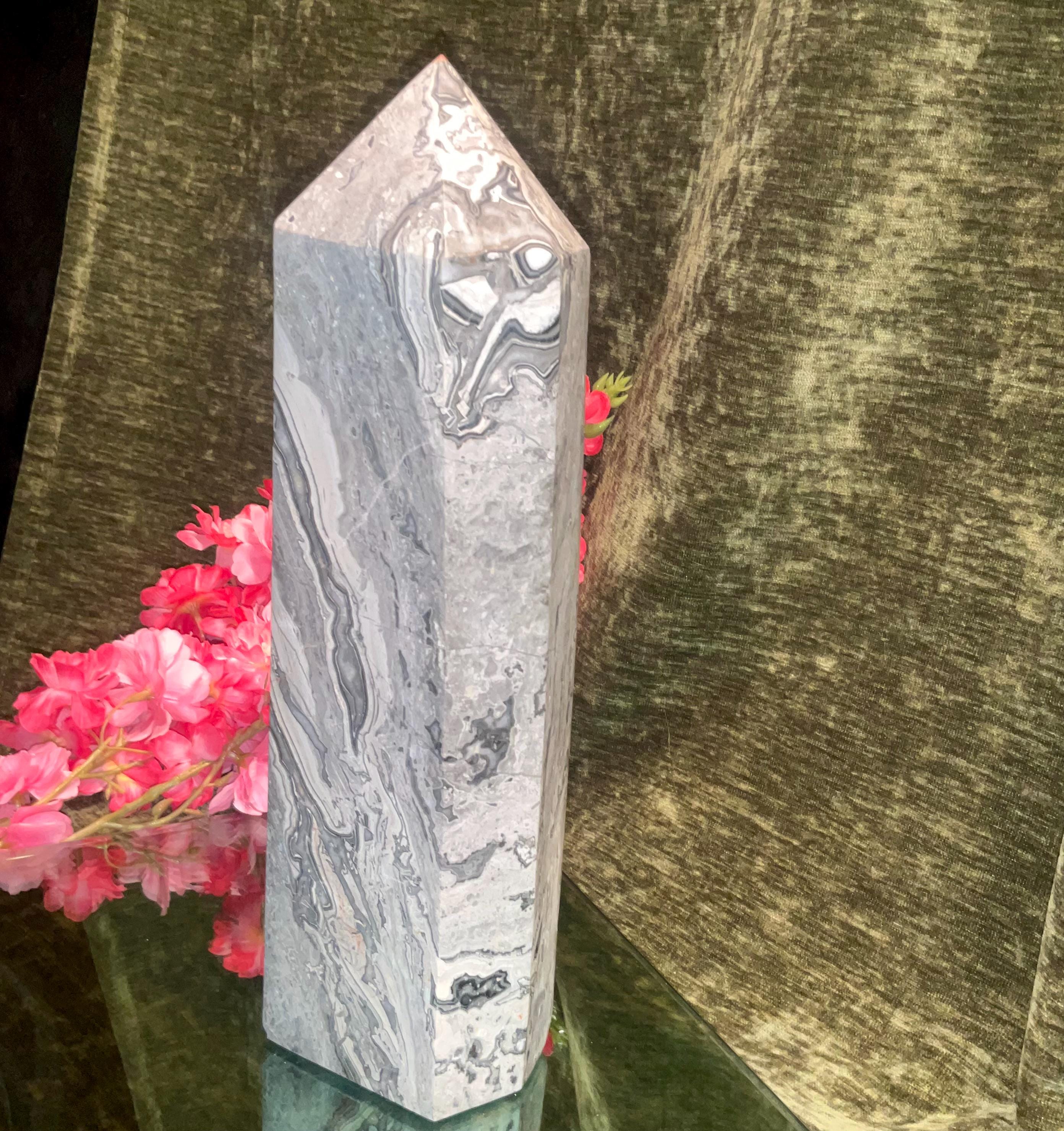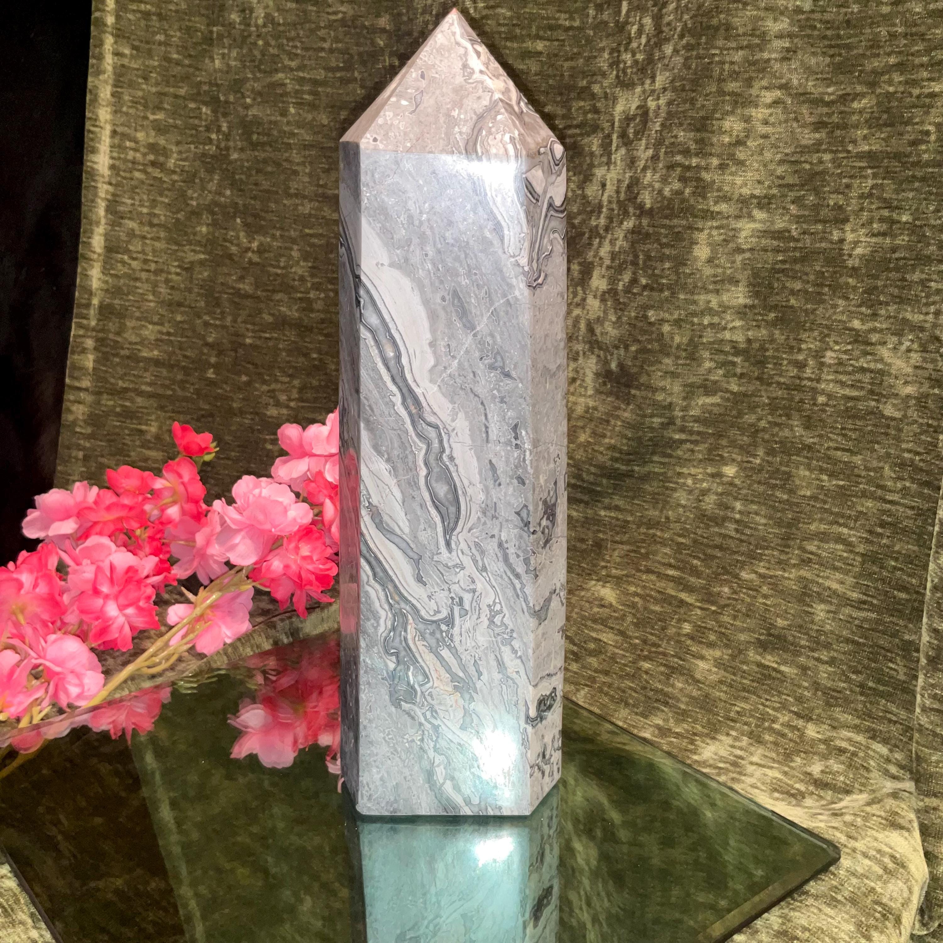 Emperor Gray Jasper Crystal Generator ~ 9 Lb. 14. oz ~ 12" Tall ~ Silver Black White Inclusions