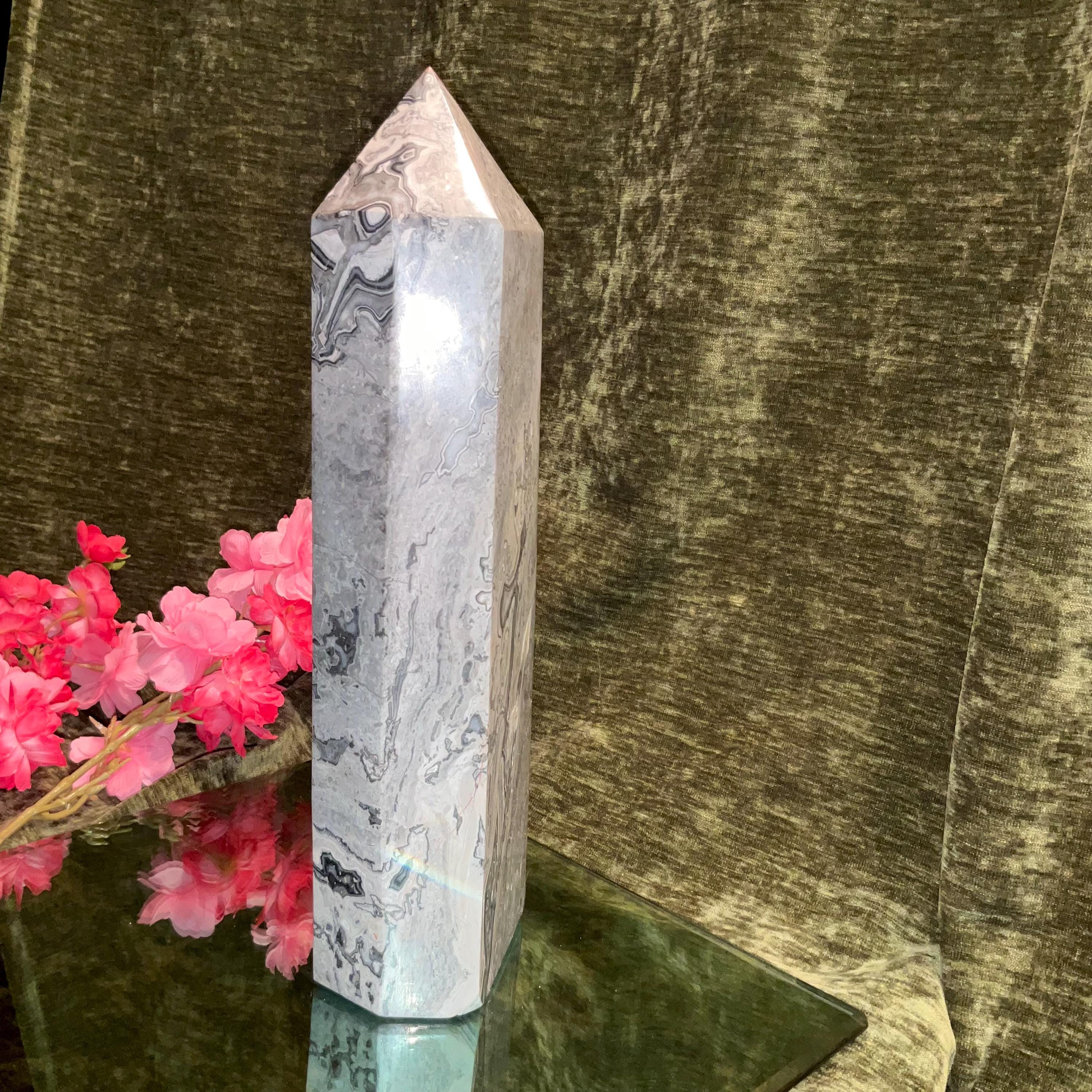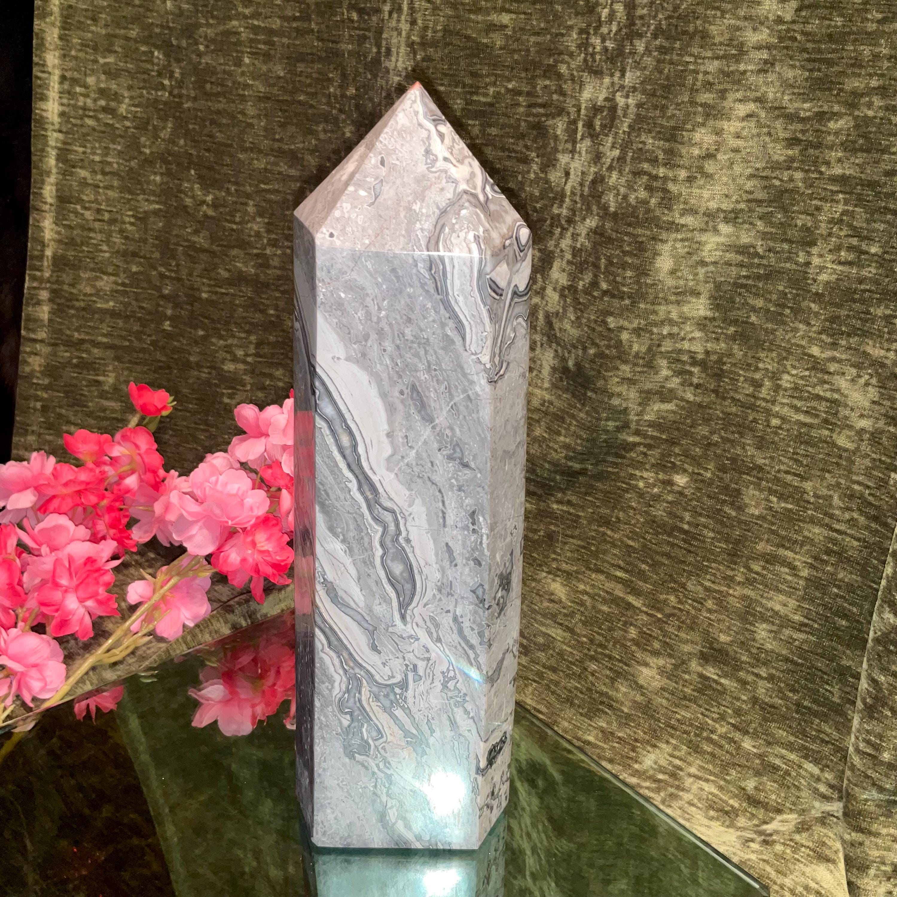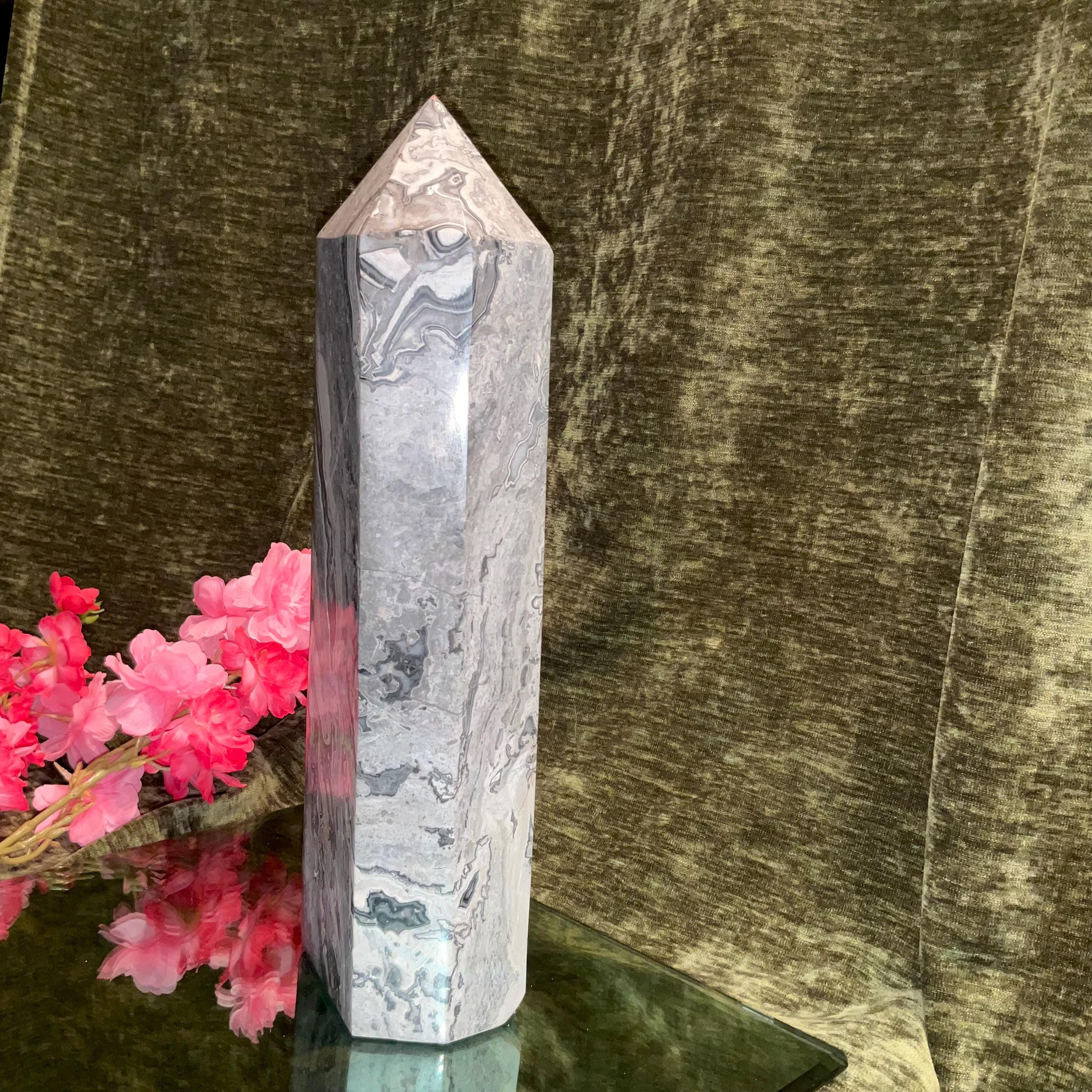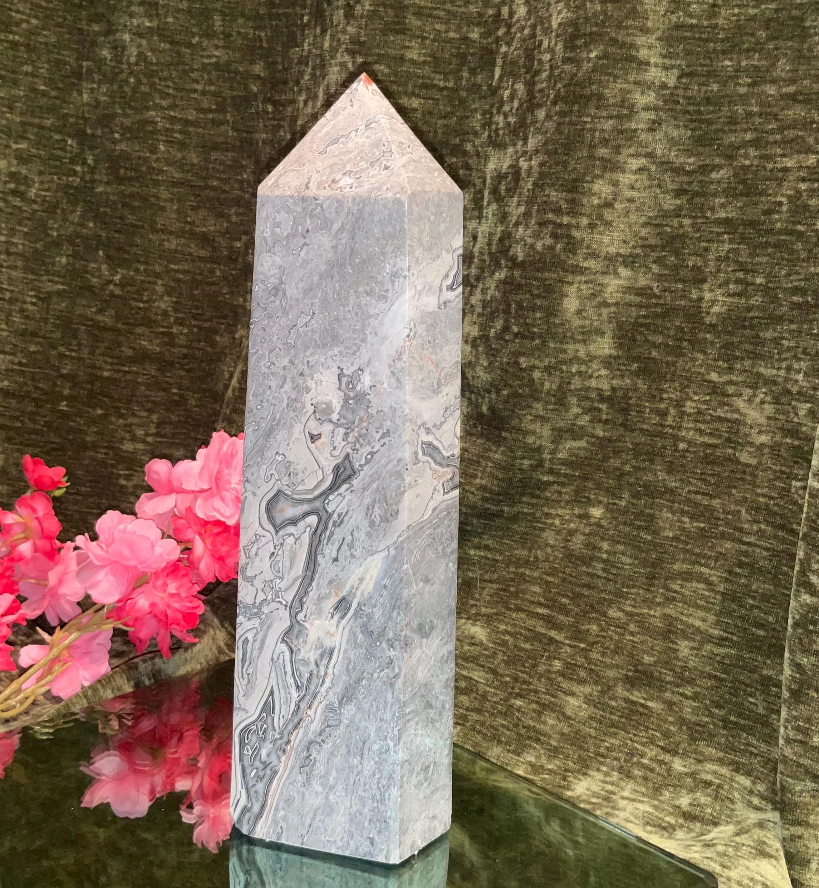 Emperor Gray Jasper Crystal Generator ~ 9 Lb. 14. oz ~ 12" Tall ~ Silver Black White Inclusions