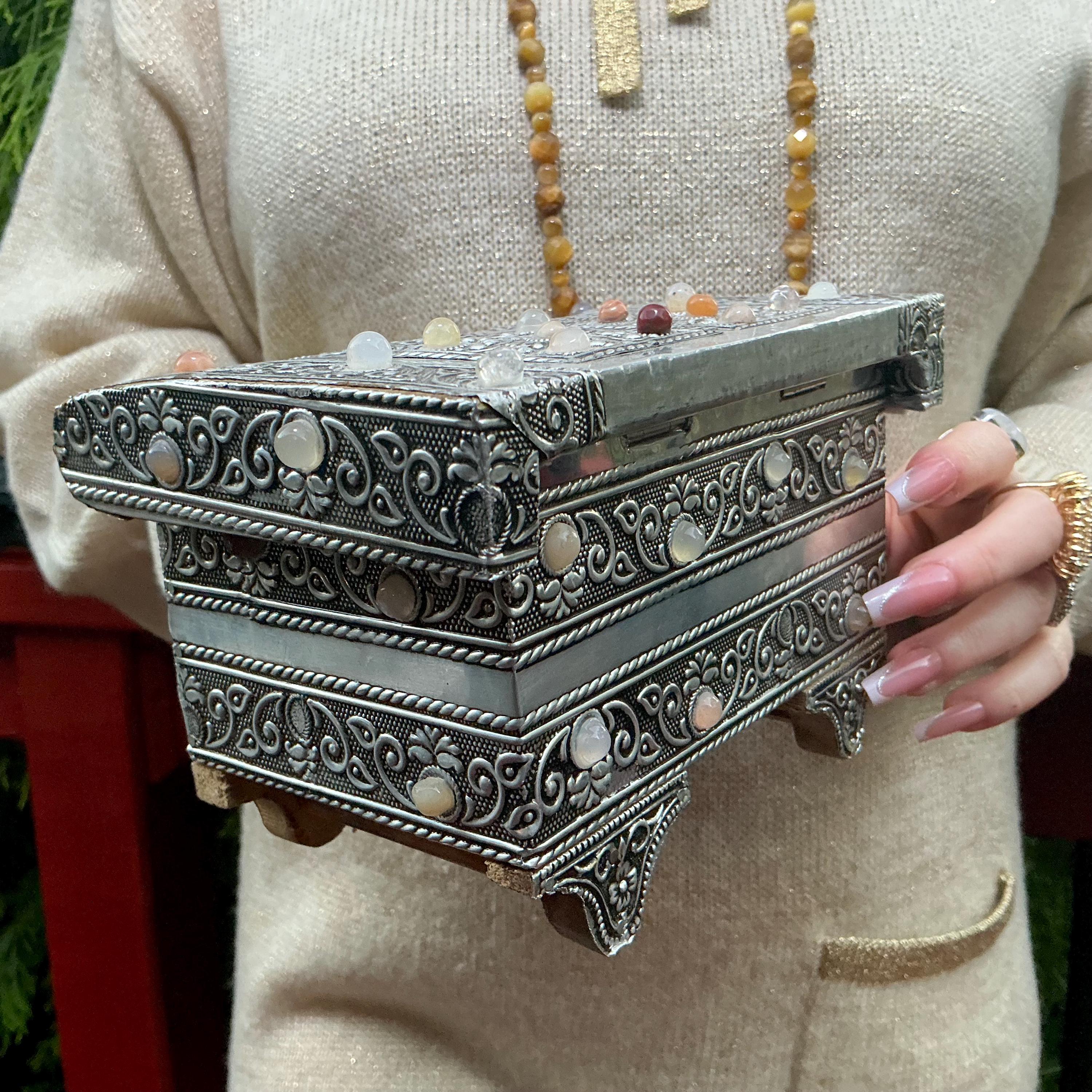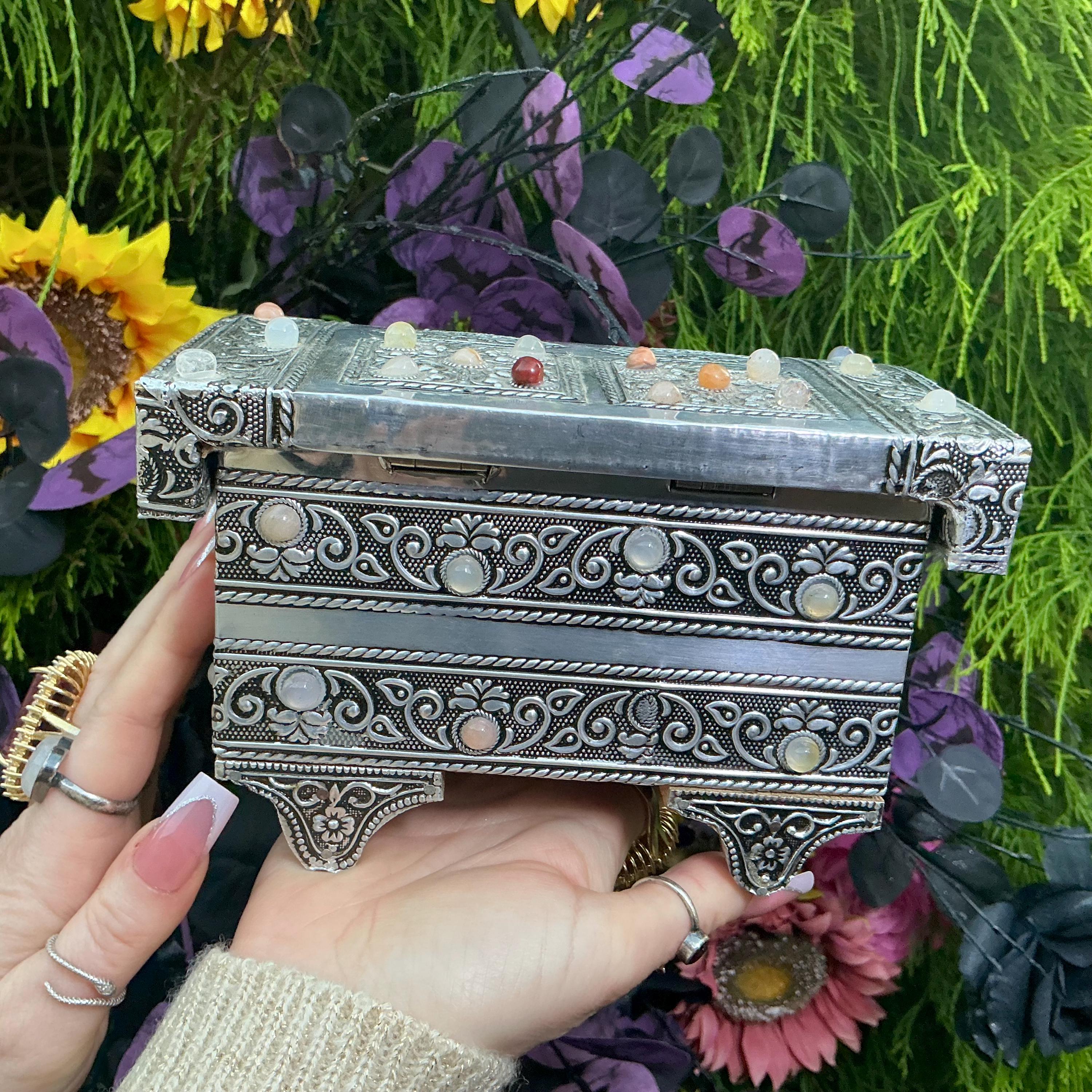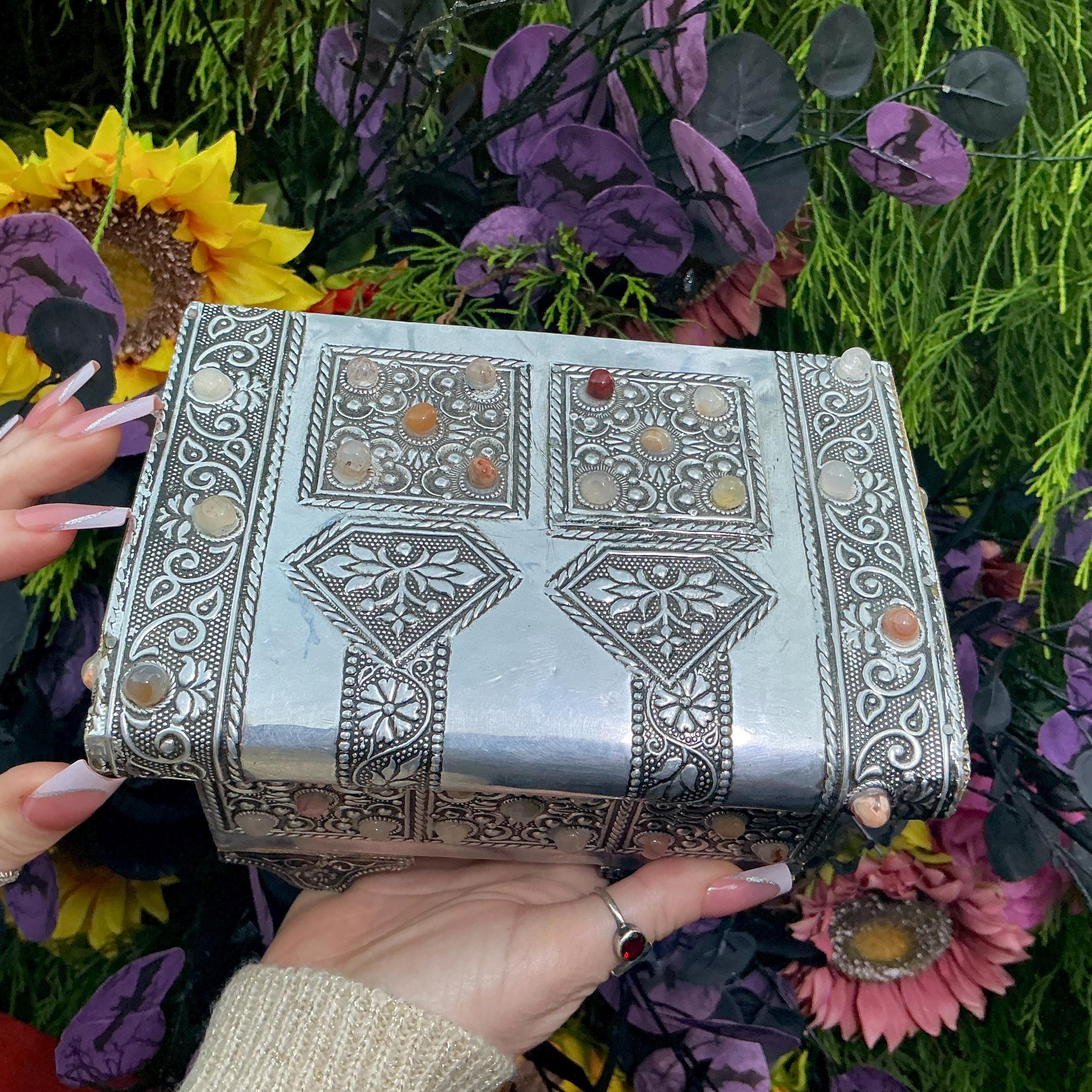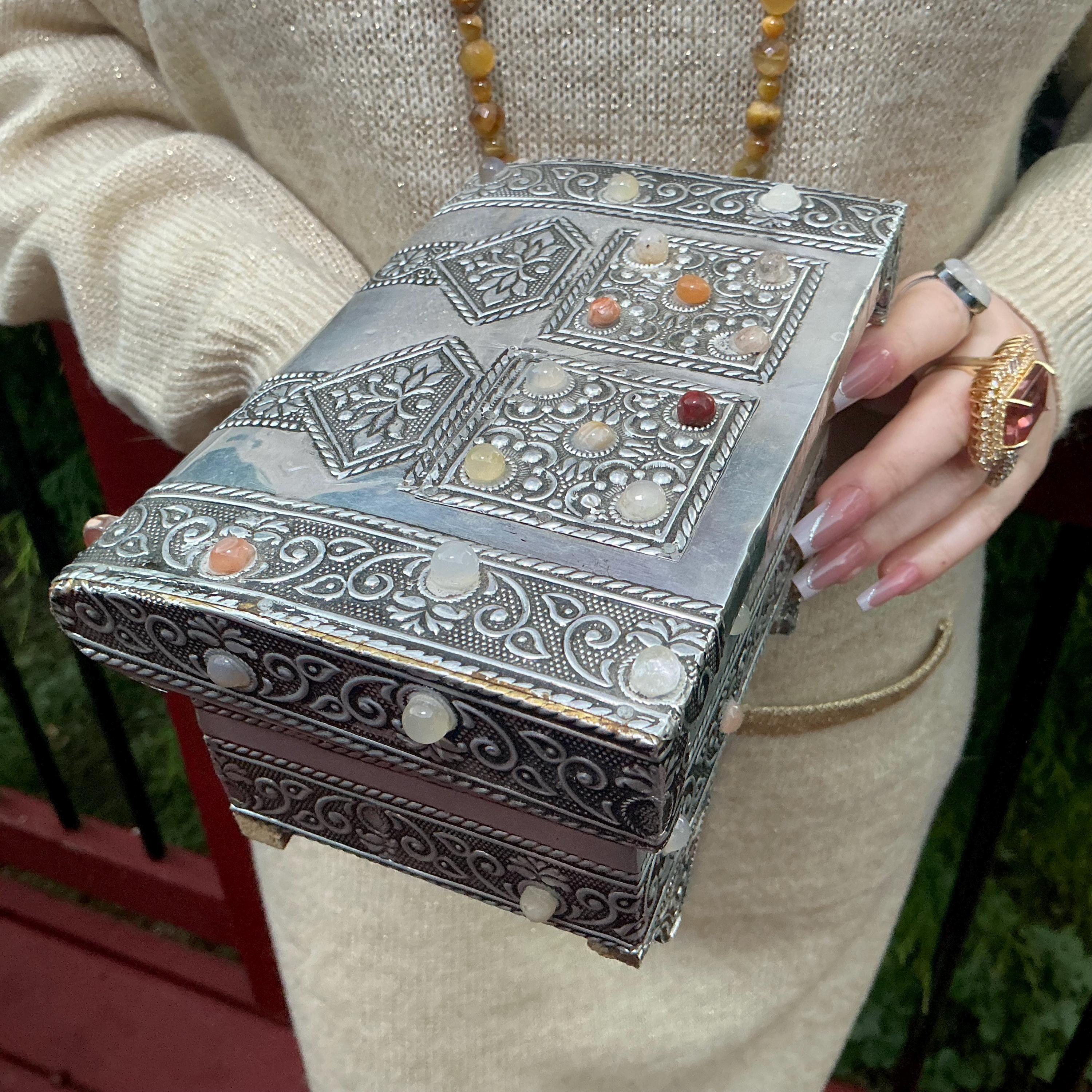 It is a Moroccan silver vintage jewelry box making it a one-of-a-kind work of art WOW!! this was meant for a goddess.