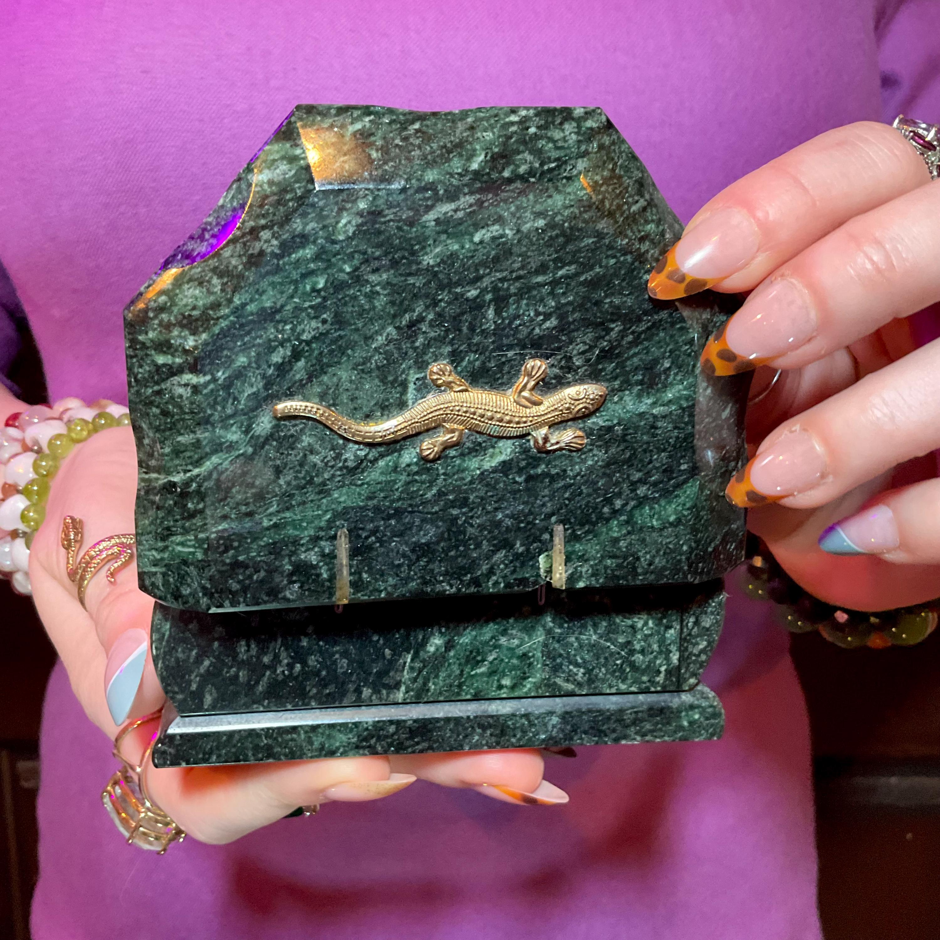If you love vintage hand carved Vintage Green Serpentine, then this beautiful rare one-of-a-kind Jewelry Box is for you.