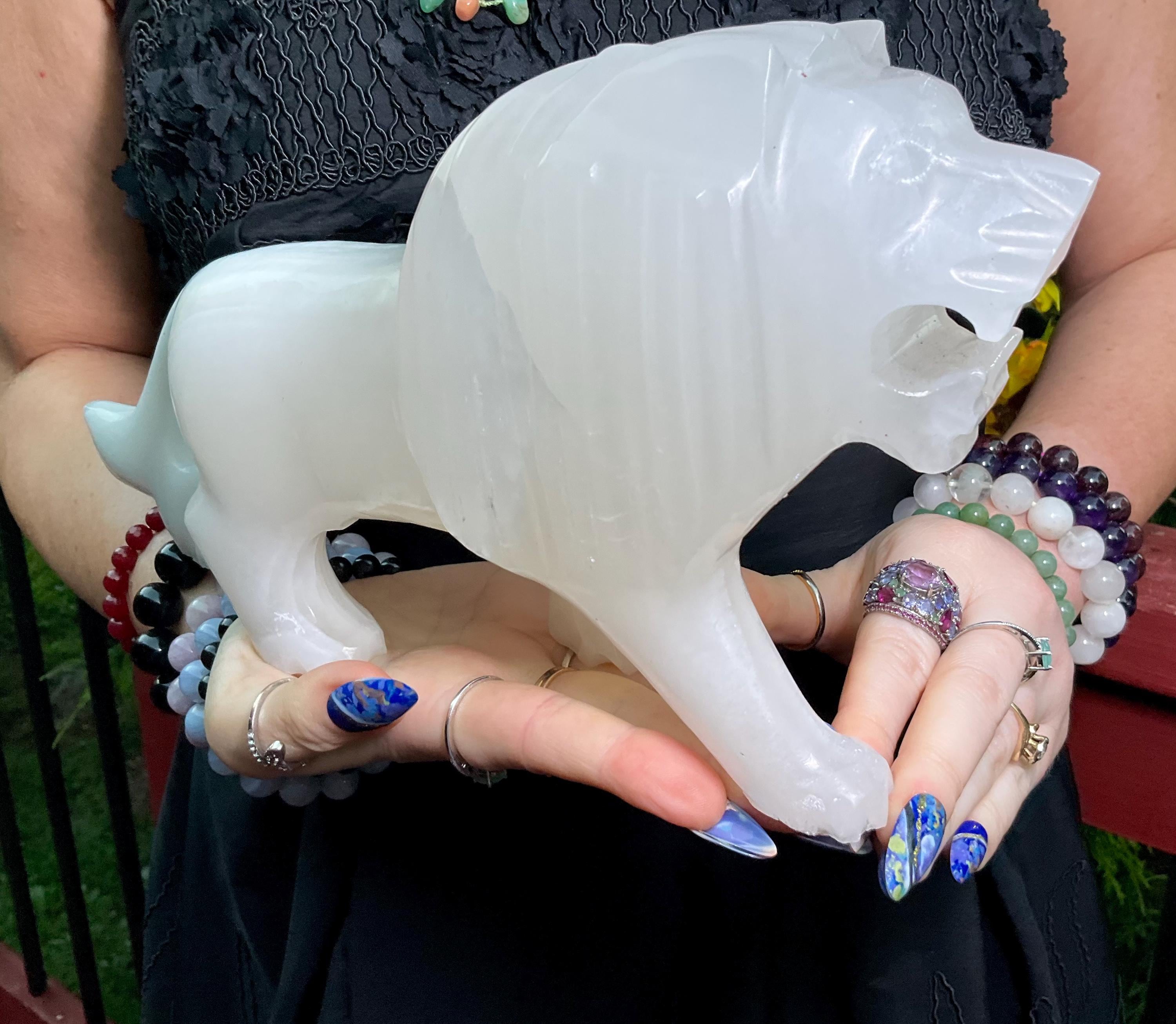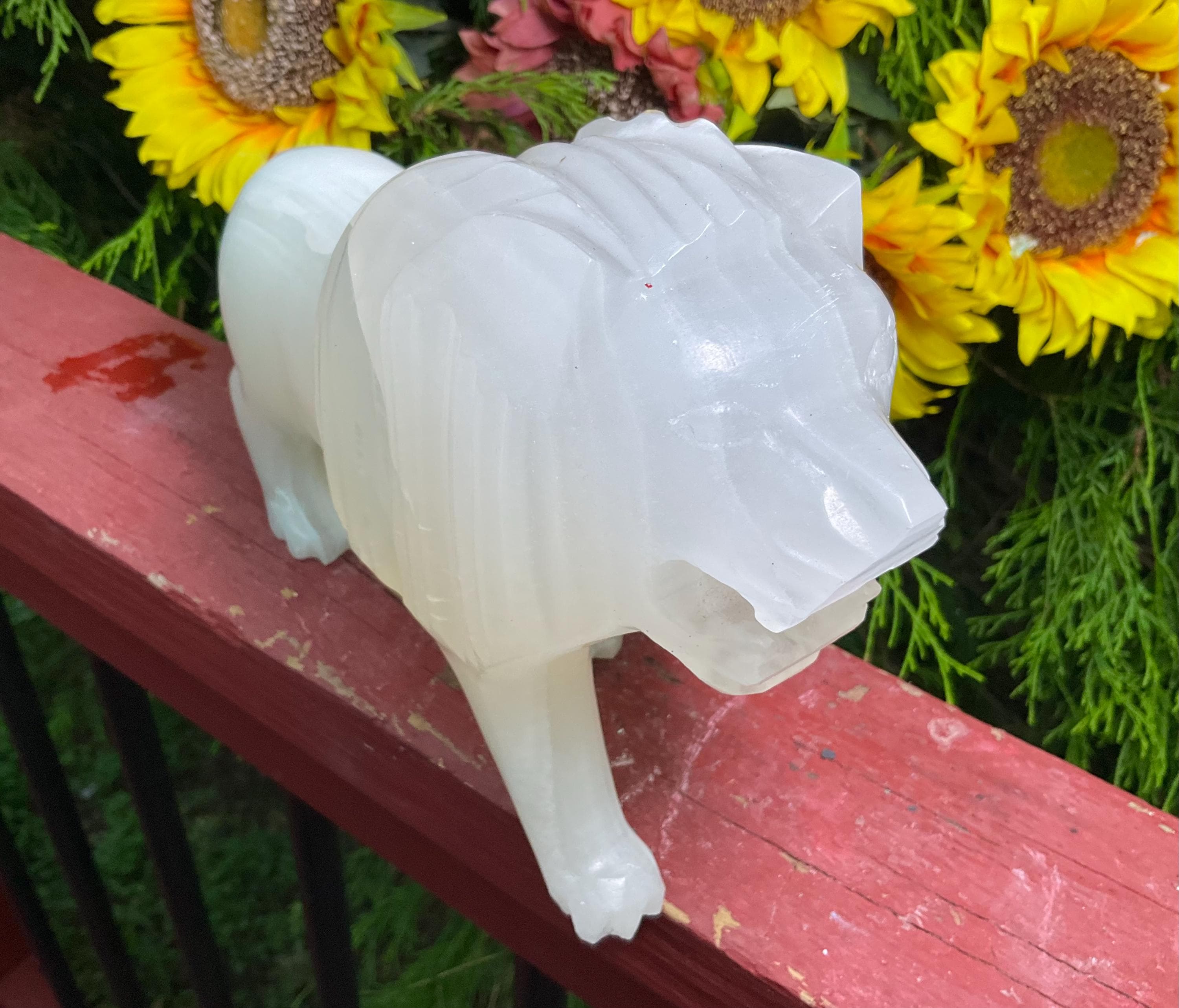 What makes this White Onyx lion so special is age, patina, and its vintage deco free form style.