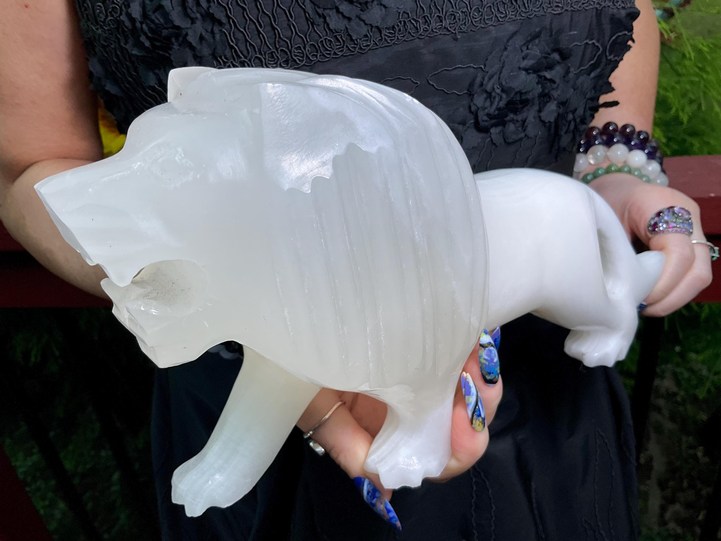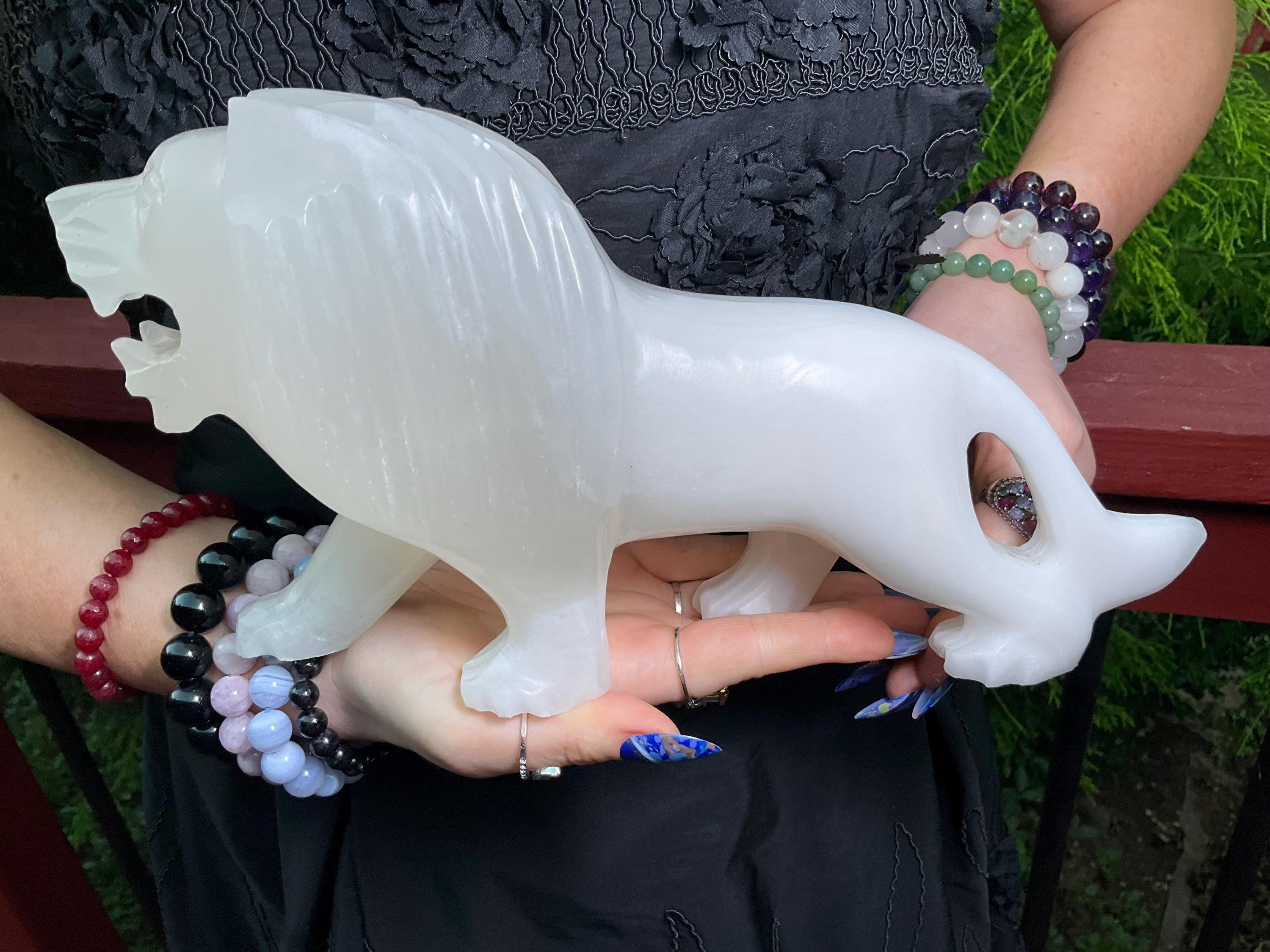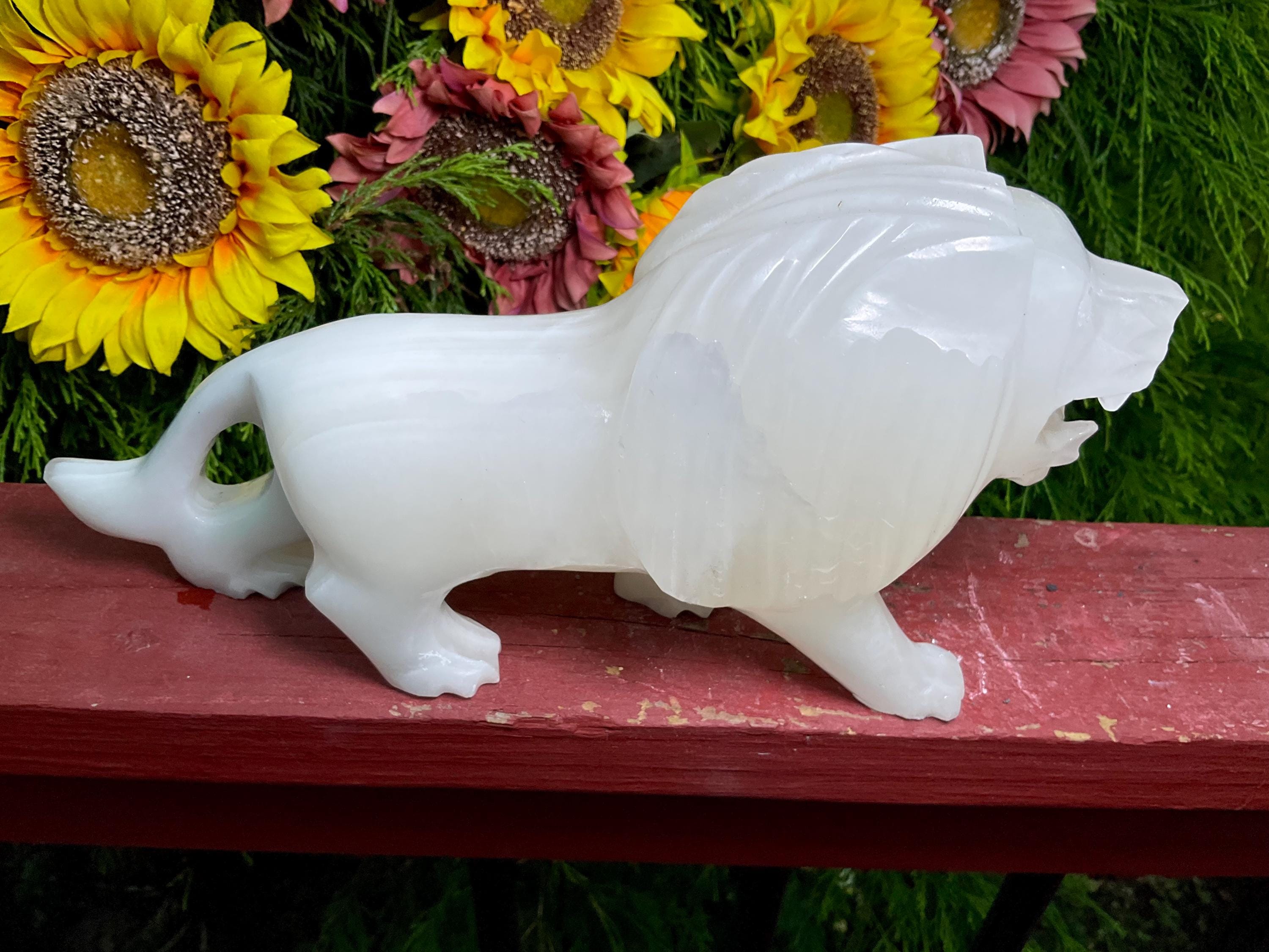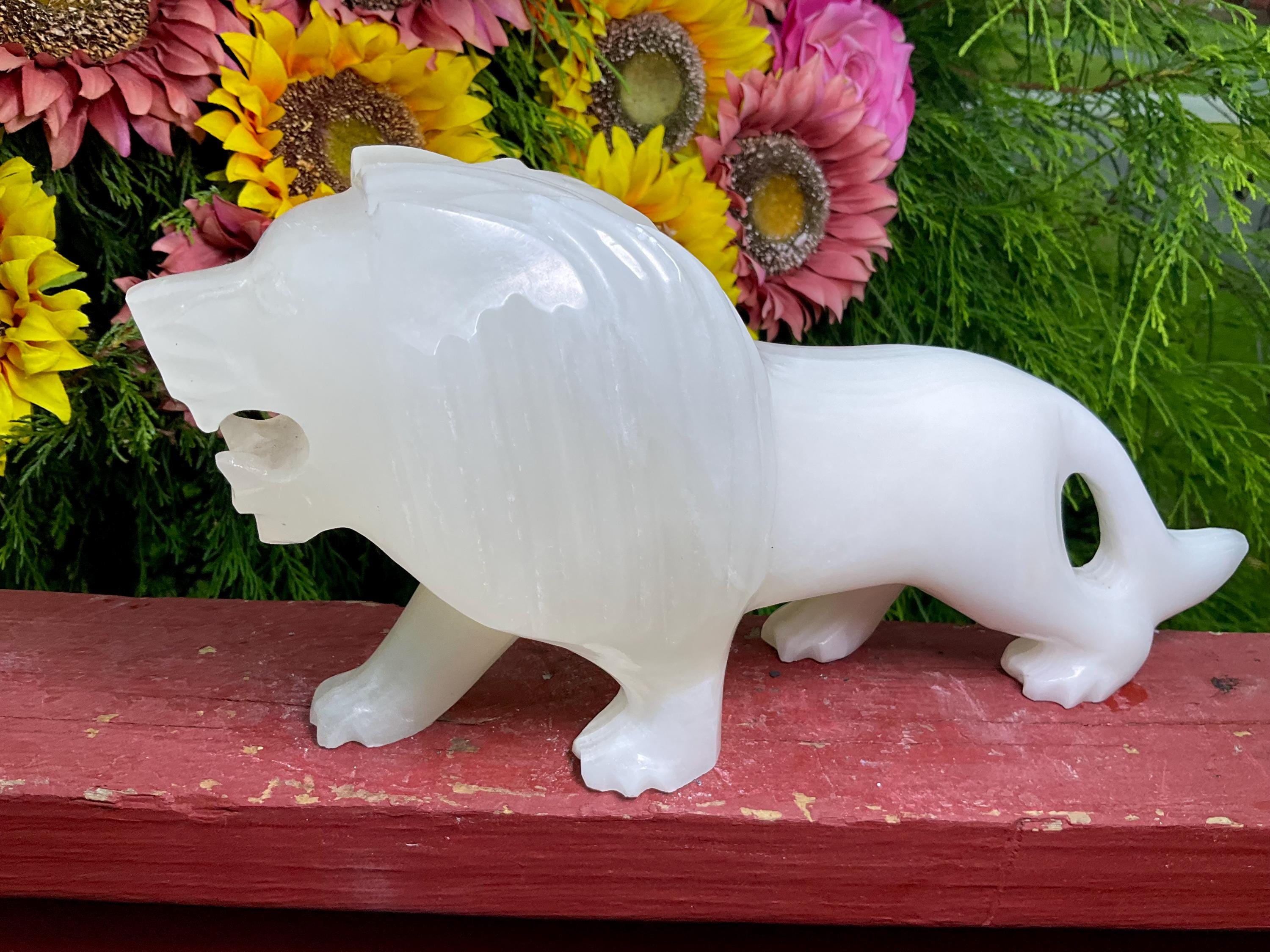 Vintage White Onyx African Lion Big 5 Lb. 11 oz ~ 11" Long ~ Hand Carved Museum Quality ~ Swirling White Colors