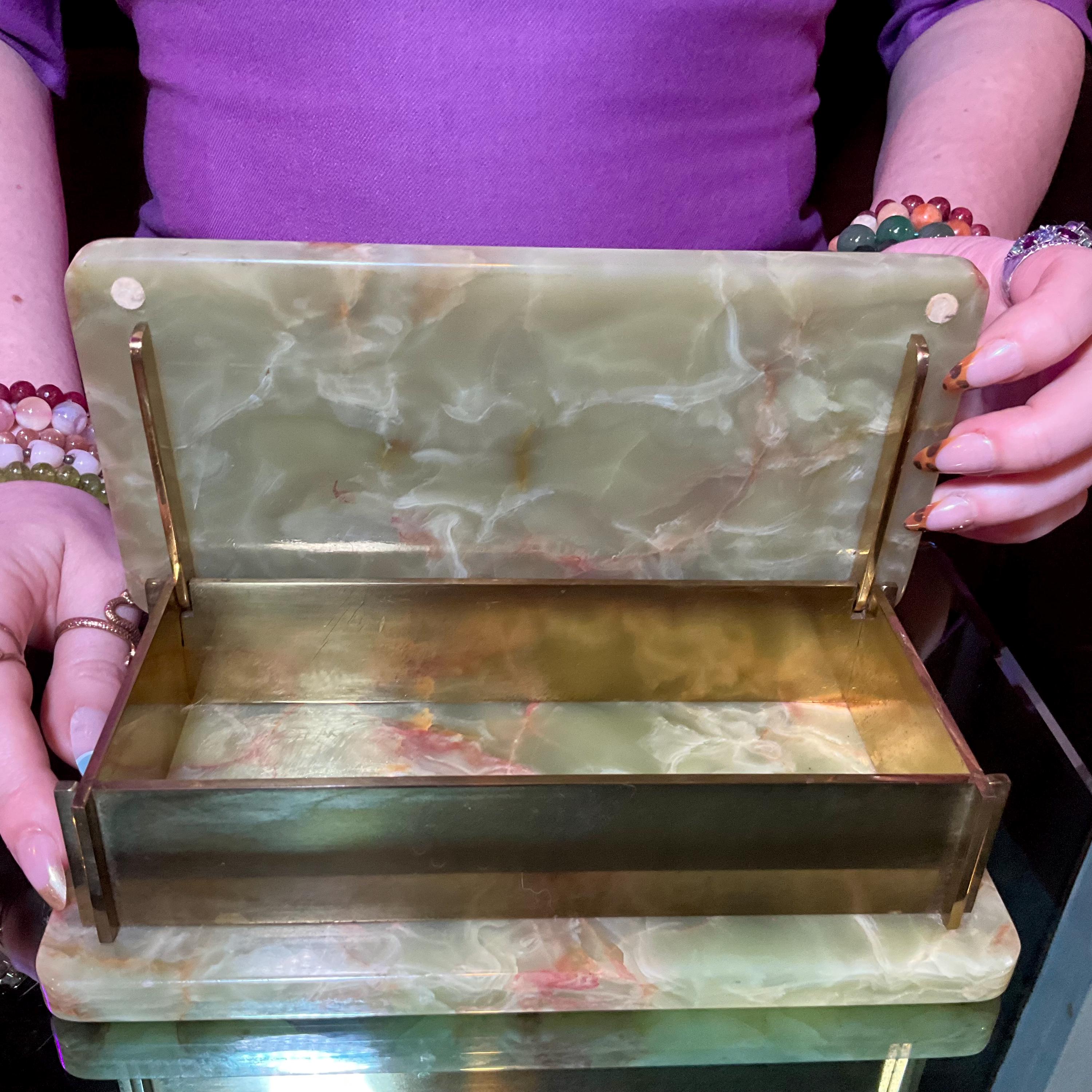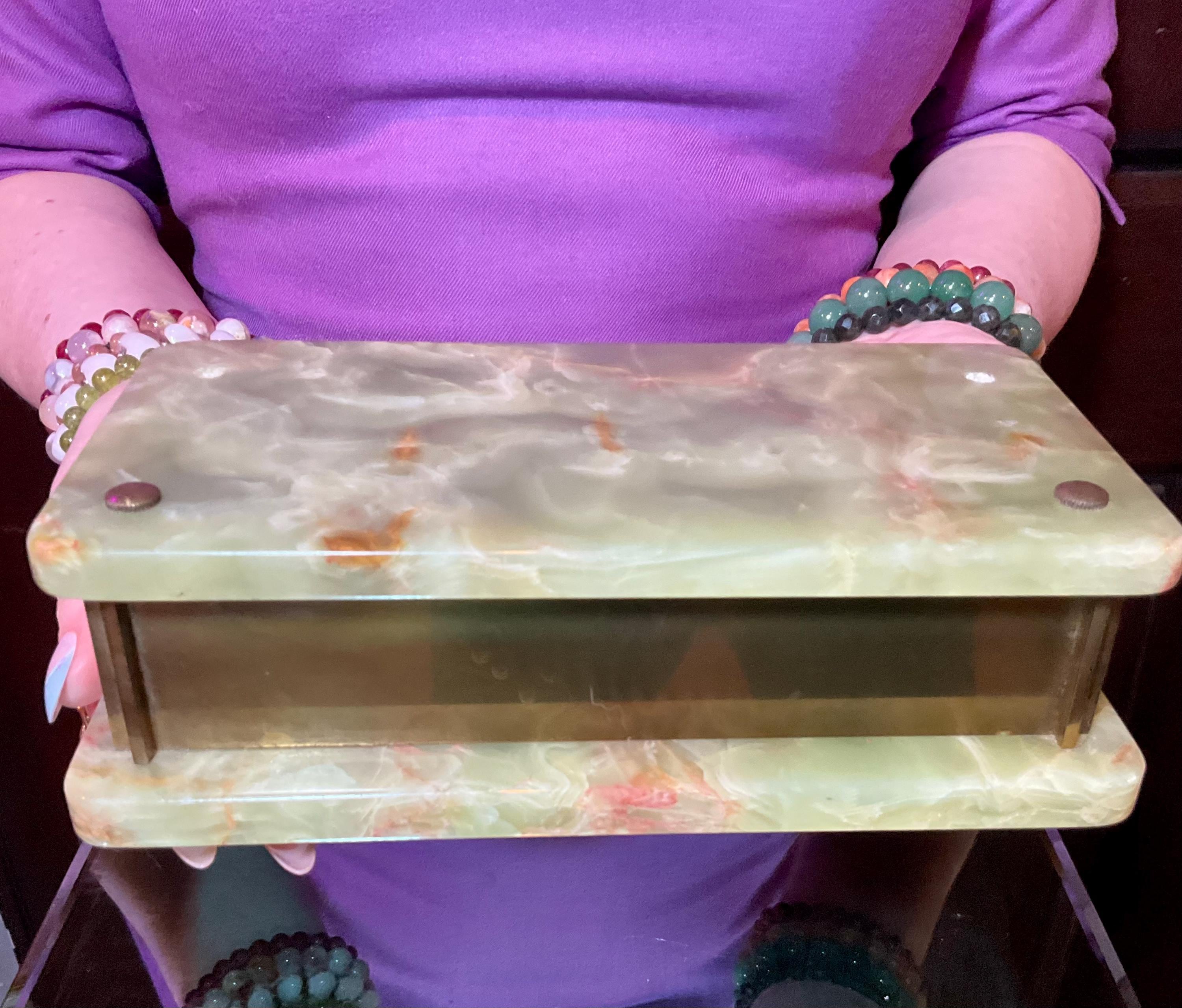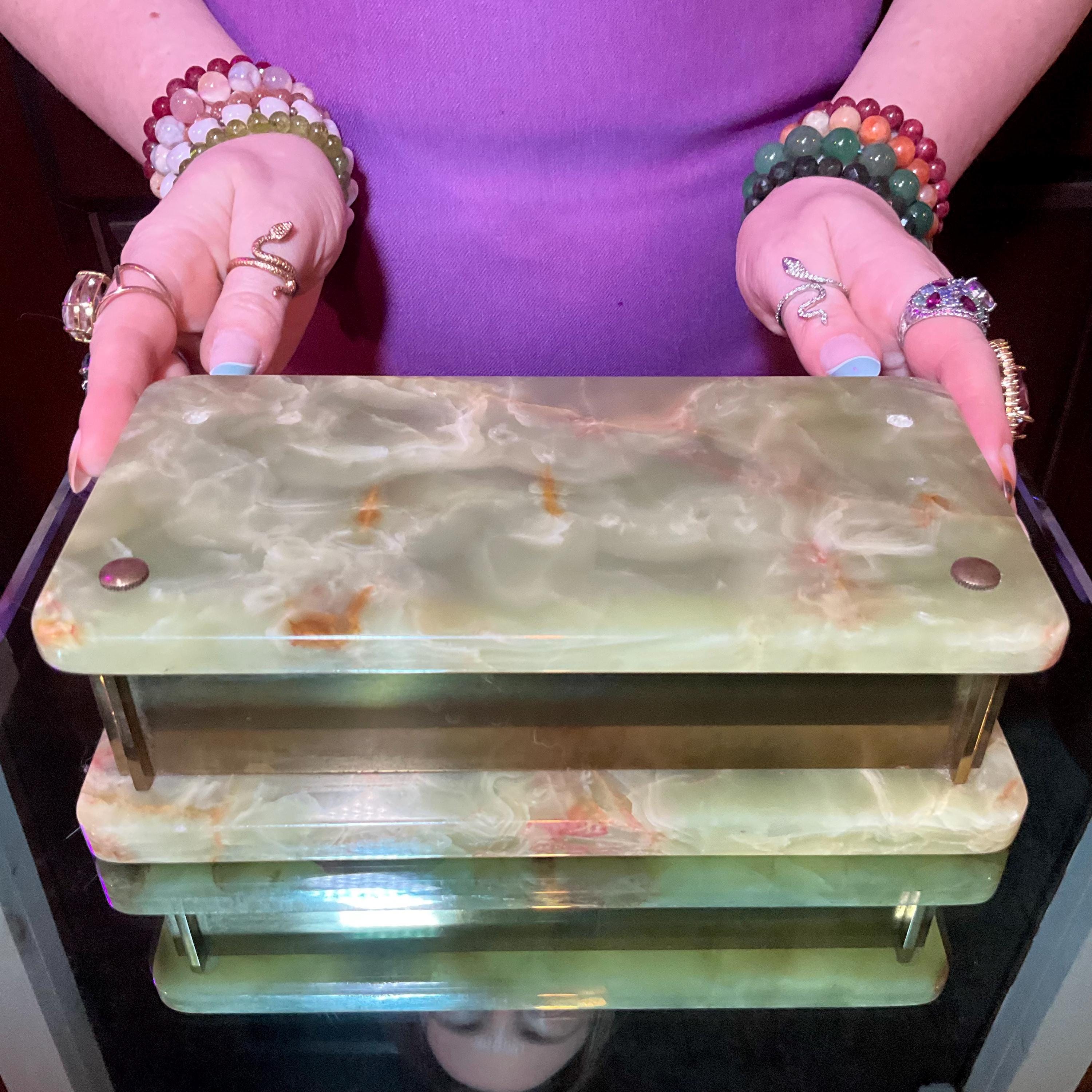 It is loaded with Swirling green, white, yellow & golden-brown pattern's swirling throughout making this a one-of-a-kind treasure box.