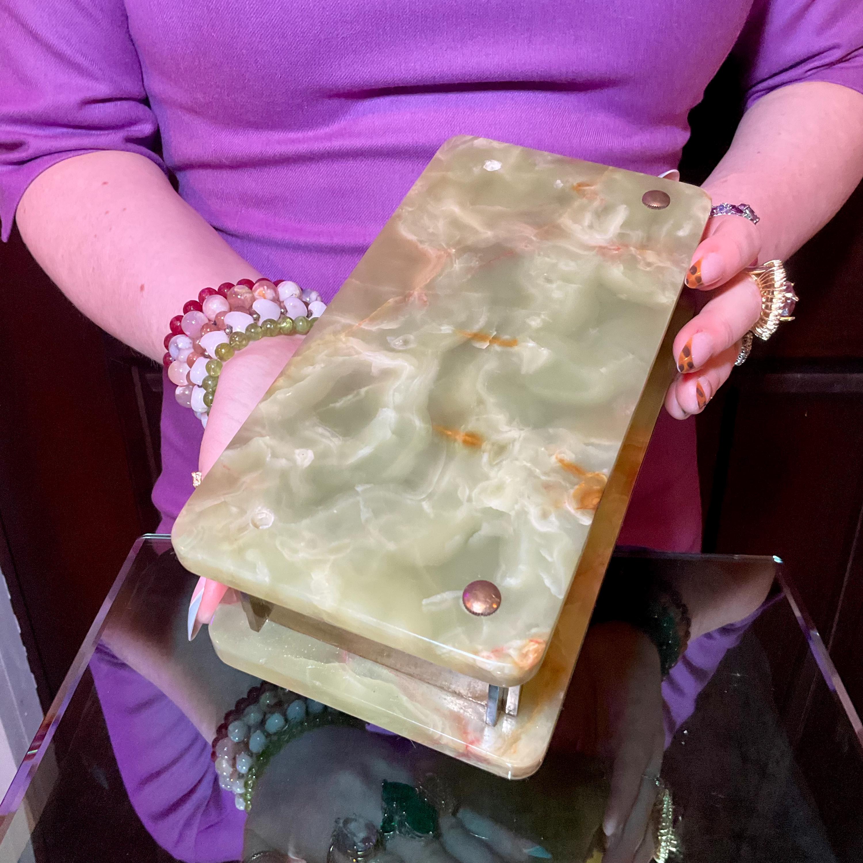 The large Vintage Afghan Jade Jewelry Box weighs, 4 pounds 6 ounces and it is beautifully hand carved and masterfully crafted to perfection.