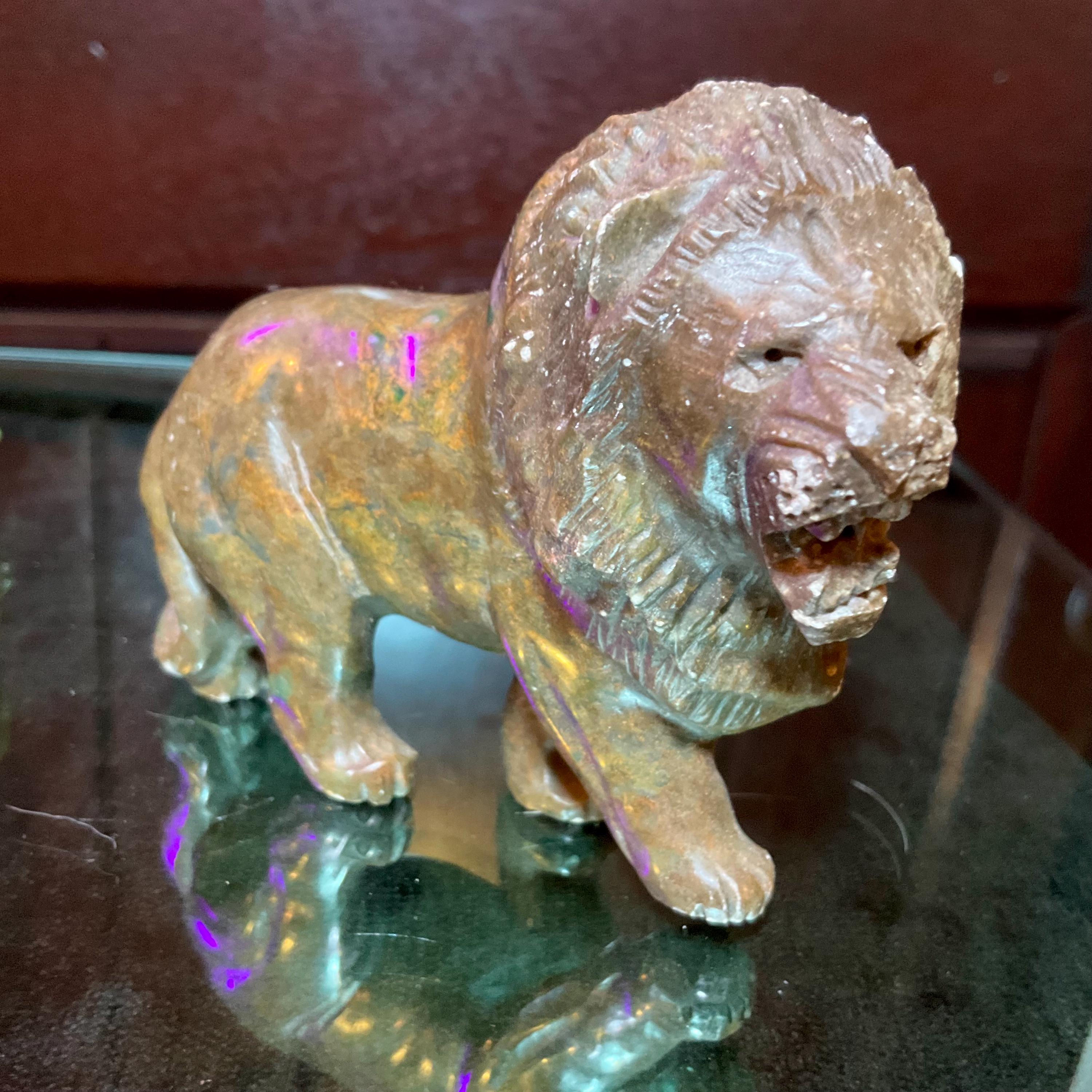 This is a one-of-a-kind carved Verdite lion.