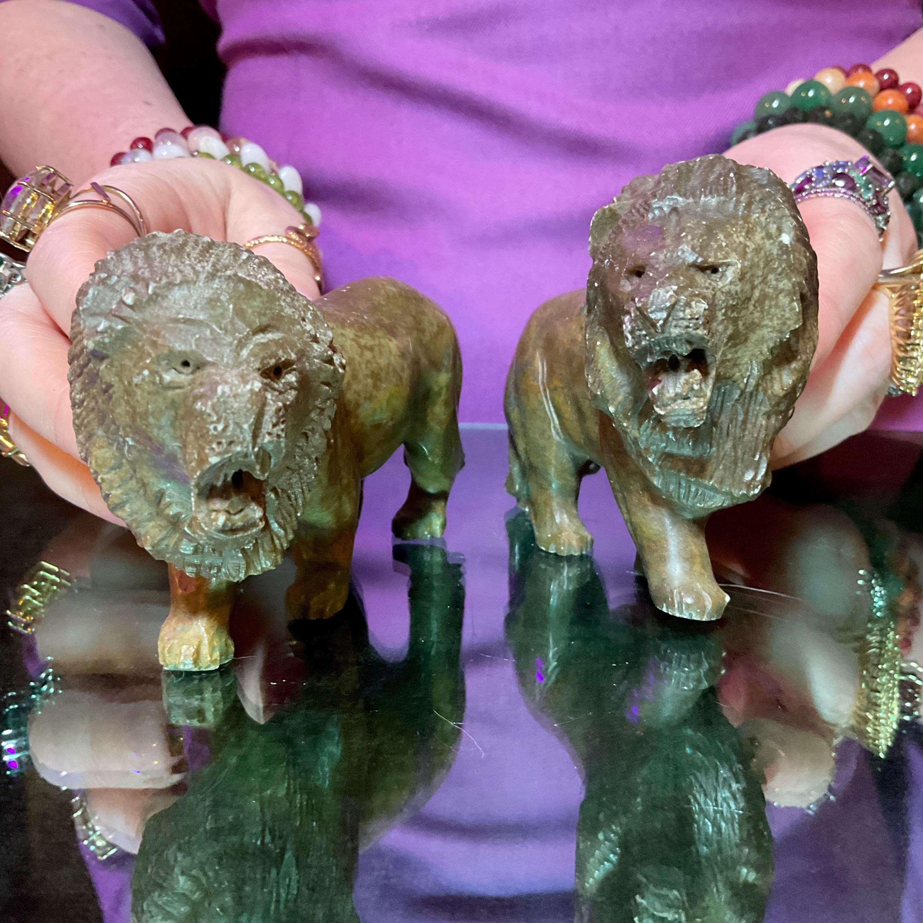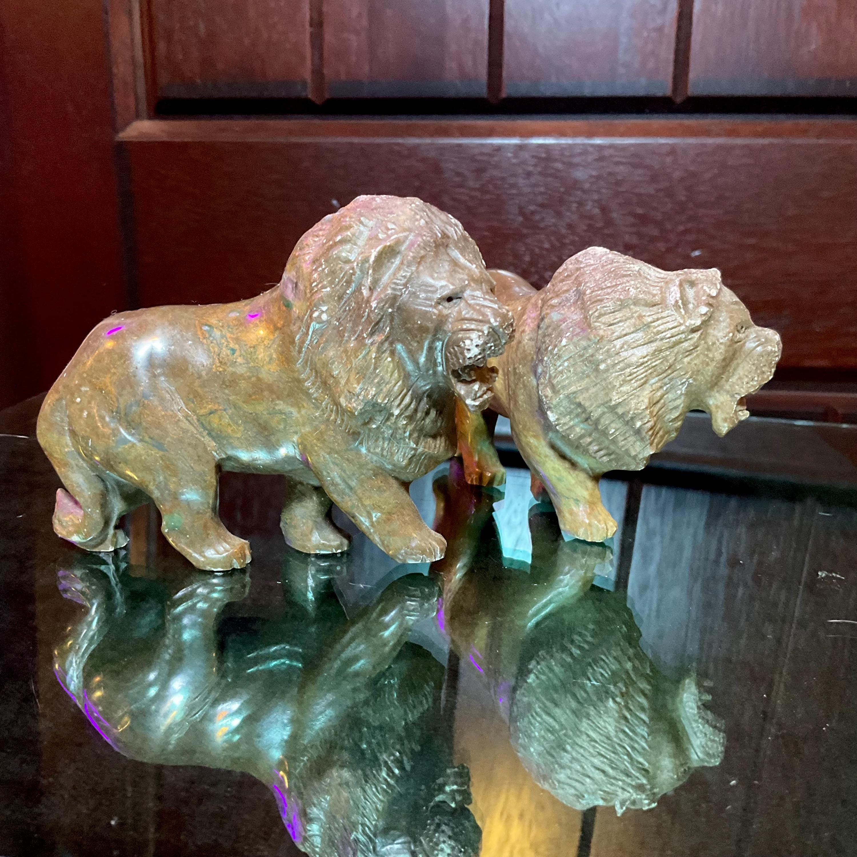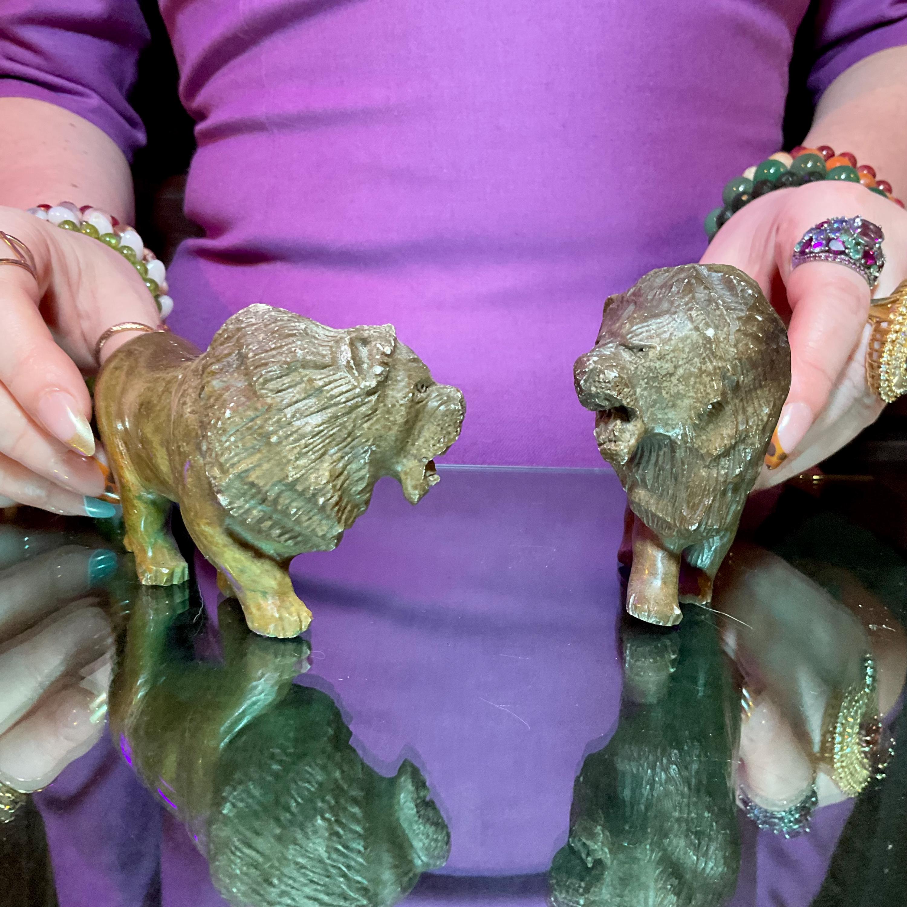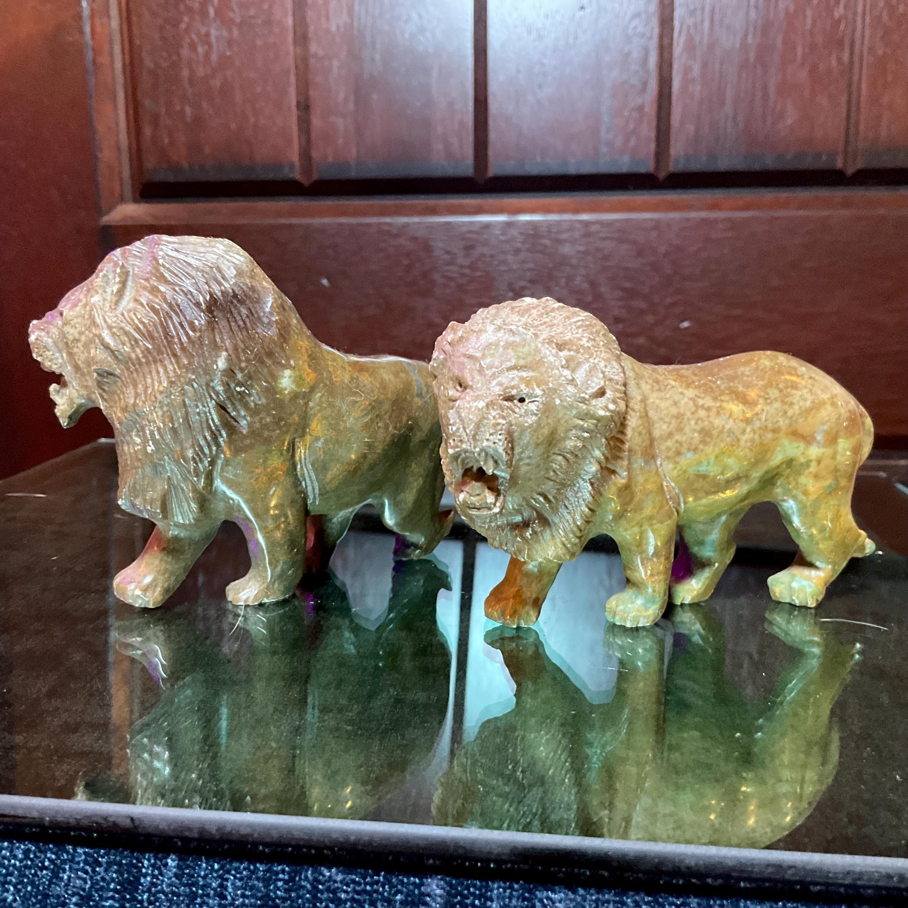 Verdite Pair of African Lions 5" Long Vintage Hand Carved Mineral ~ Vintage Hand Carved Congo ~ Museum Quality ~ Fast & Free Shipping, from U.S.A.