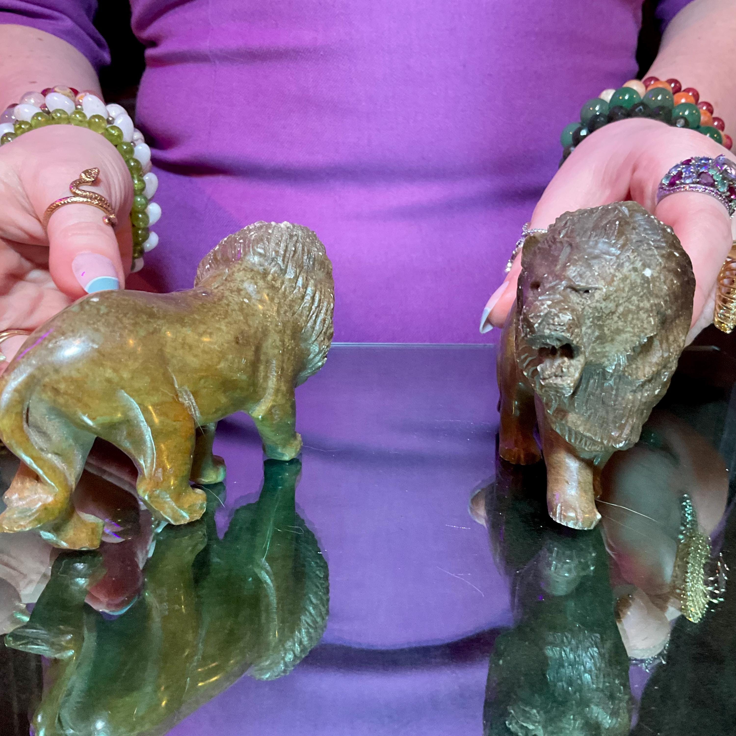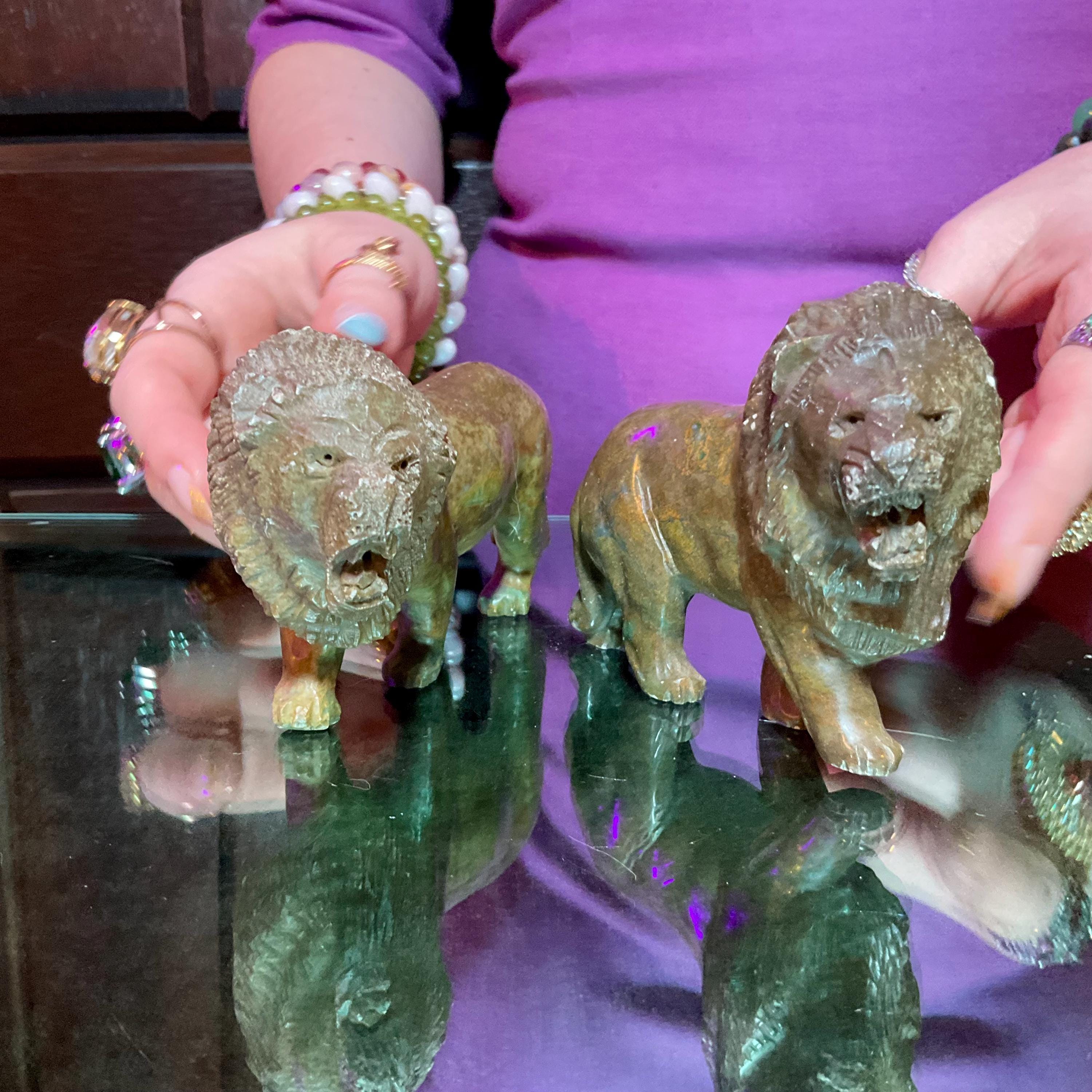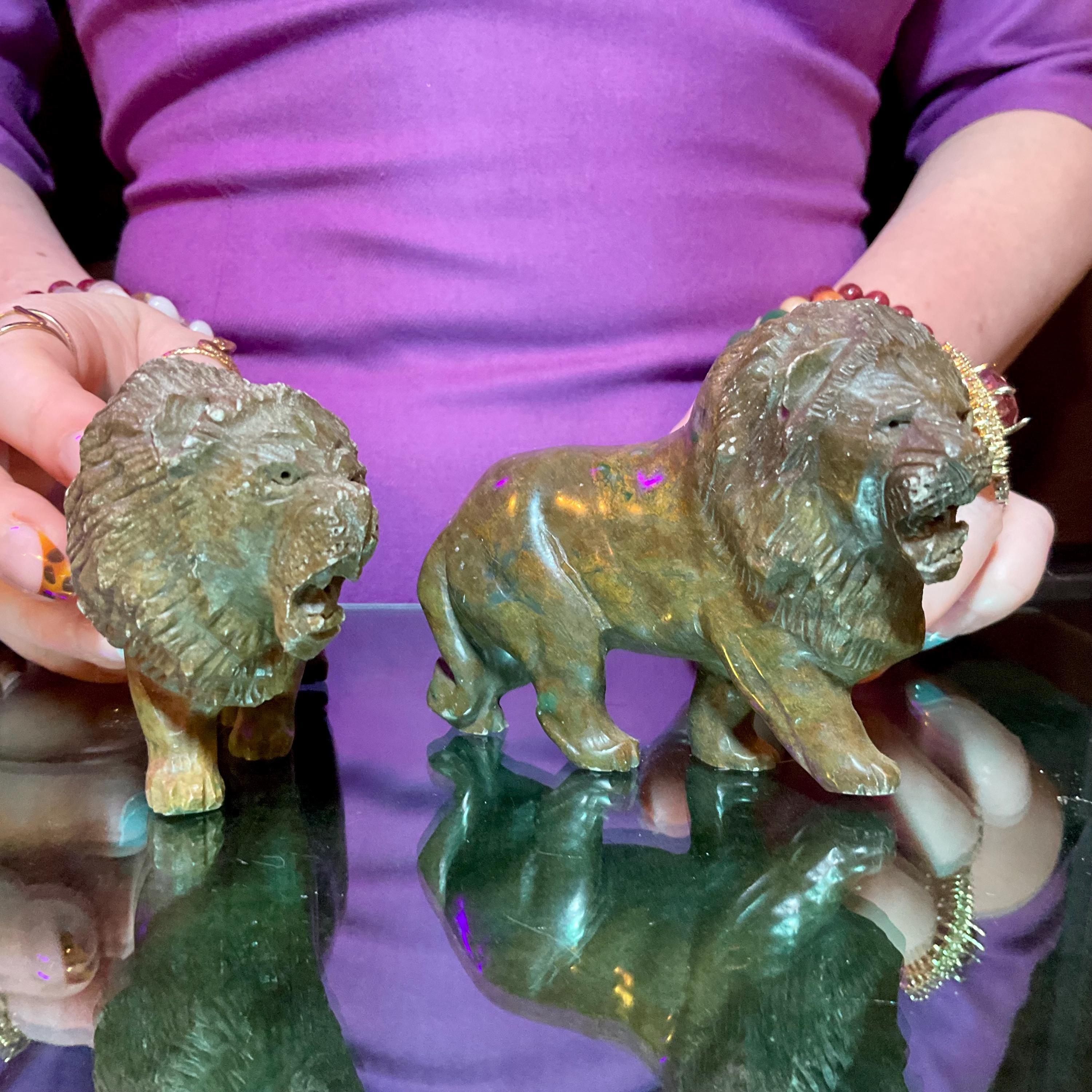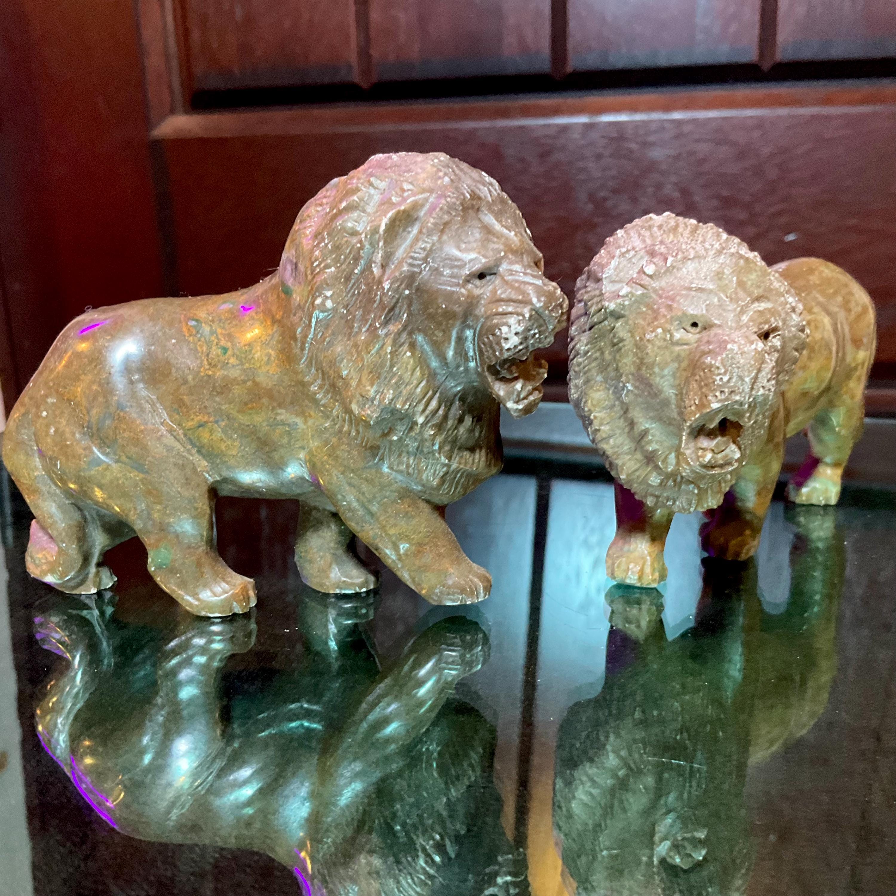 Verdite Pair of African Lions 5" Long Vintage Hand Carved Mineral ~ Vintage Hand Carved Congo ~ Museum Quality ~ Fast & Free Shipping, from U.S.A.