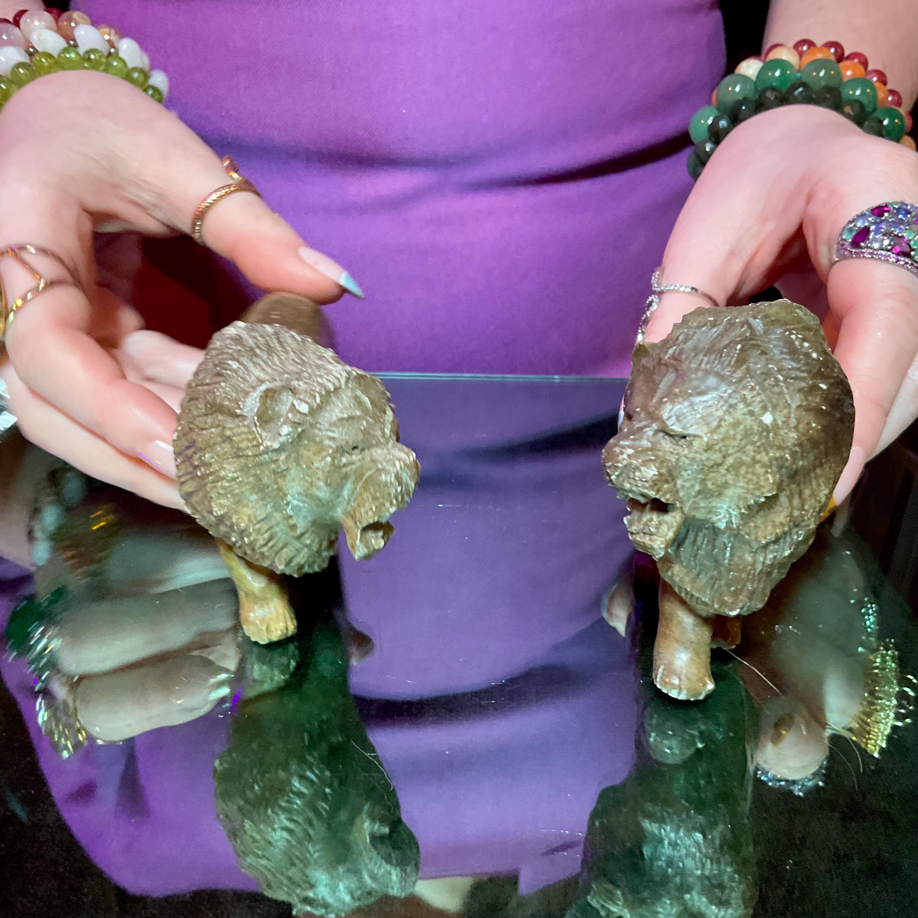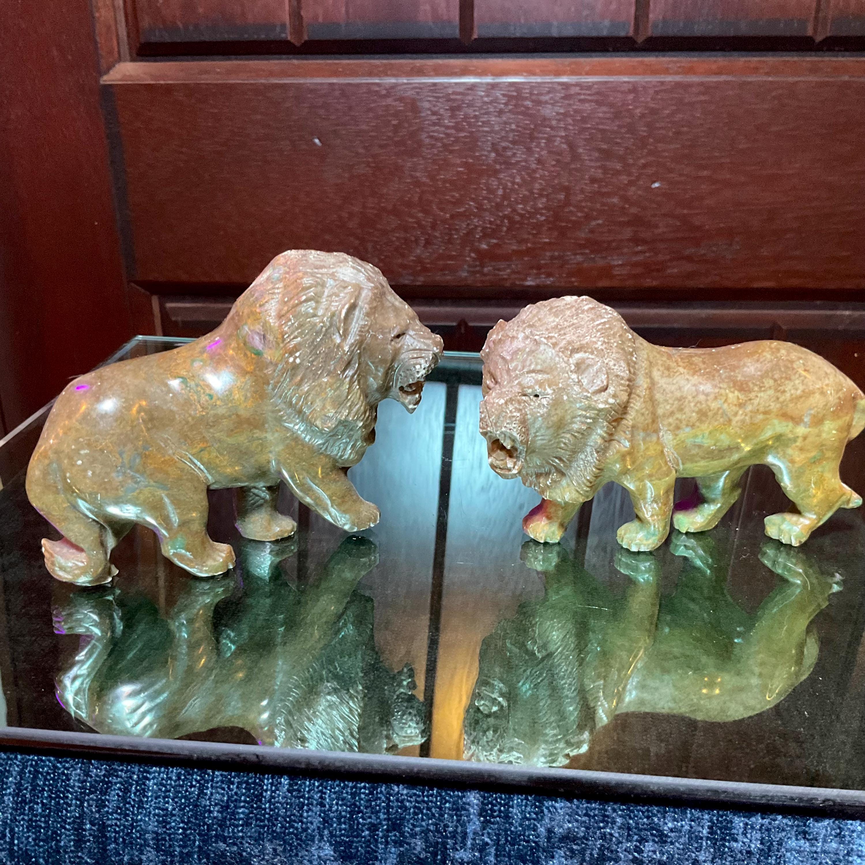 These perfect size lions weigh 10 ounces each and were beautifully hand carved a long time ago.