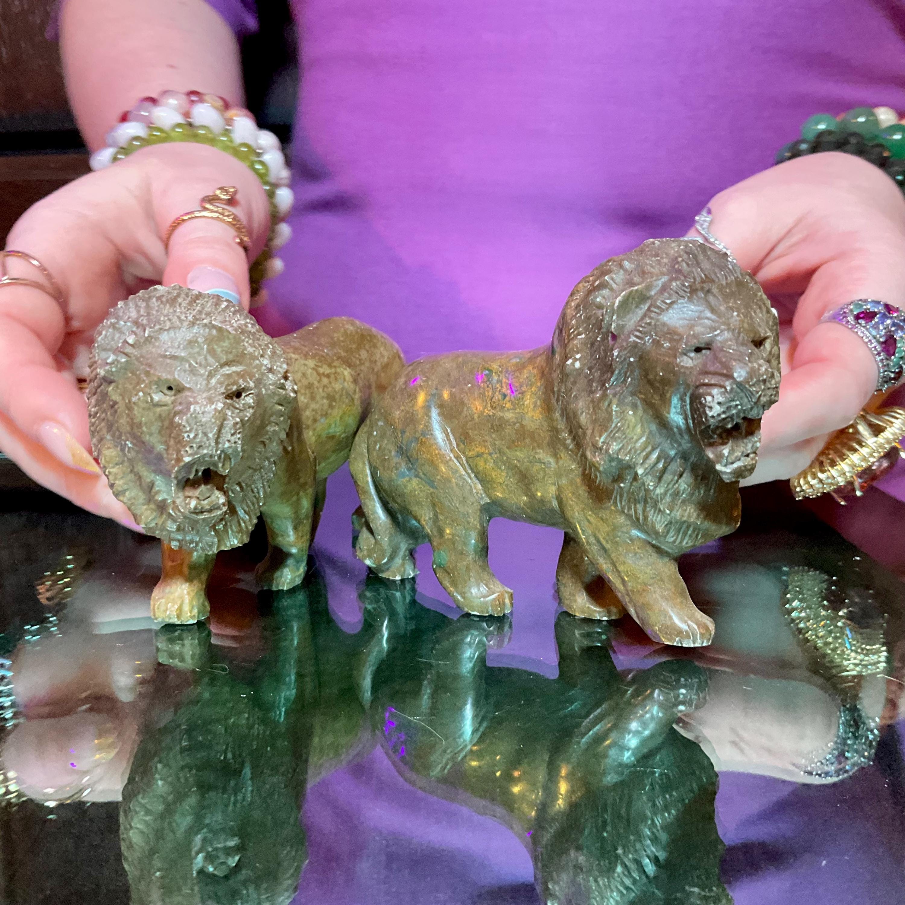 If you love Verdite, then this adorable Pair of African Lions is for you.