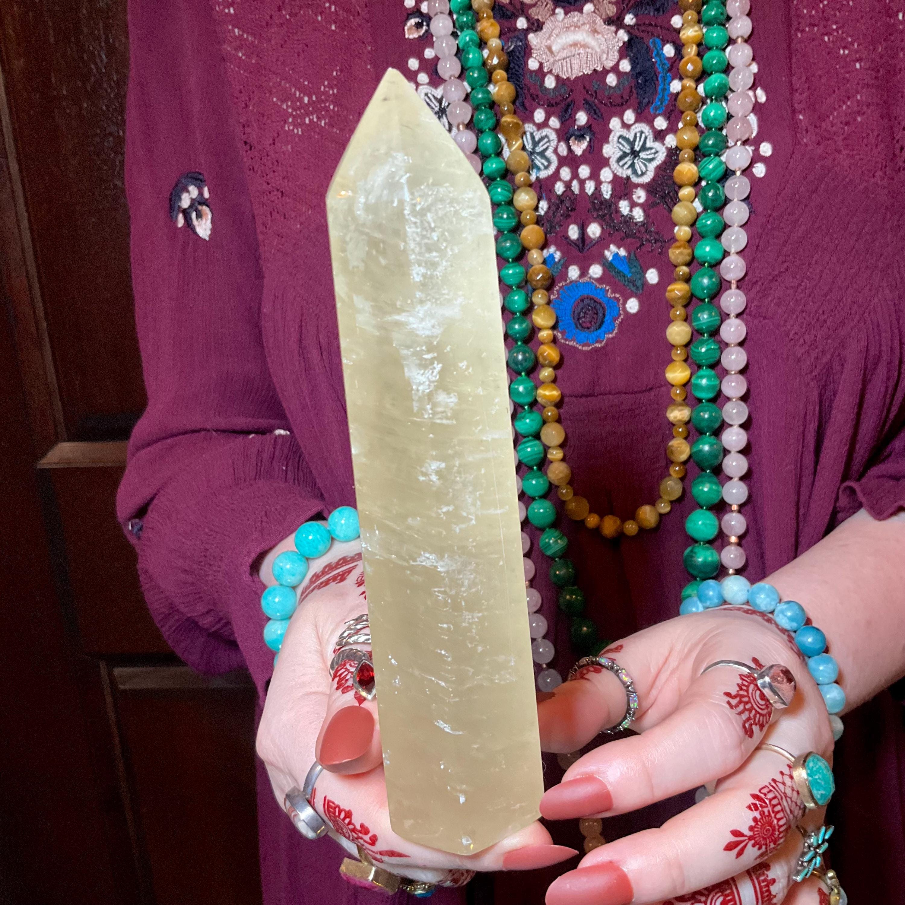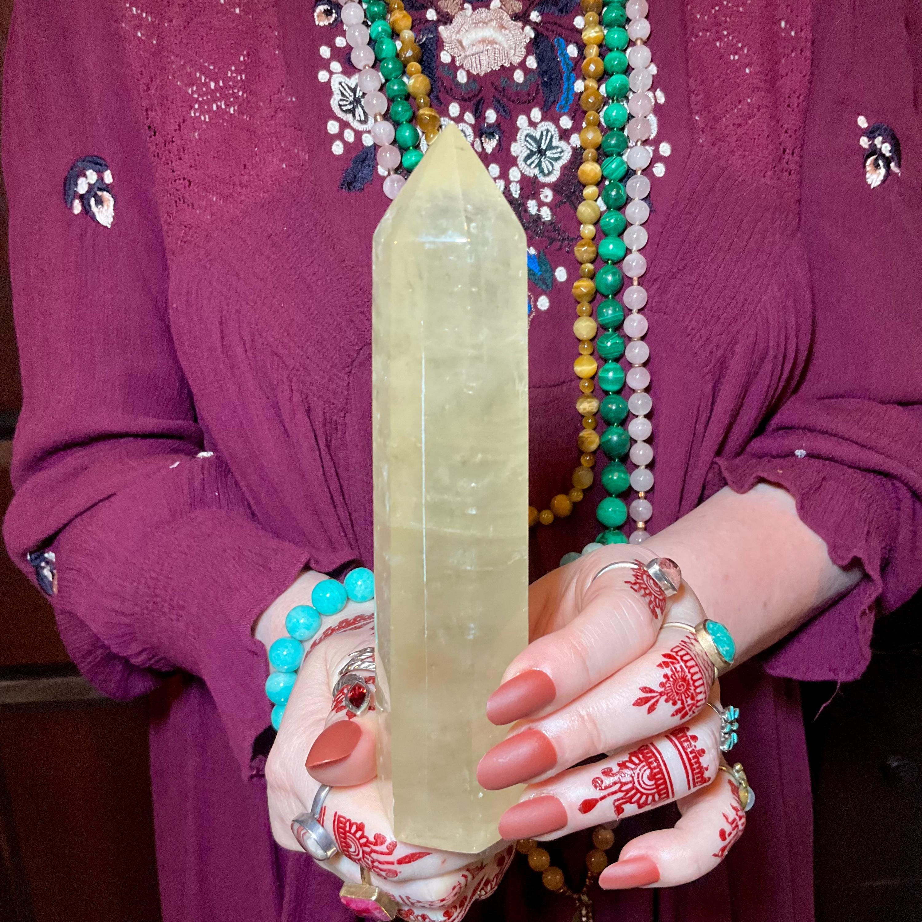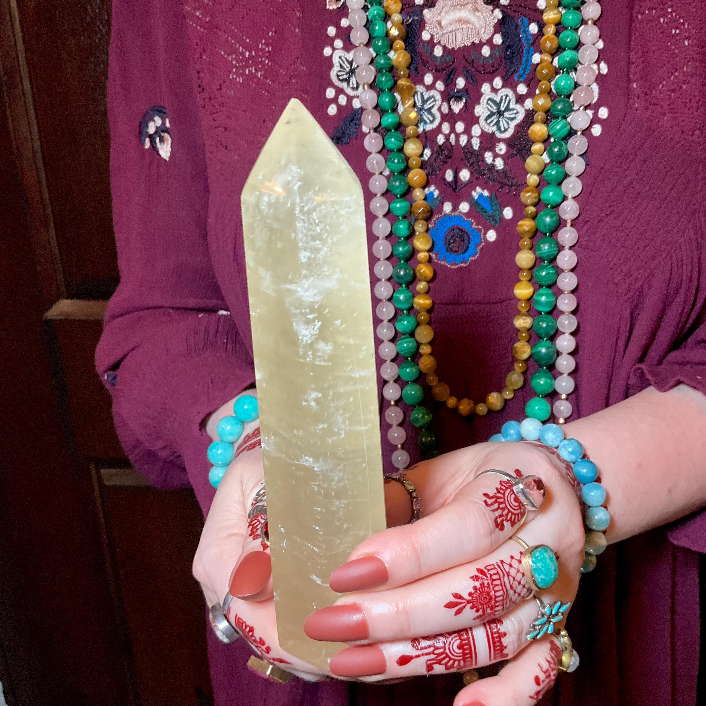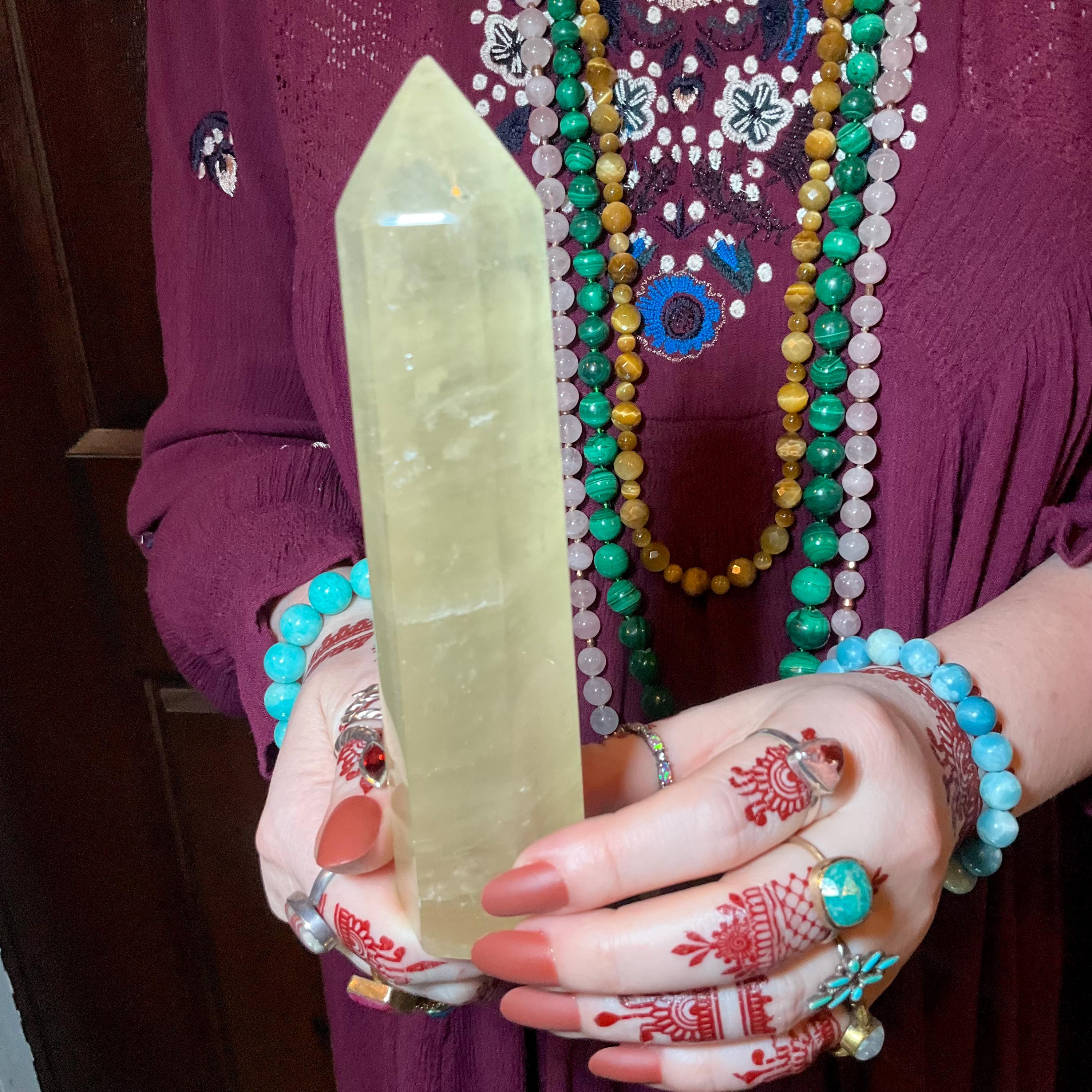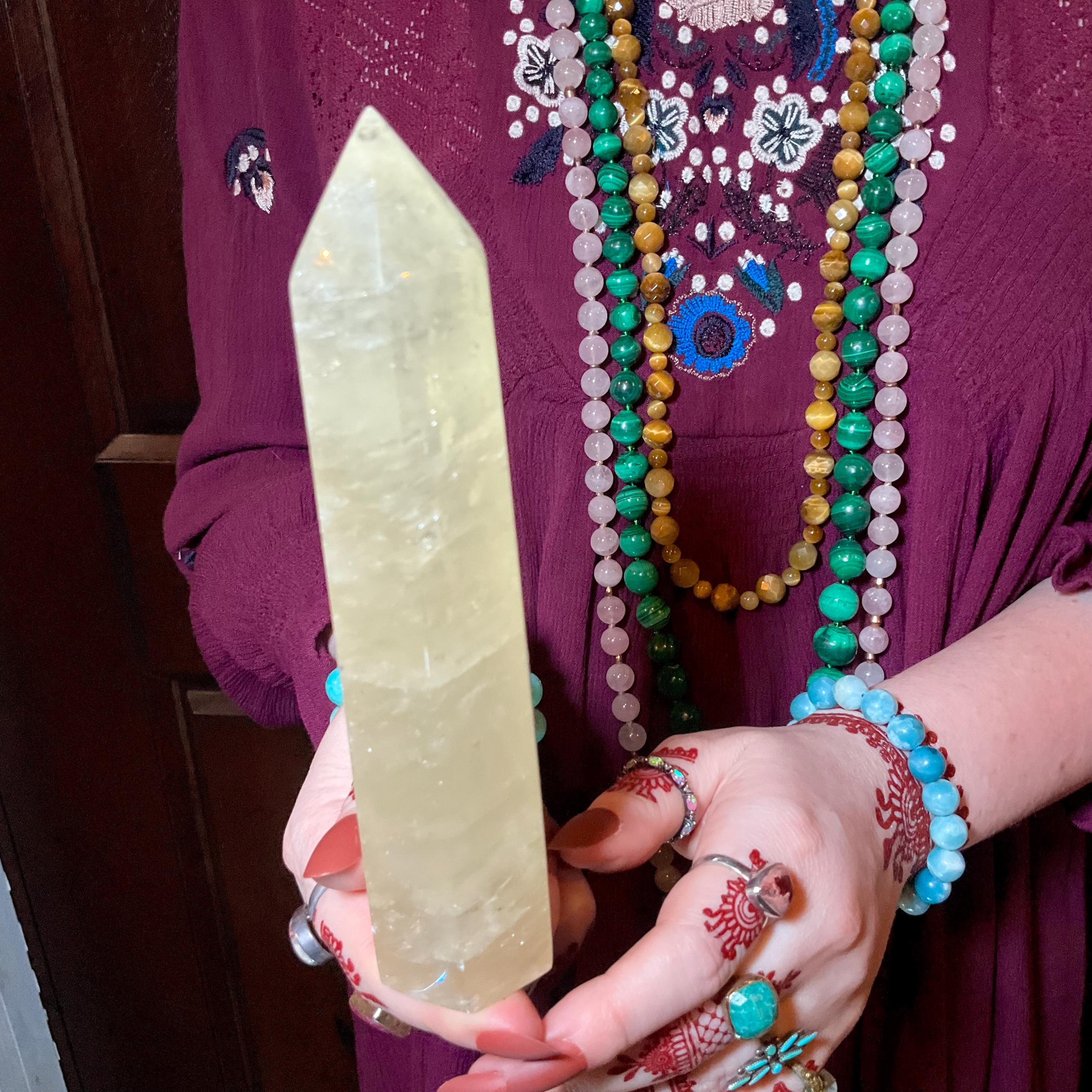 This Sunshine Yellow Golden Honey Calcite tower ~ is the perfect balance of energy.