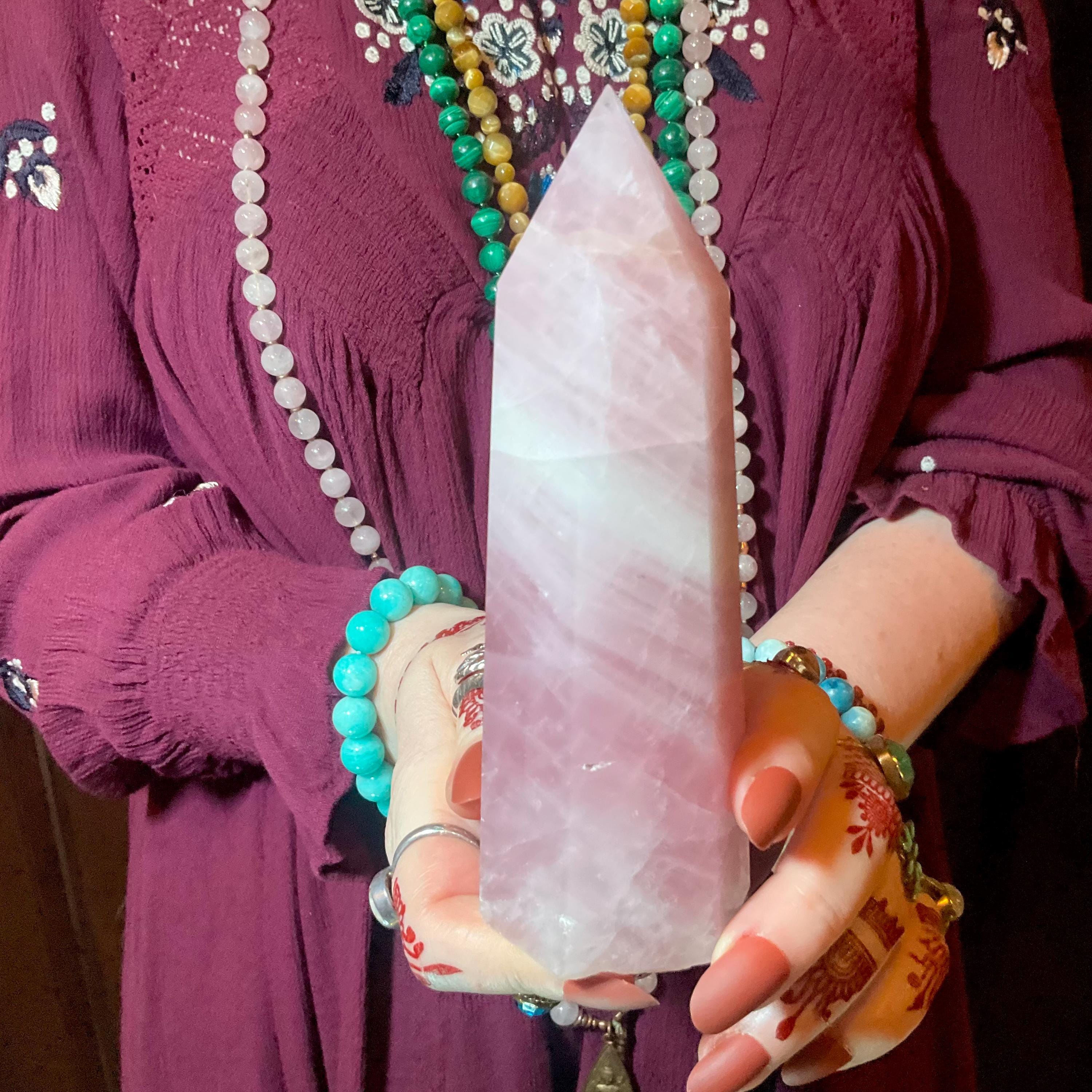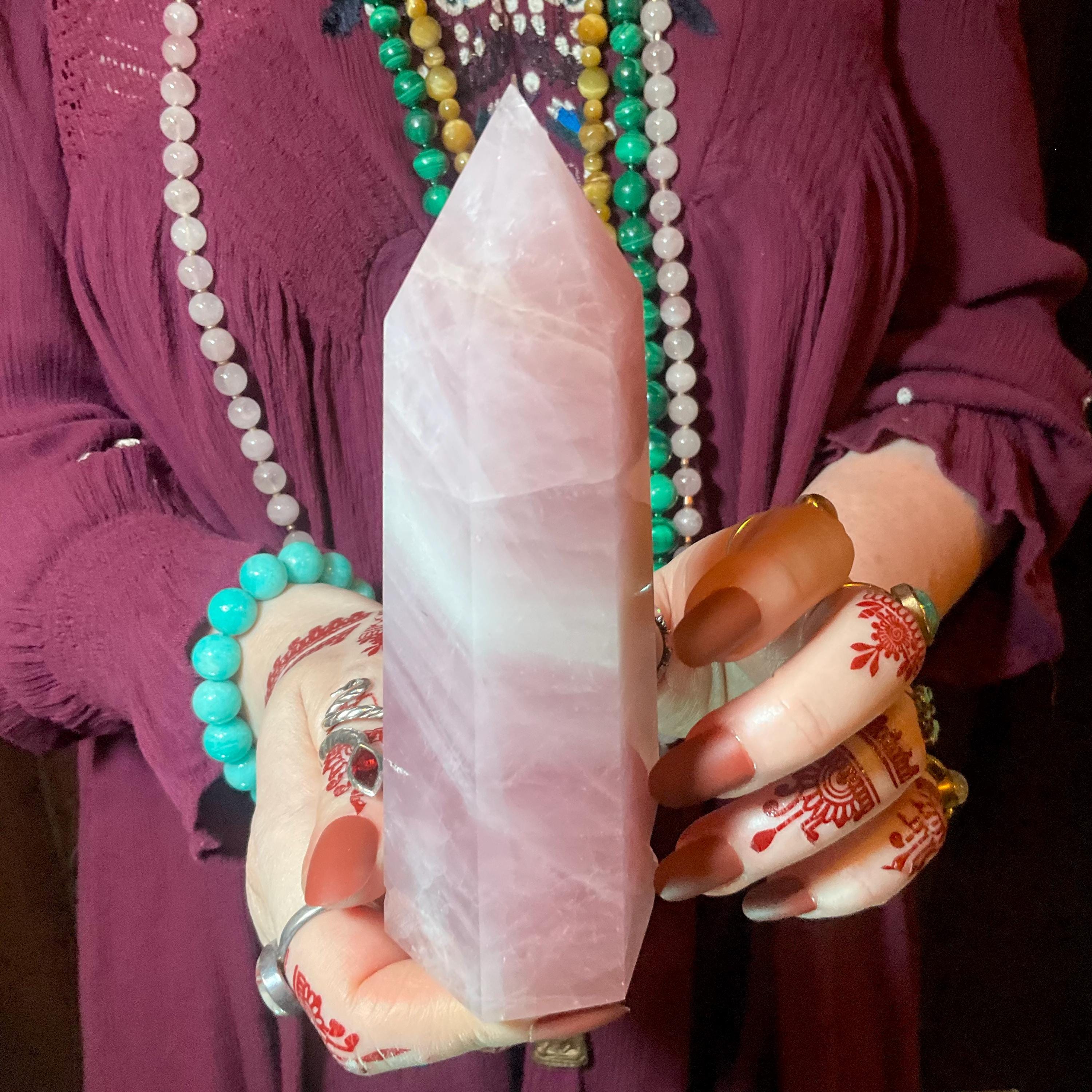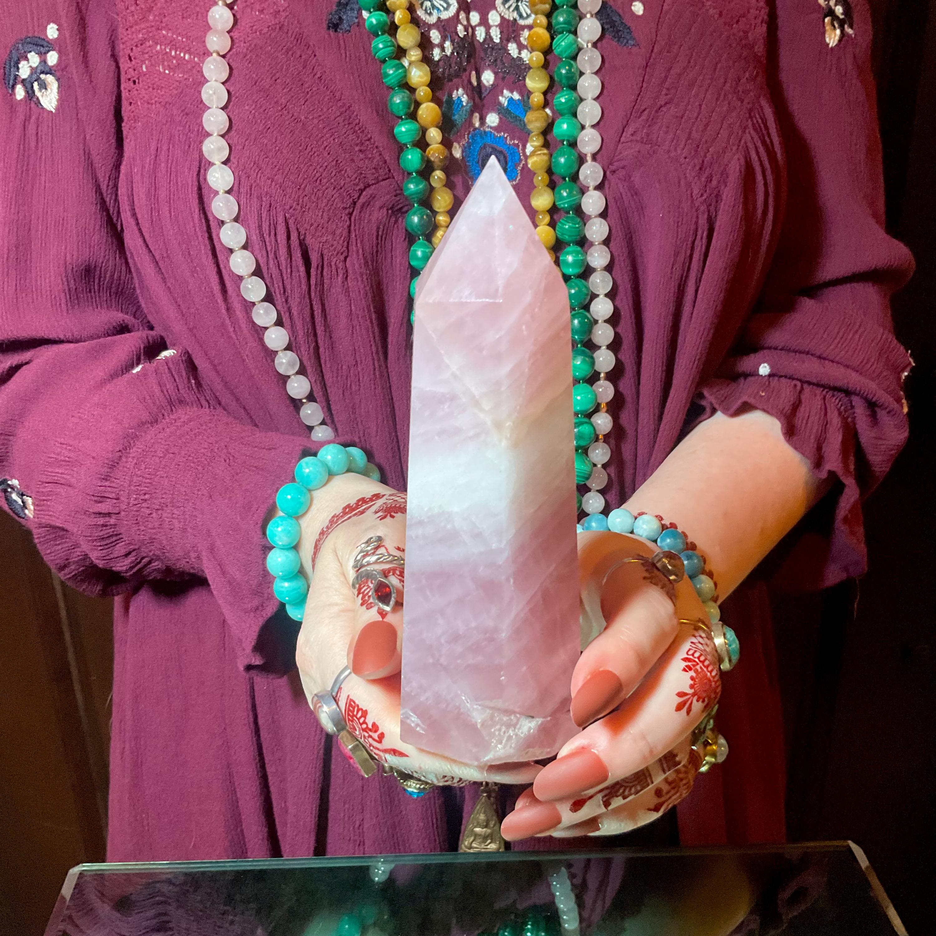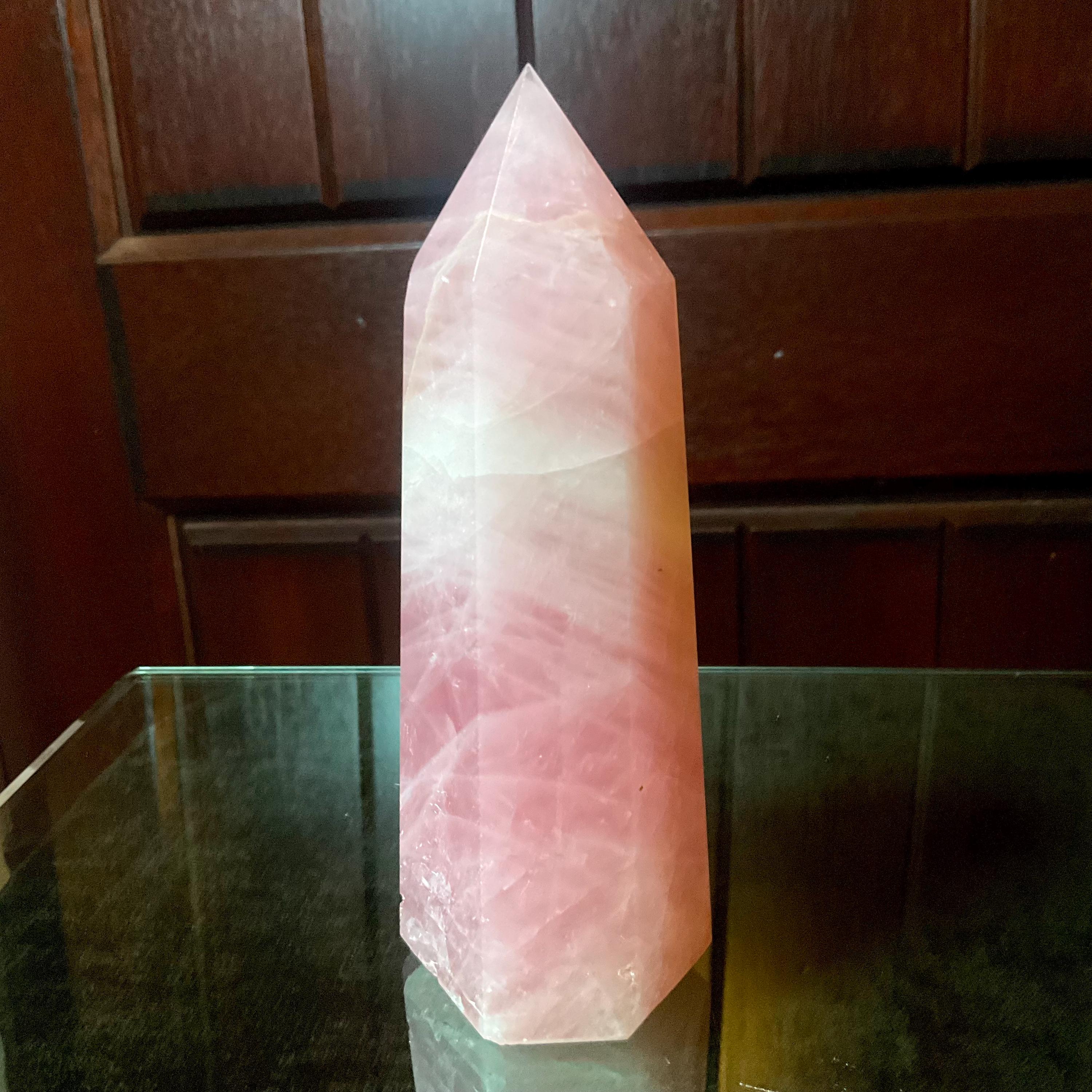 This is such a beautiful specimen of Rose Pink Quartz, polished into a large generator.