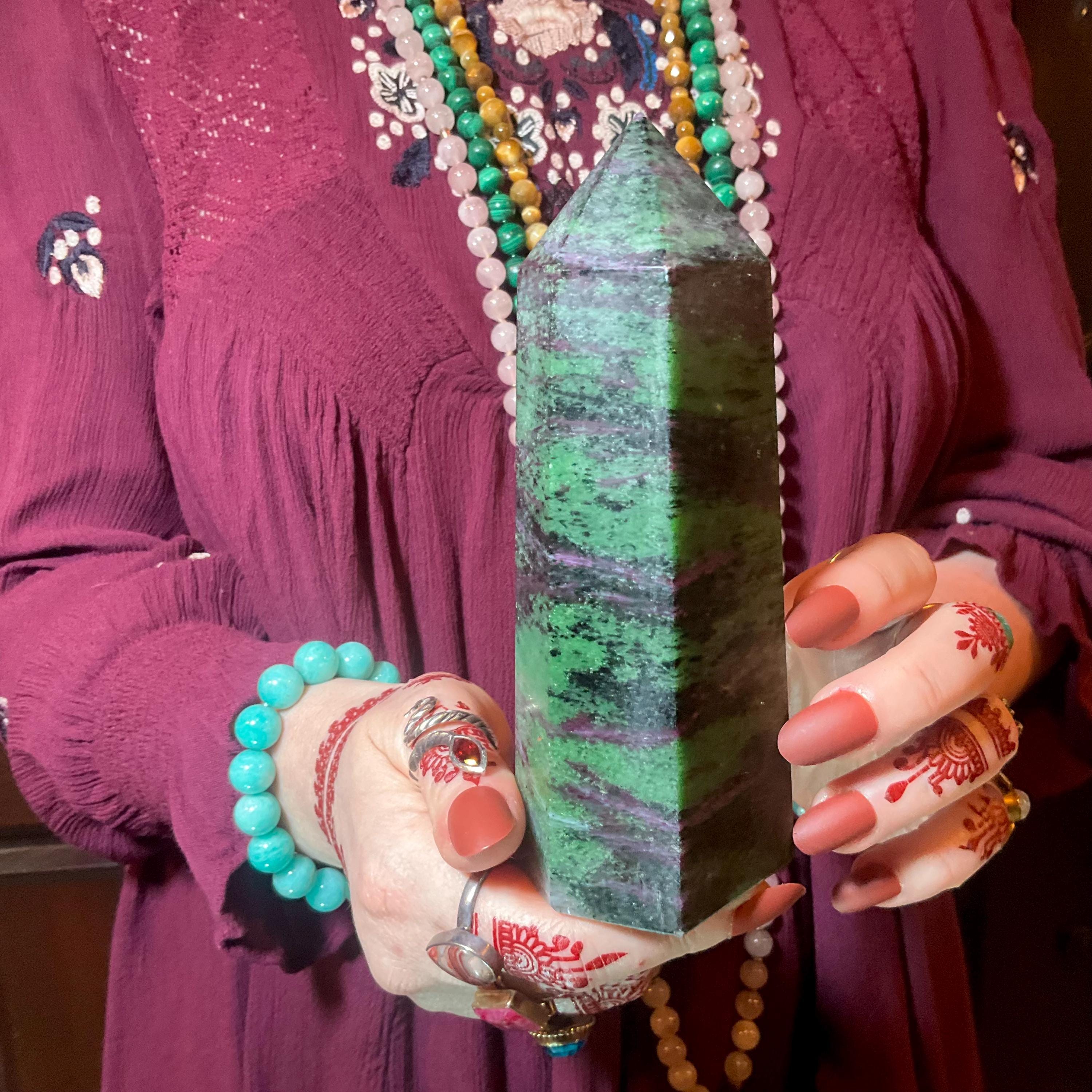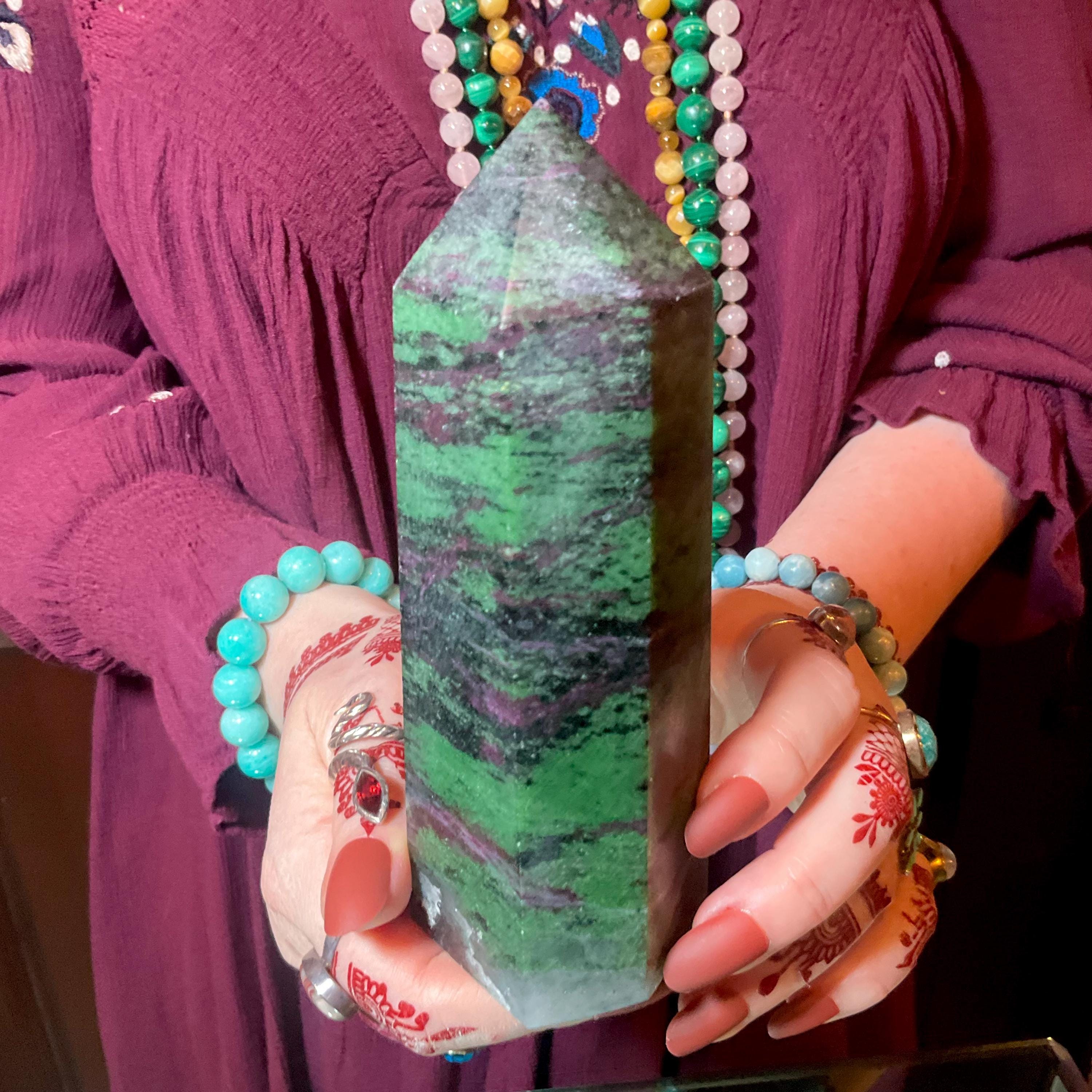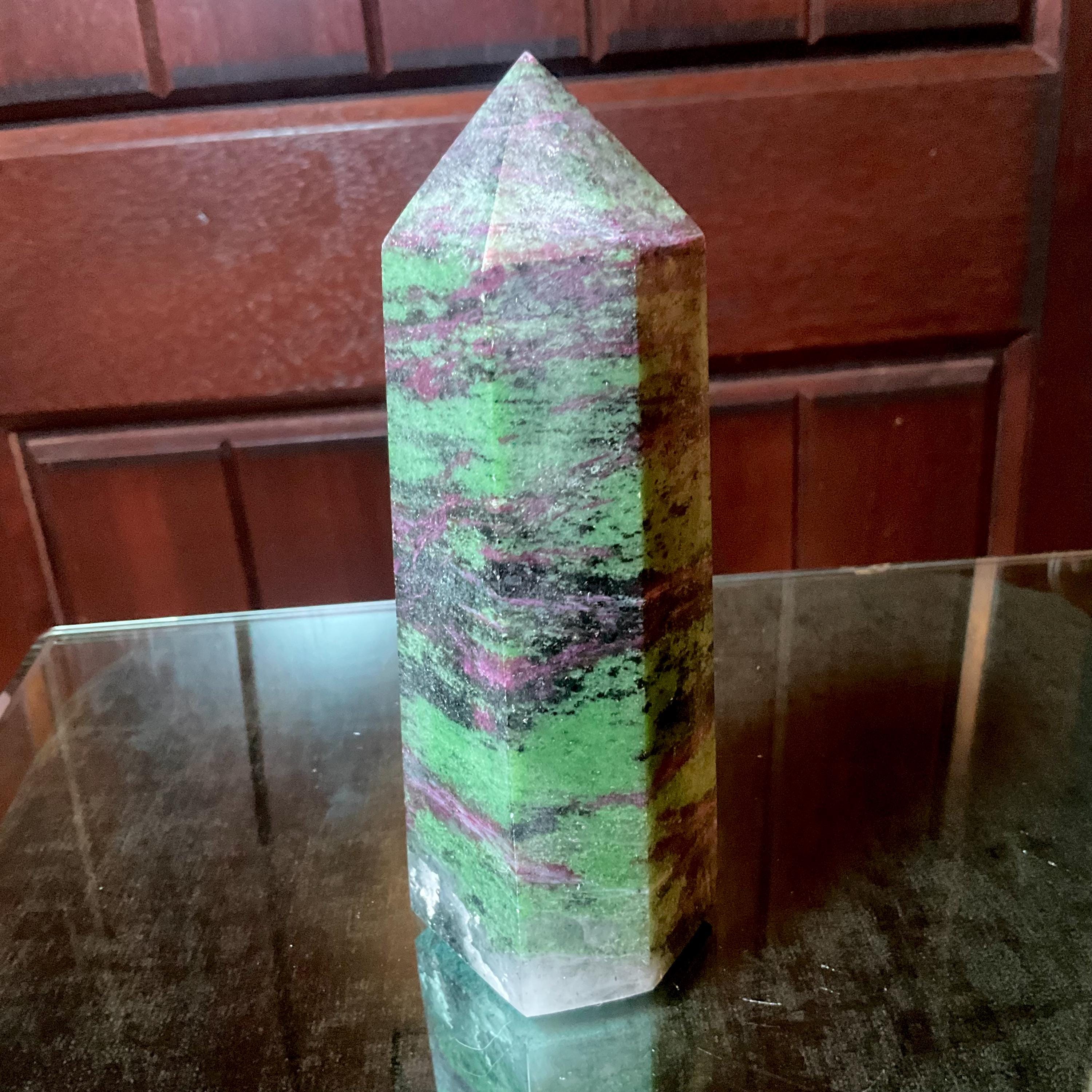 Ruby Zoisite Crystal Generator ~ 1 Lb. 7 oz. ~ 5 1/2" Tall ~ Red, Green & Black Vivid Colors ~ Metaphysical Home Decor ~ Fast, Free Shipping