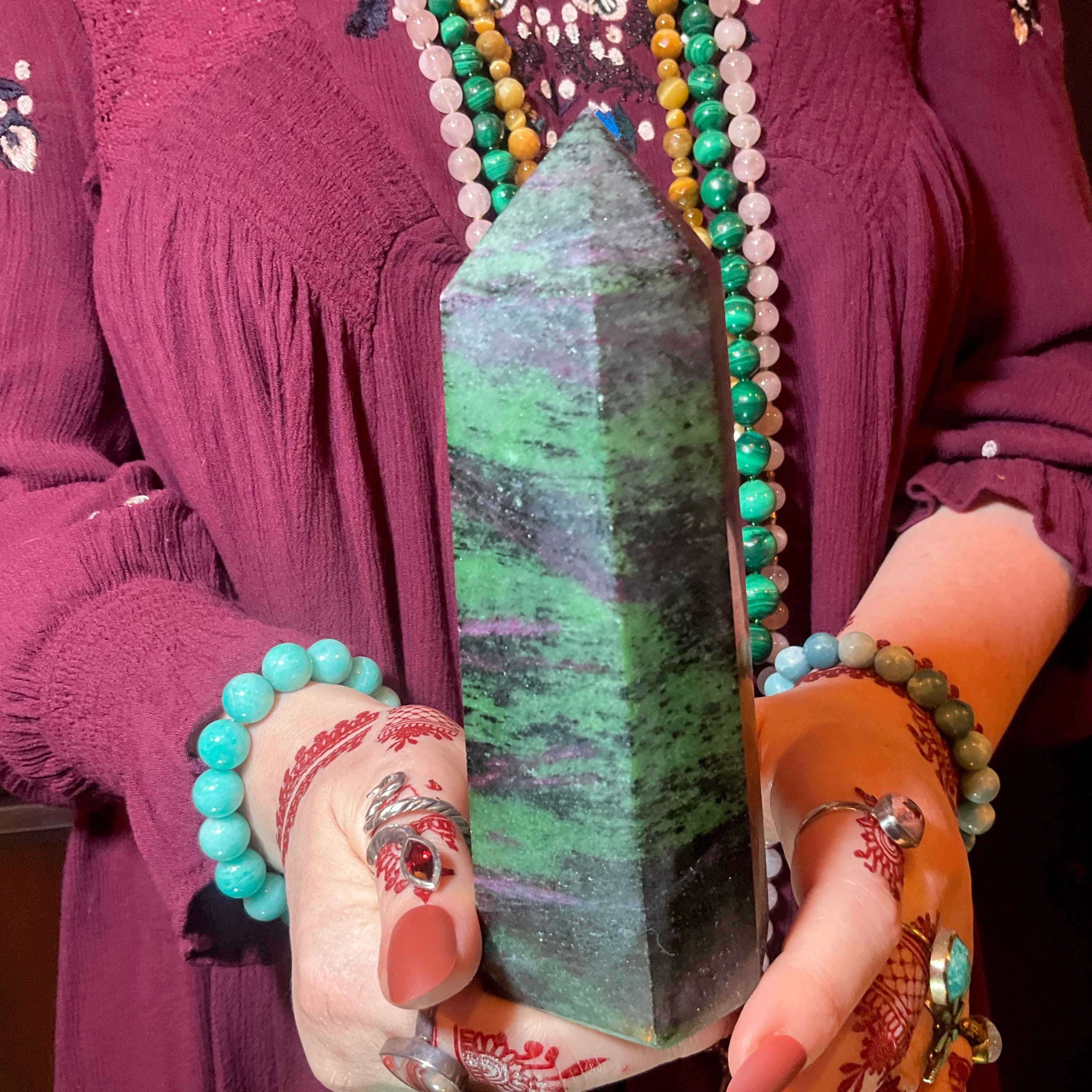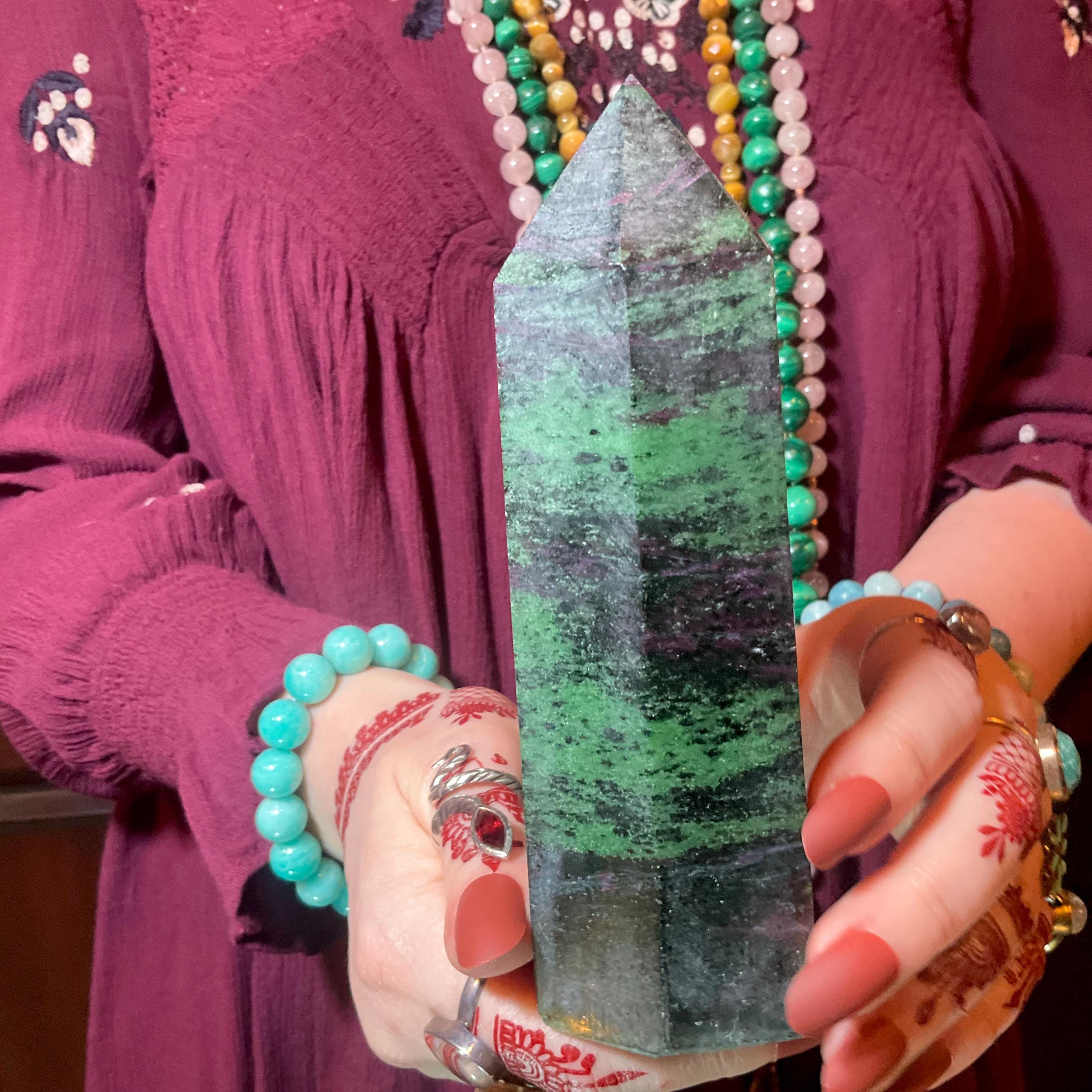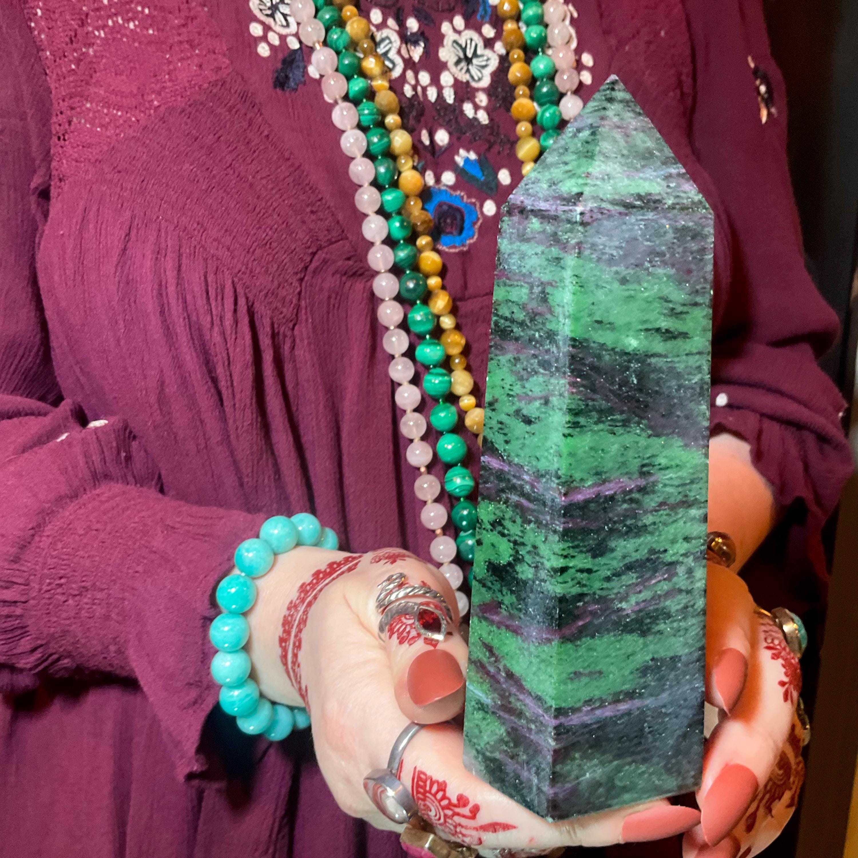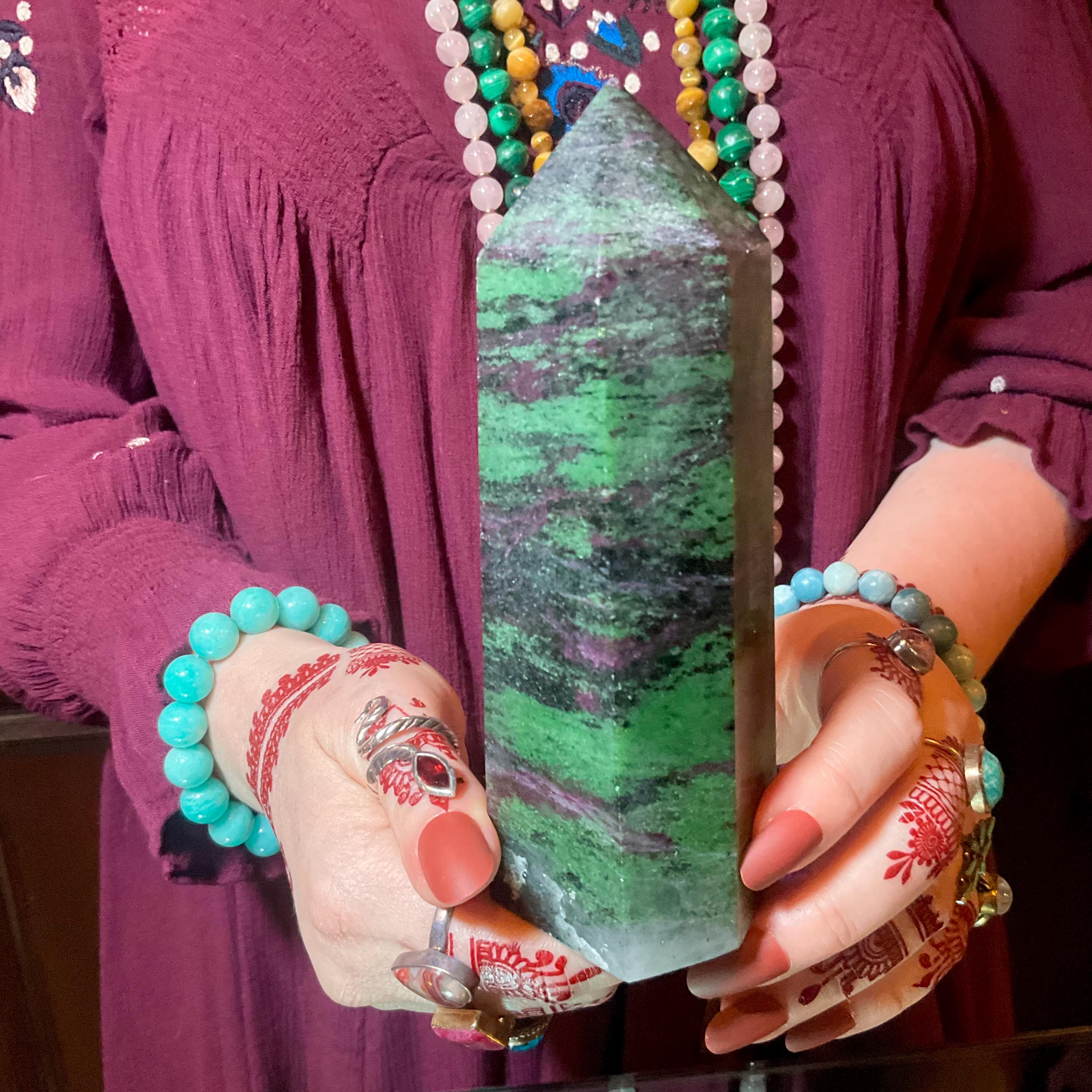 Ruby Zoisite Crystal Generator ~ 1 Lb. 7 oz. ~ 5 1/2" Tall ~ Red, Green & Black Vivid Colors ~ Metaphysical Home Decor ~ Fast, Free Shipping