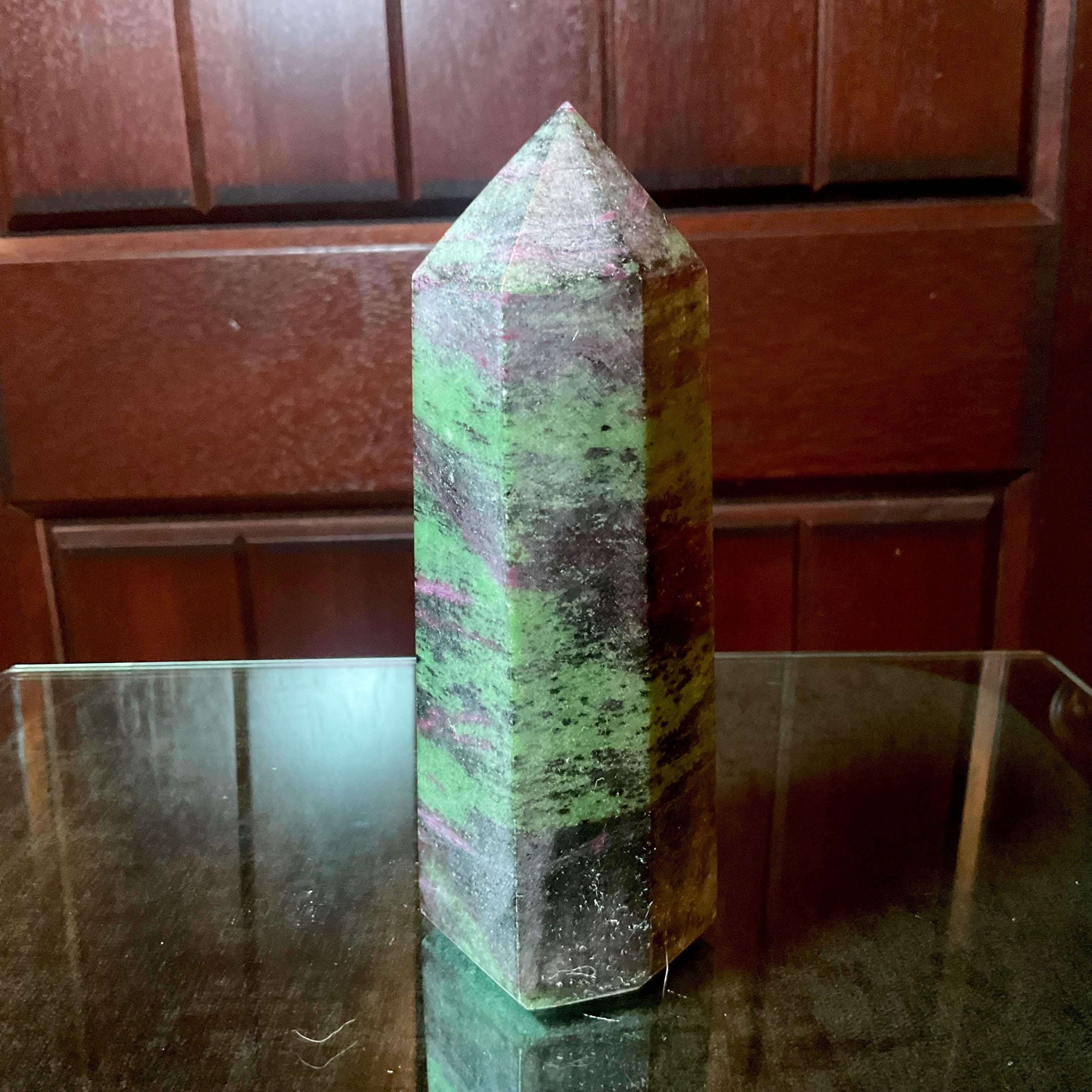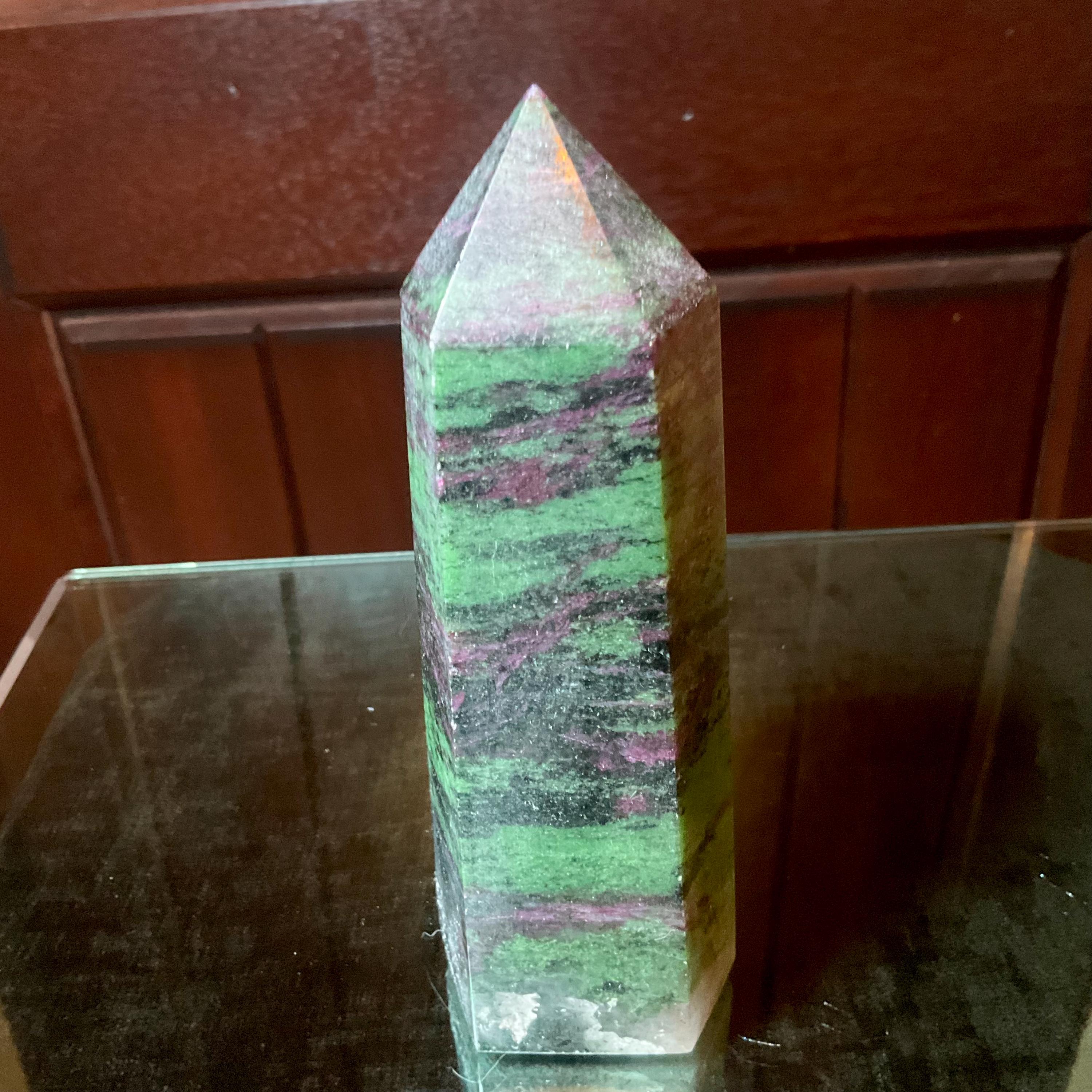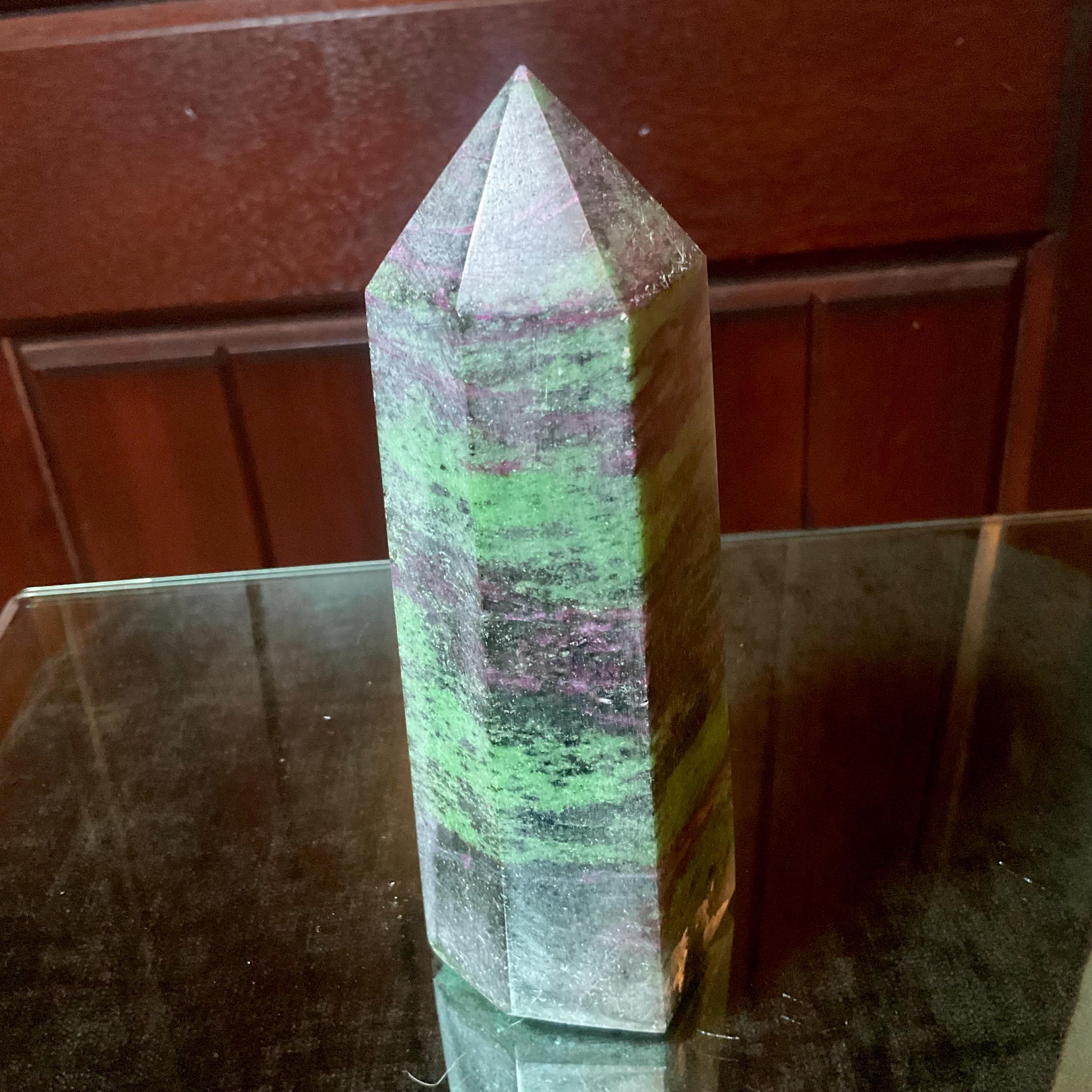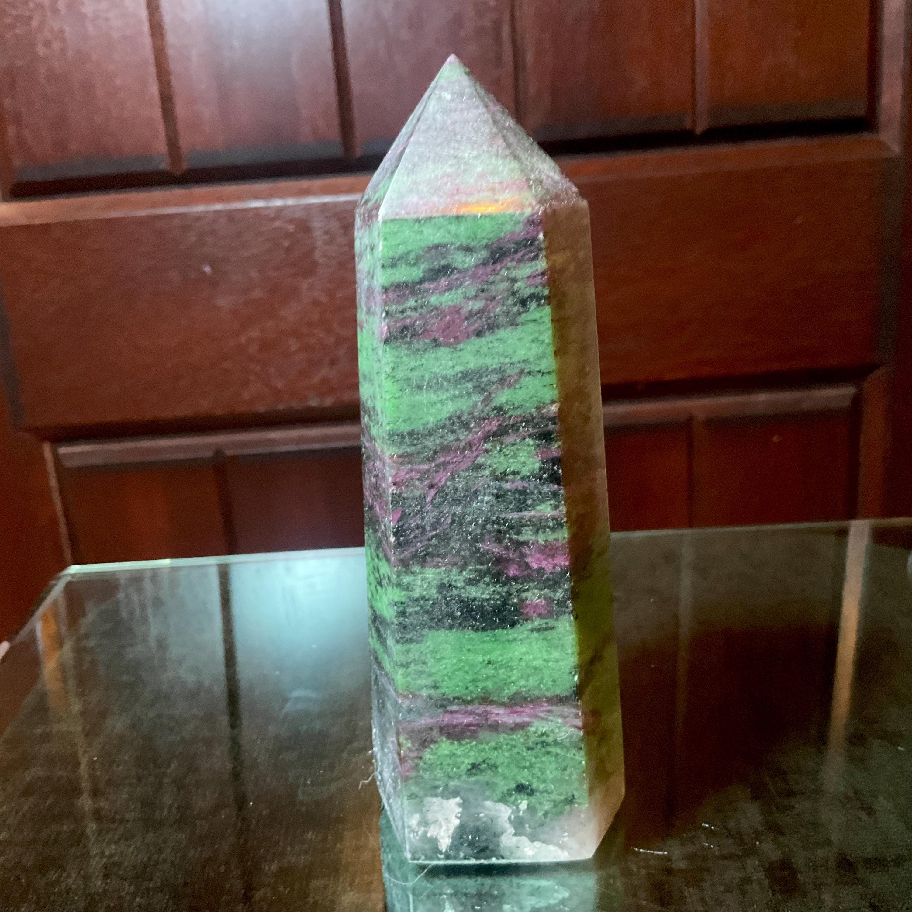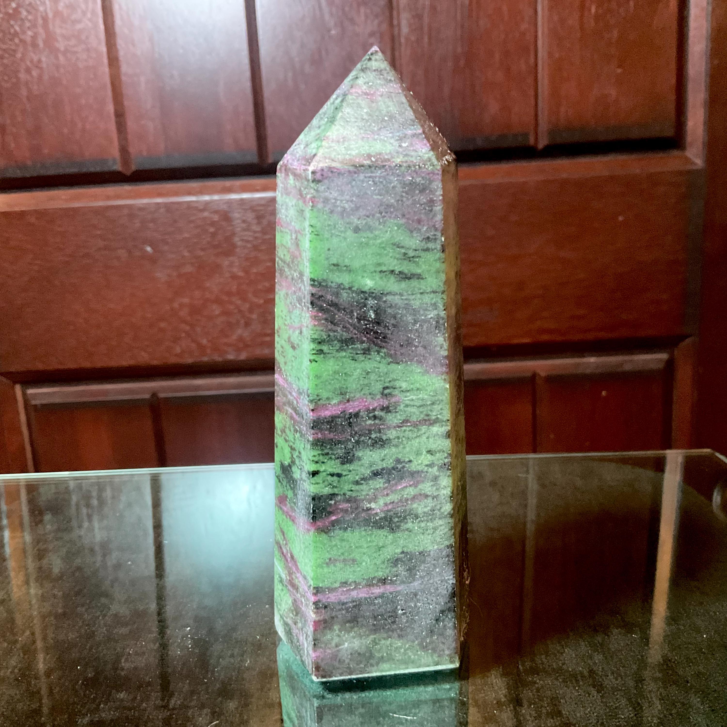 Polished to perfection, and unbelievable Patterns throughout ~ this Ruby Zoisite crystal tower is perfection, so interesting.
