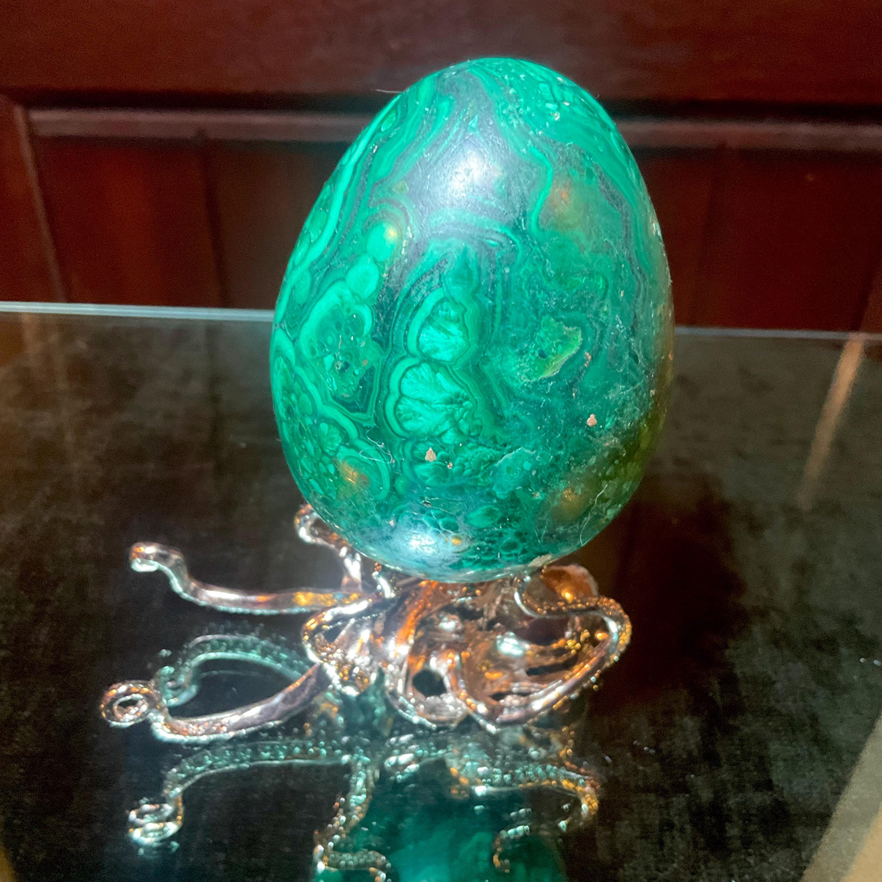 The Large Malachite egg measures 3 inches tall and 2 1/2 inches wide.