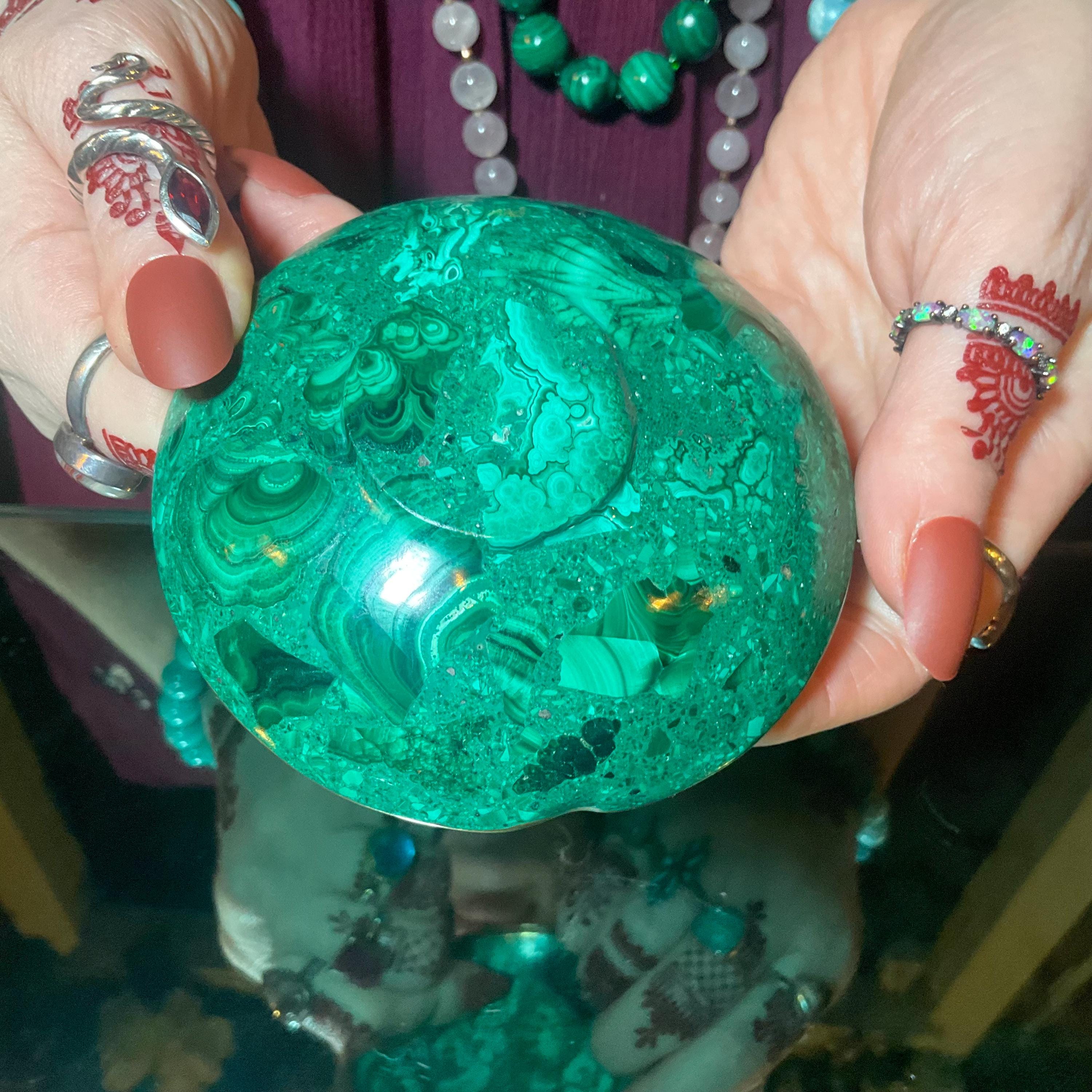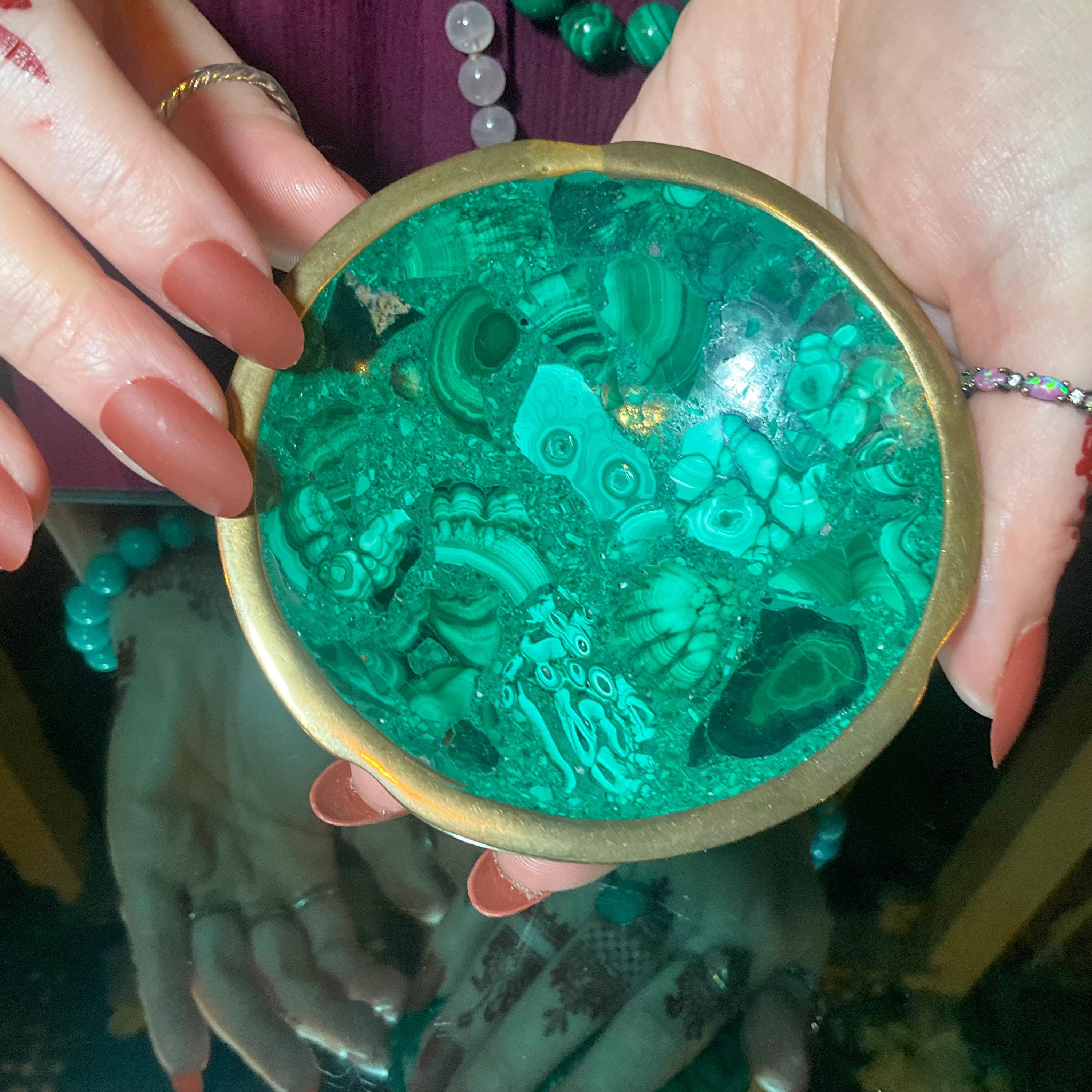 You will love this one-of-a-kind Malachite bowl; it is a beauty to behold.