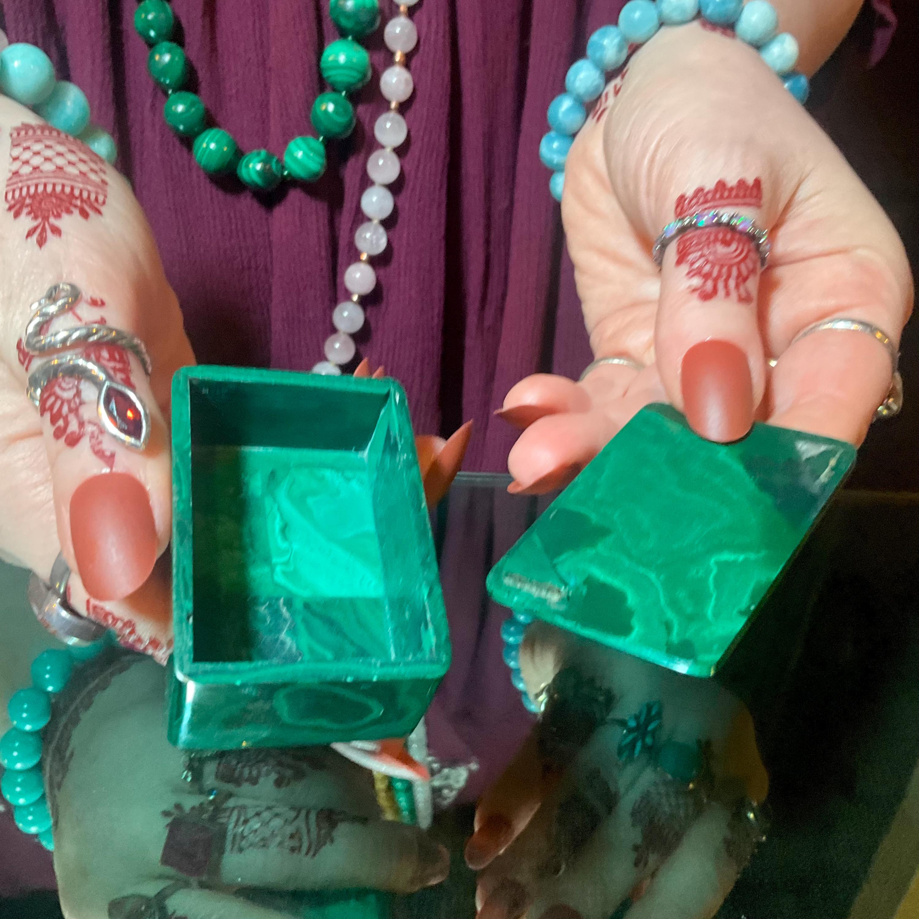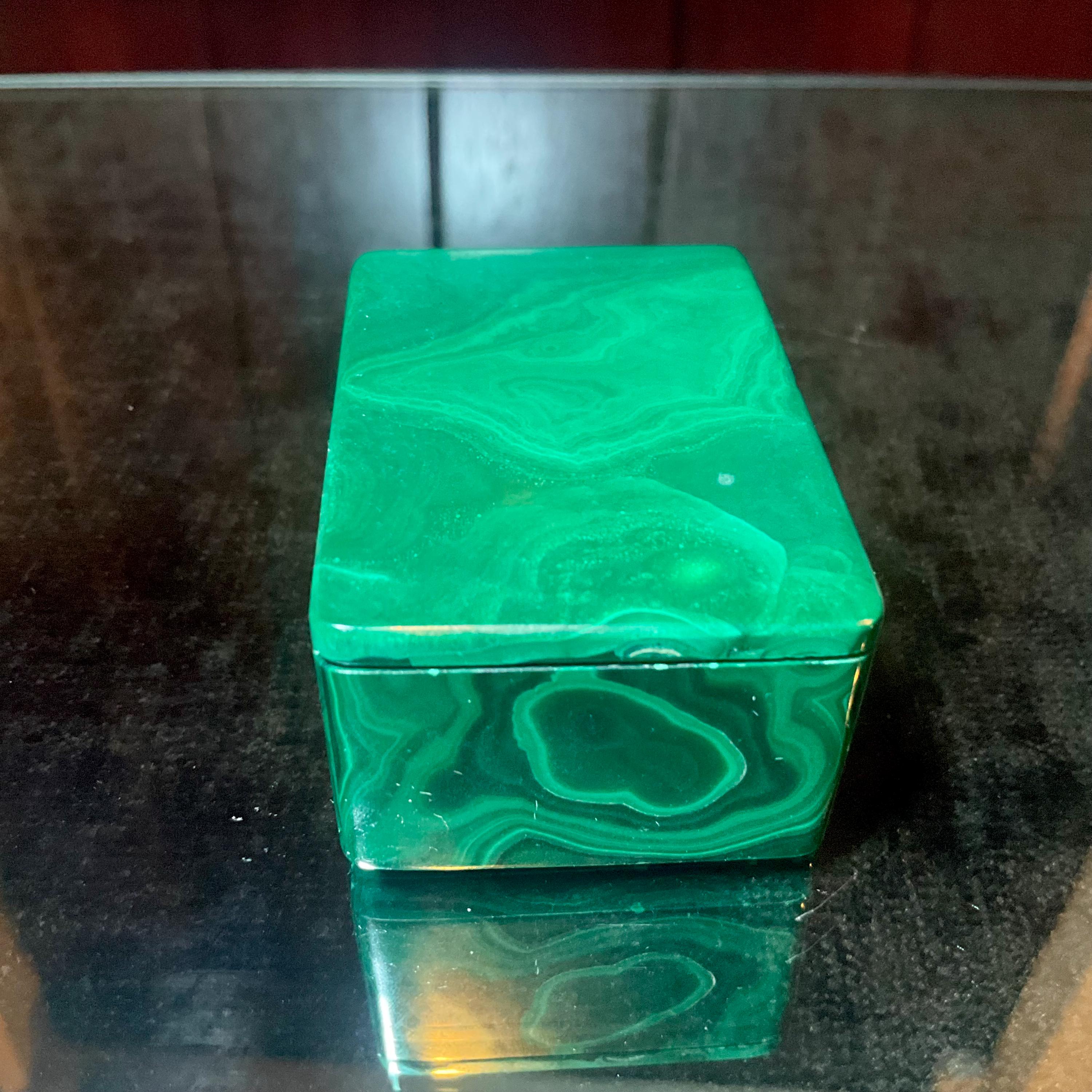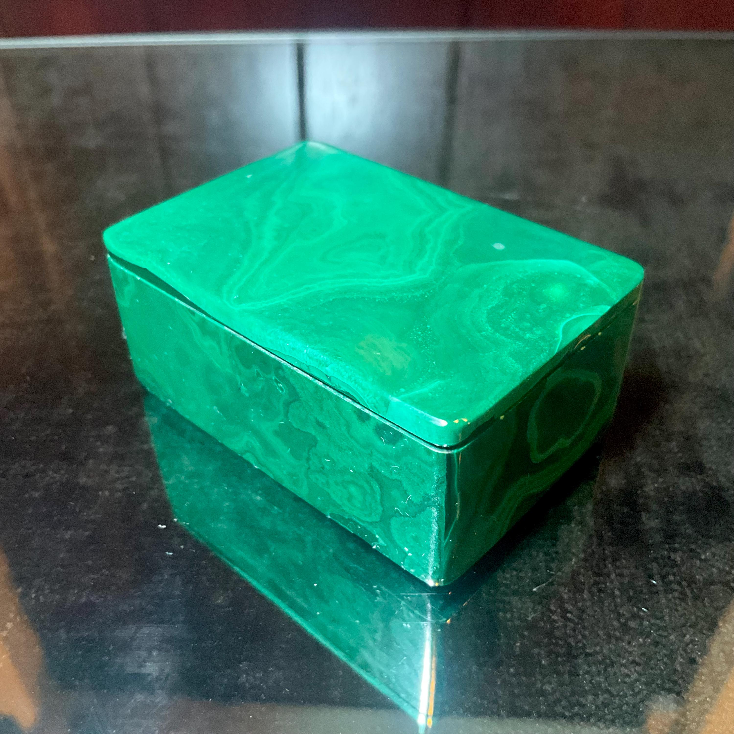 This is a one-of-a-kind carved Malachite Jewelry Box, or it can be used as a ring box.