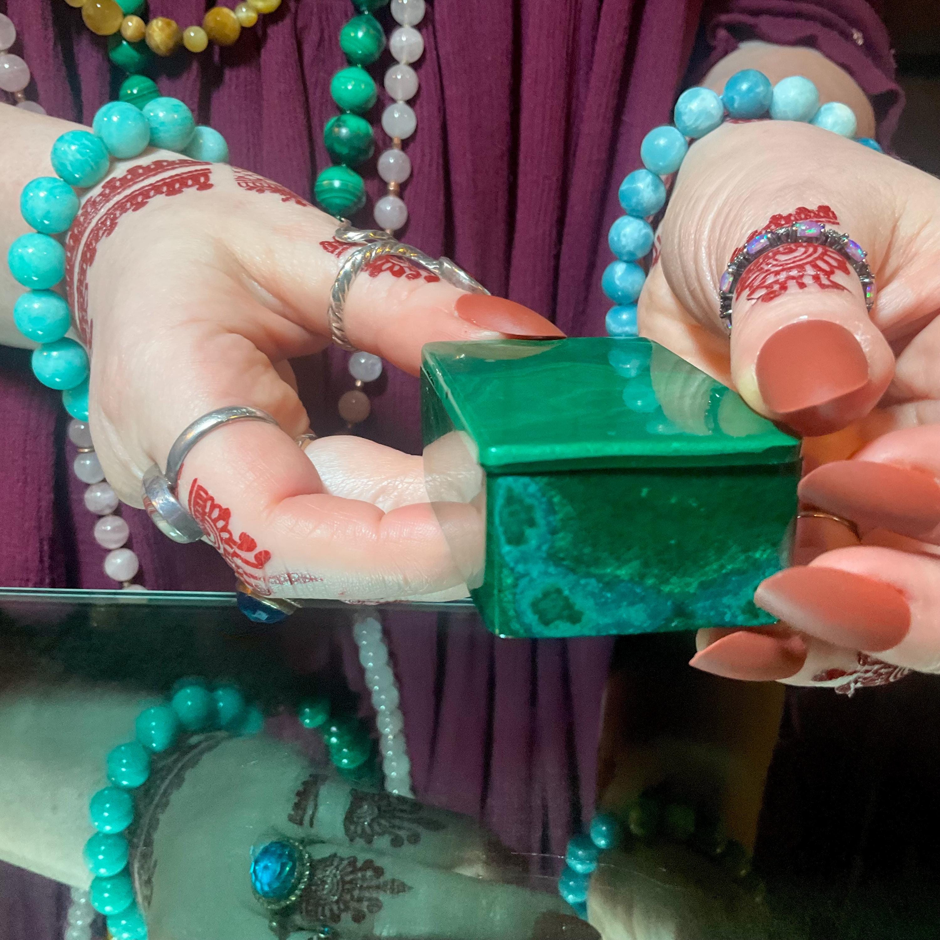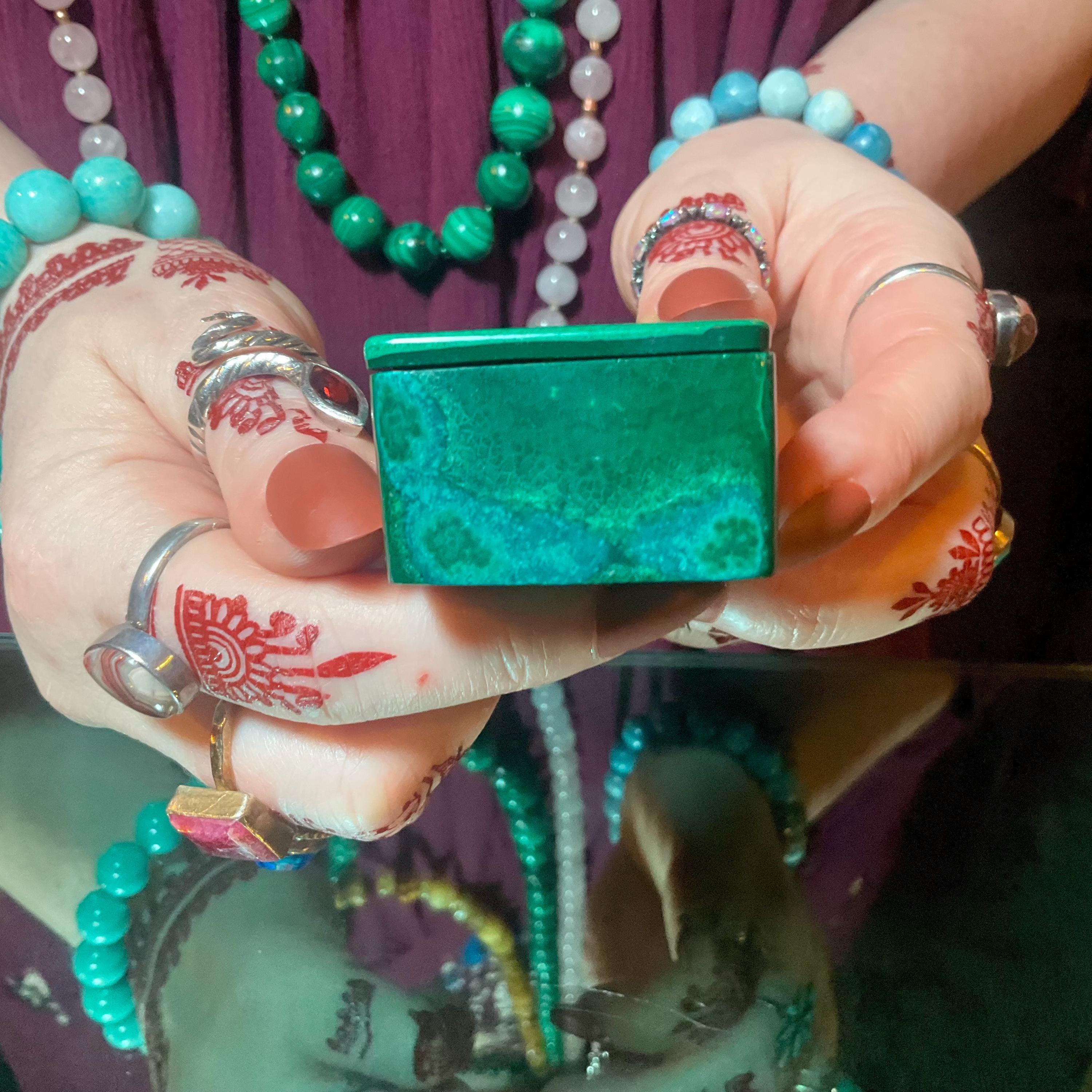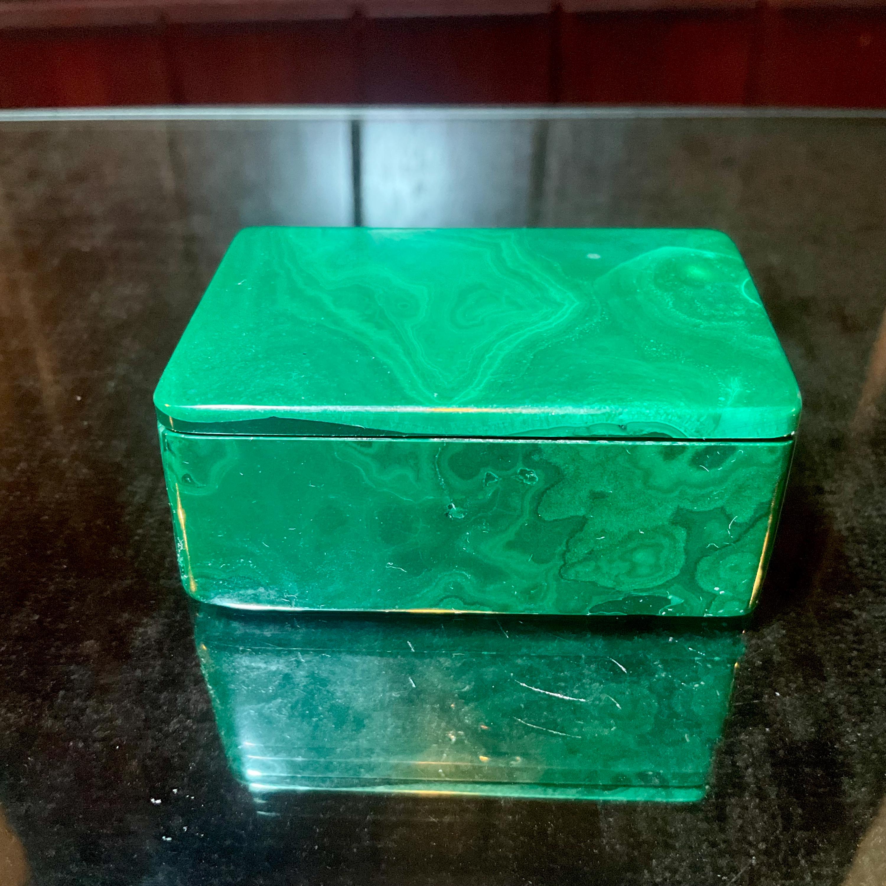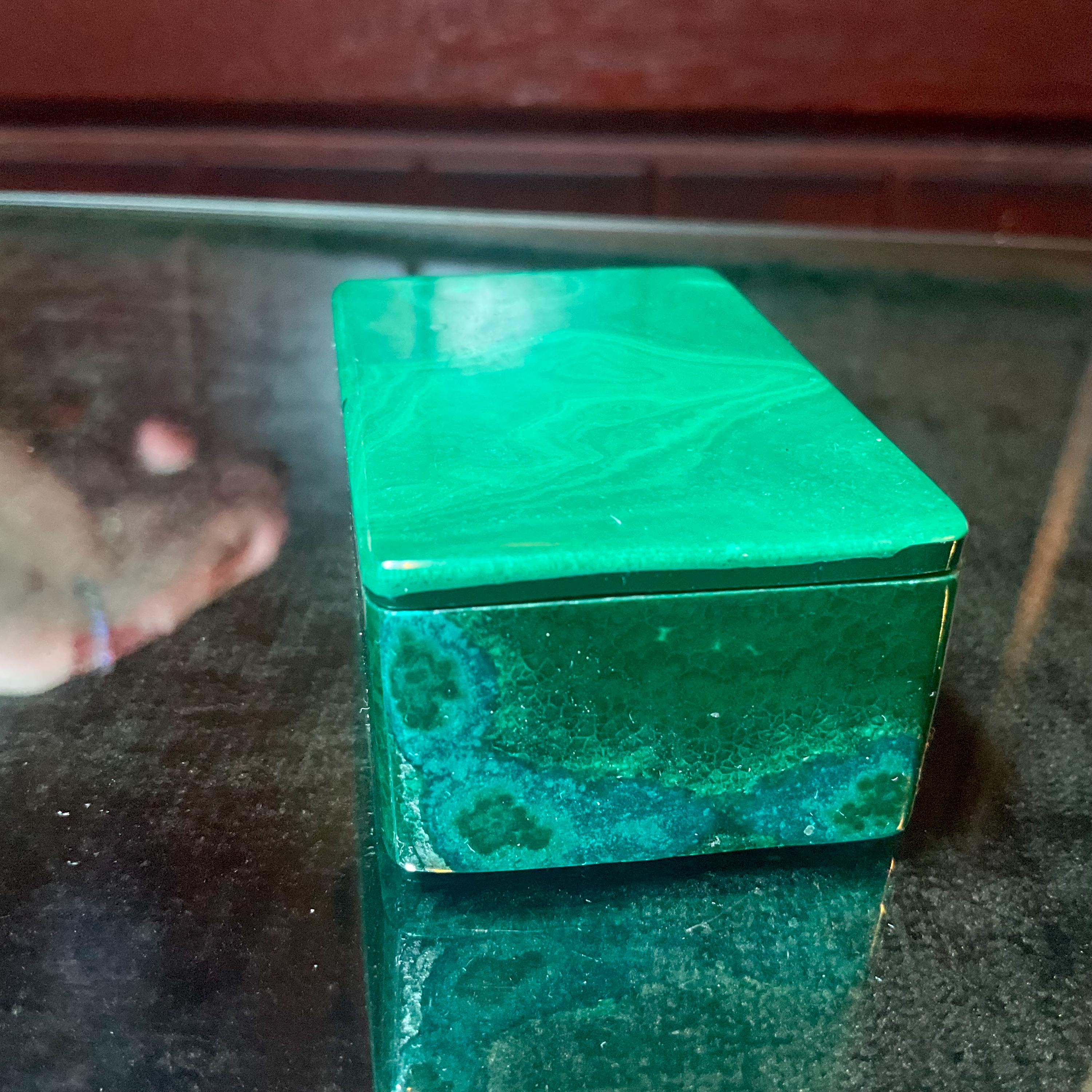 This is a one-of-a-kind carved Malachite Jewelry Box, or it can be used as a ring box.
