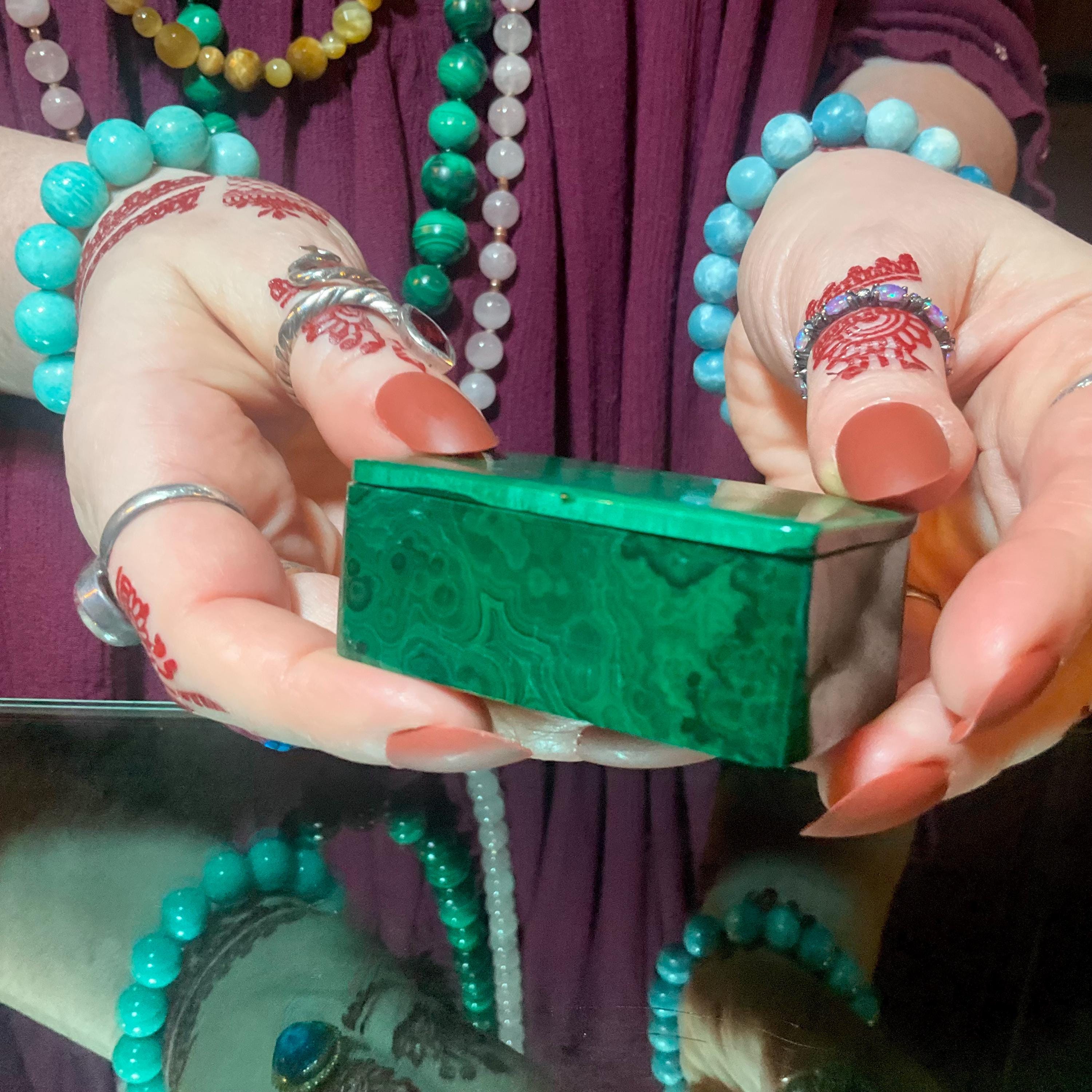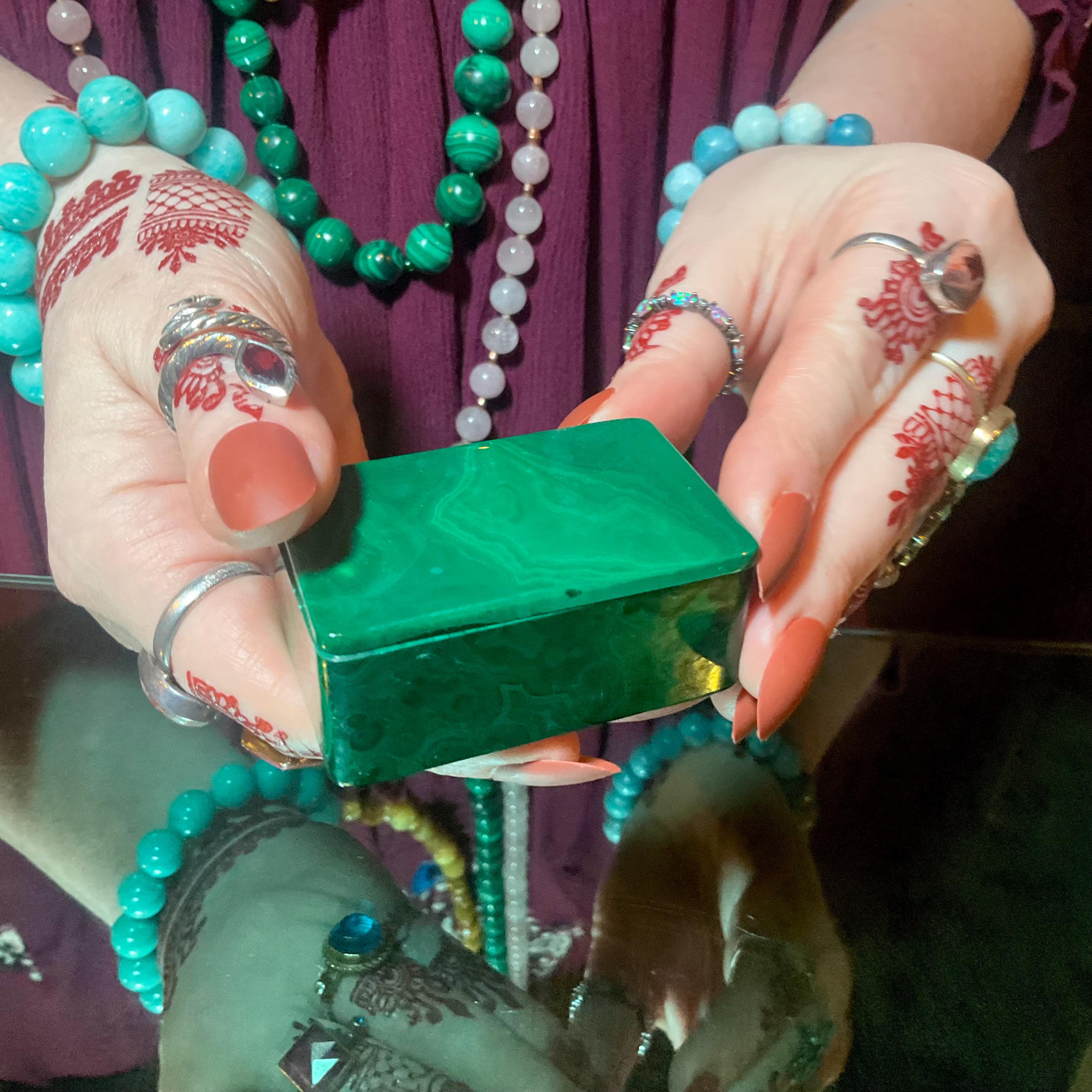 If you love vintage hand carved Malachite, then this beautiful Jewelry Box is for you.