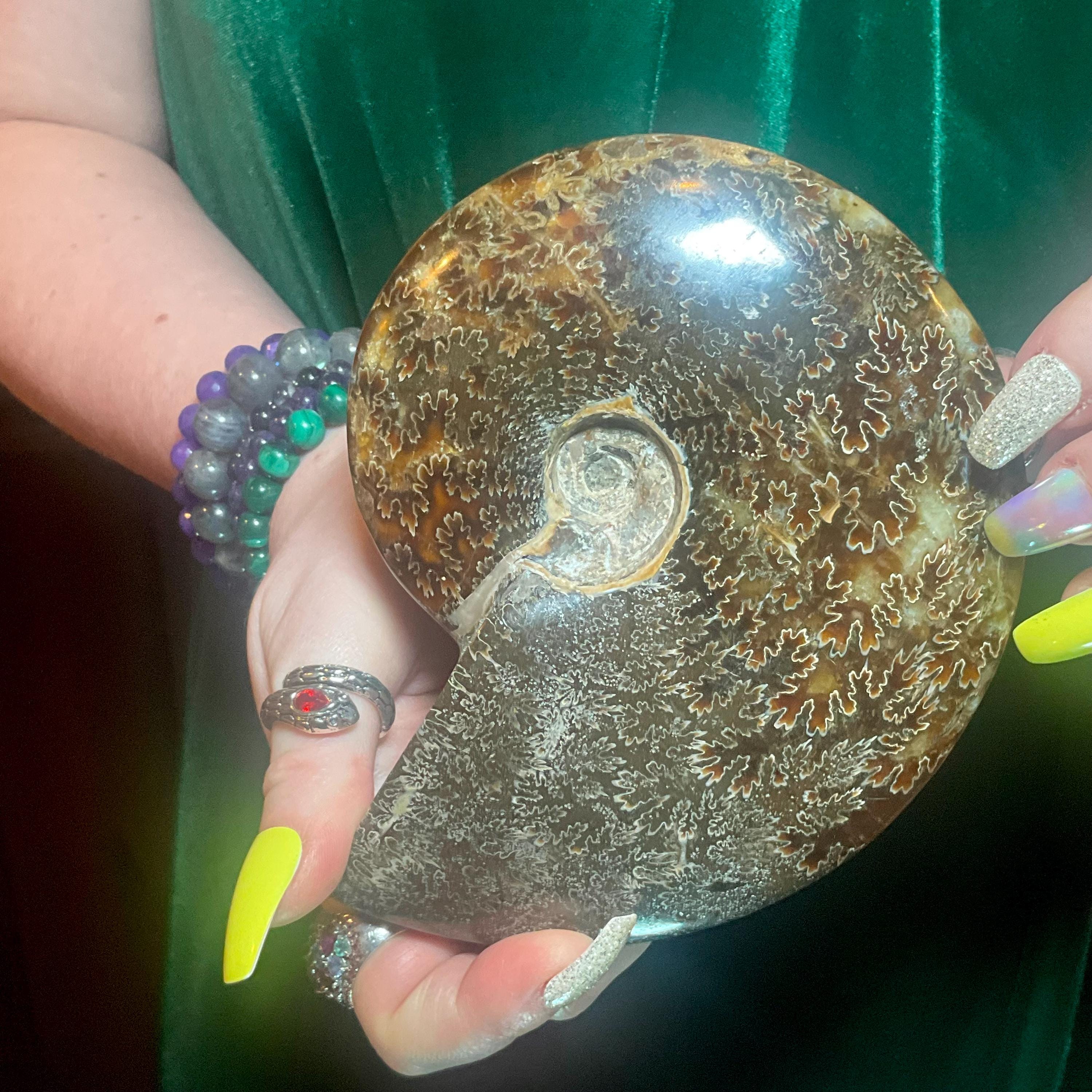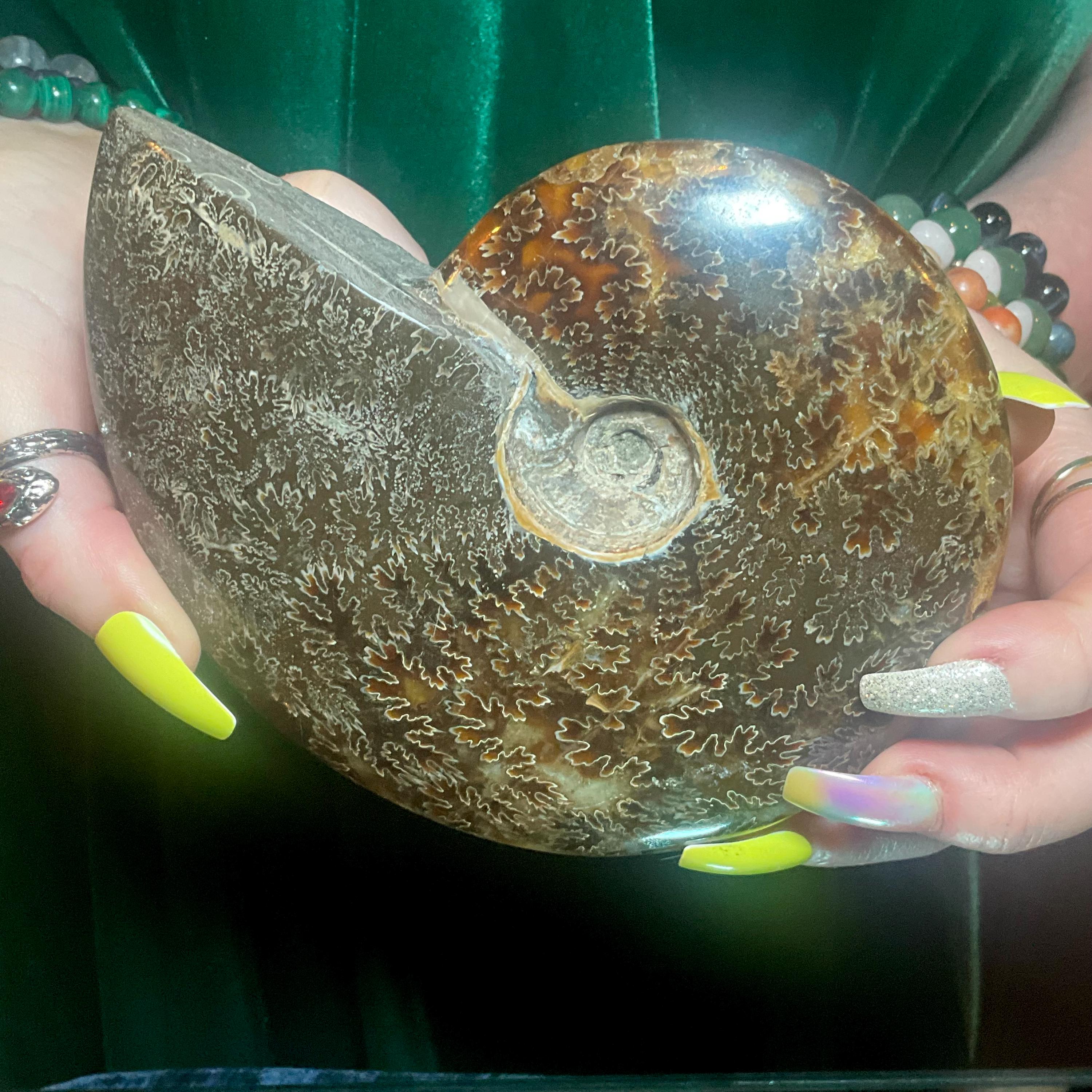 Large Ammonite Fossil Polished Cluster ~ 1Lb. 6 oz. ~ 6" Long ~ 65 million Years Old ~ Stunning Metaphysical Home Decor ~ Altar Display ~