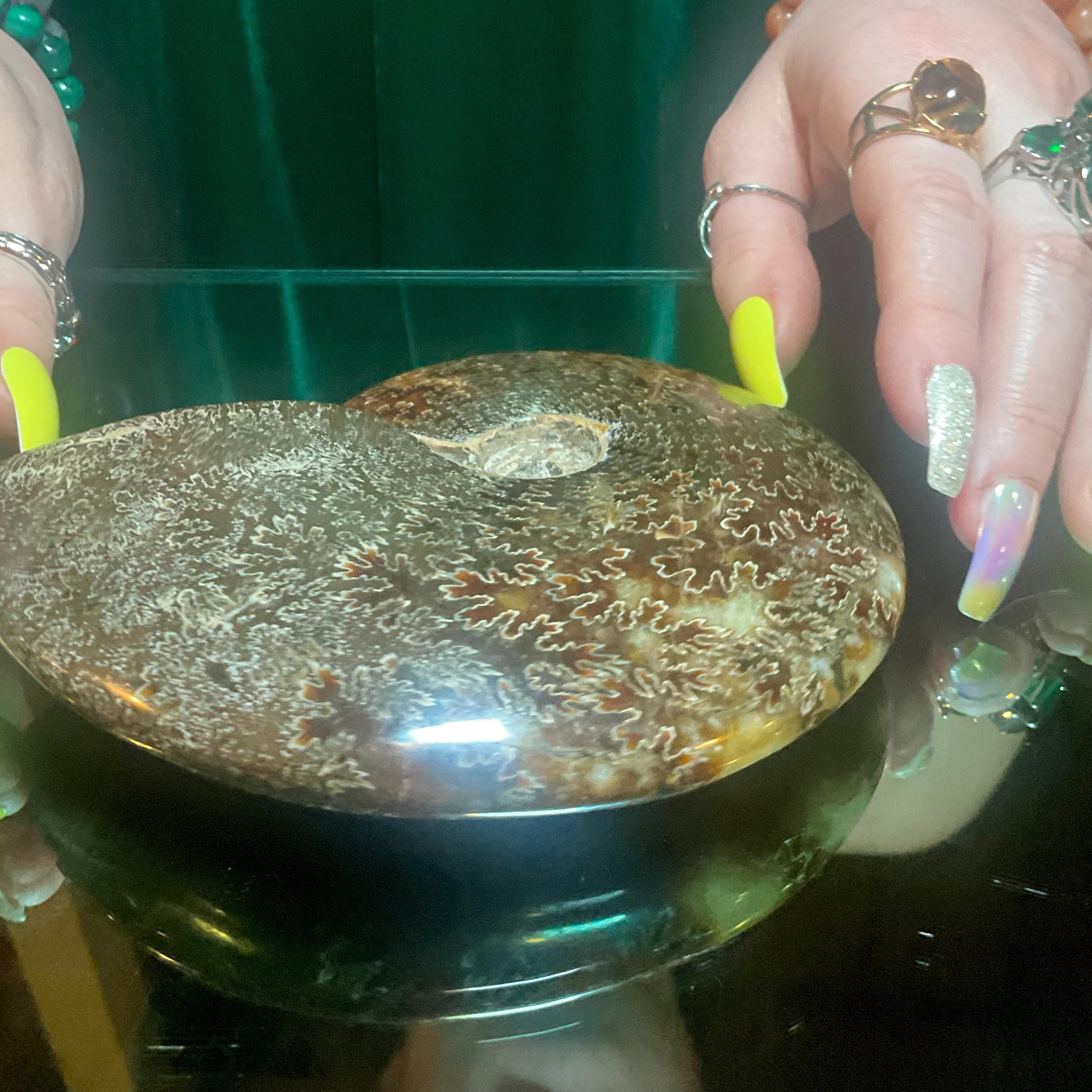 I just love this slab it is truly a one of a kind the color, the size of the Ammonites shells and the way it displays makes this a very special and one that would be a great addition to your collection.