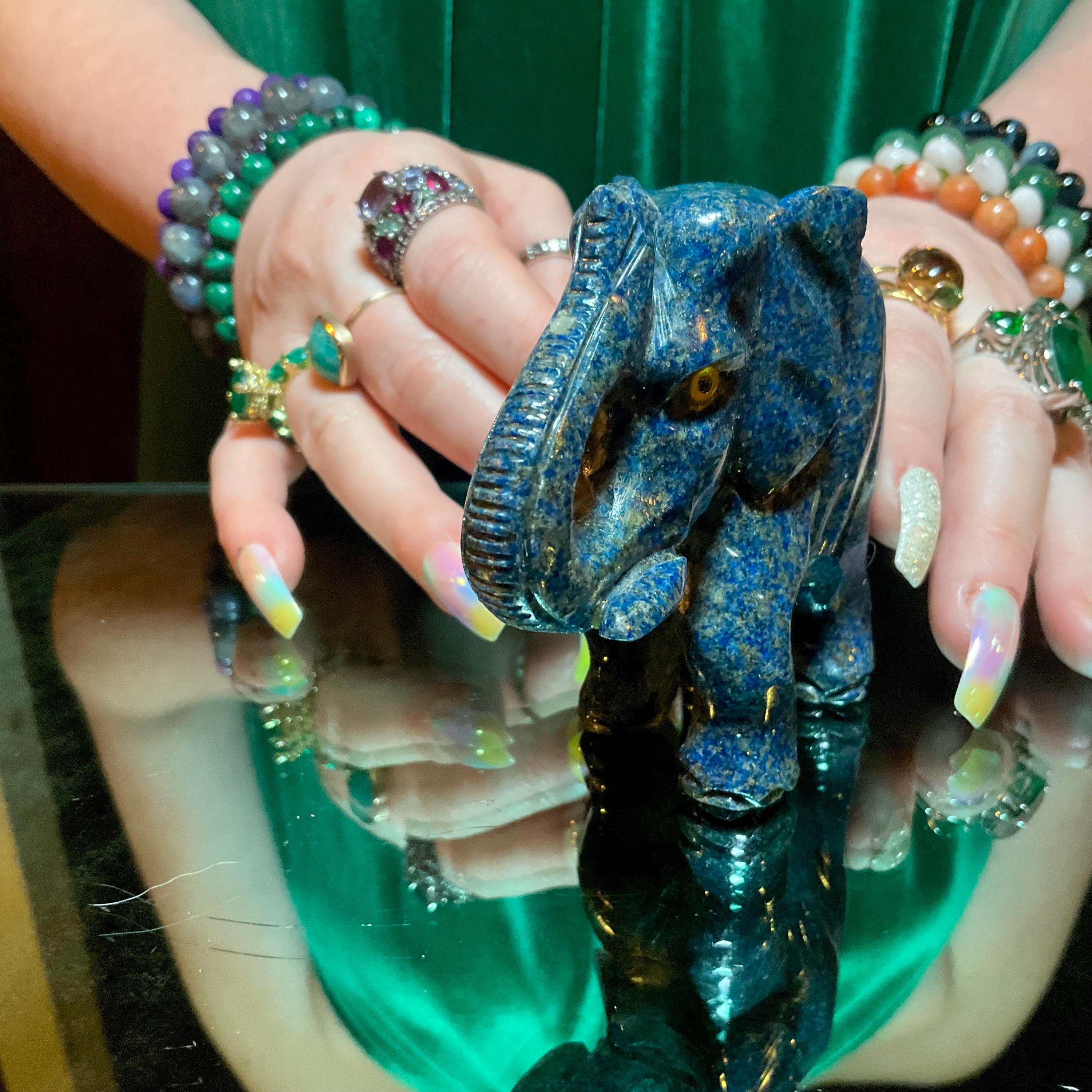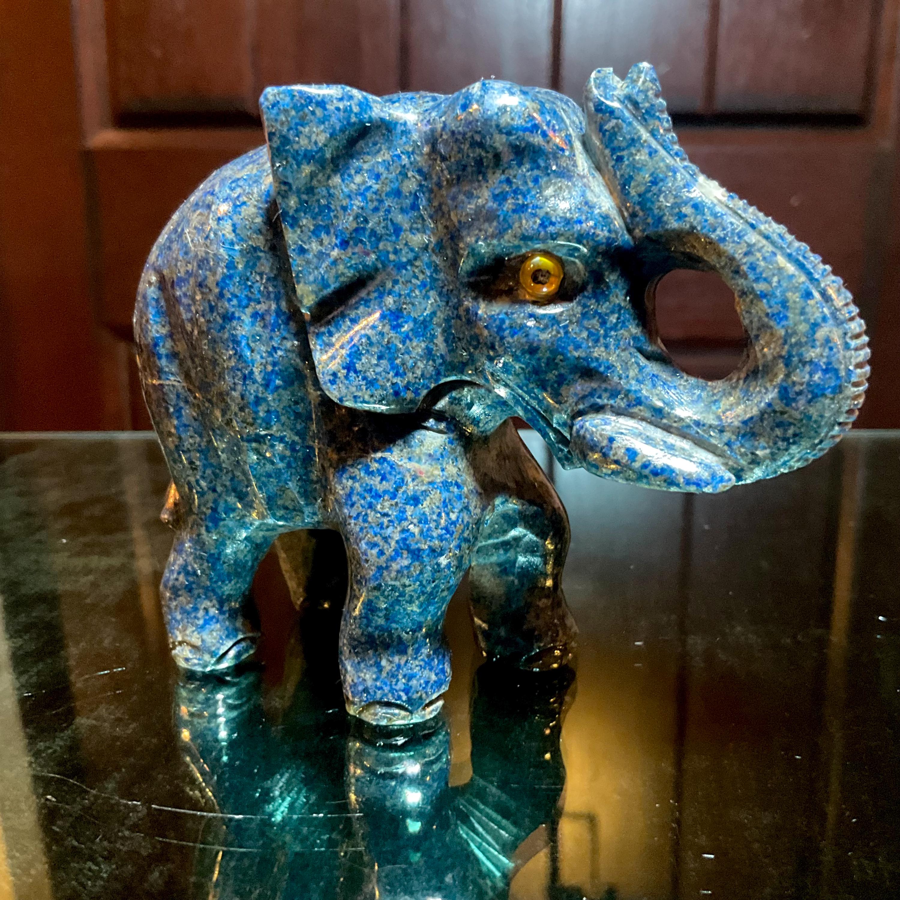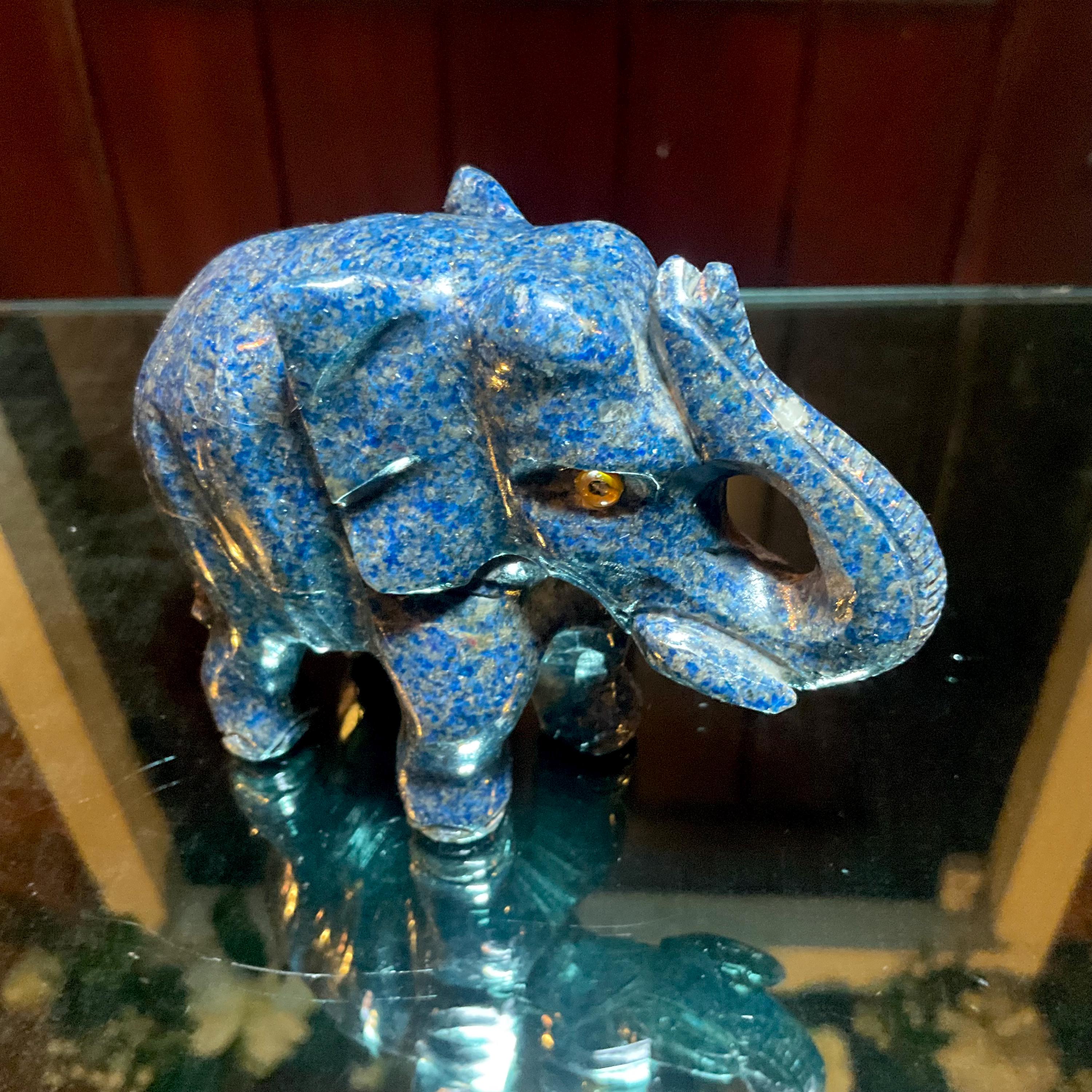 This is a one-of-a-kind carved Lapis Lazuli Crystal Elephant.