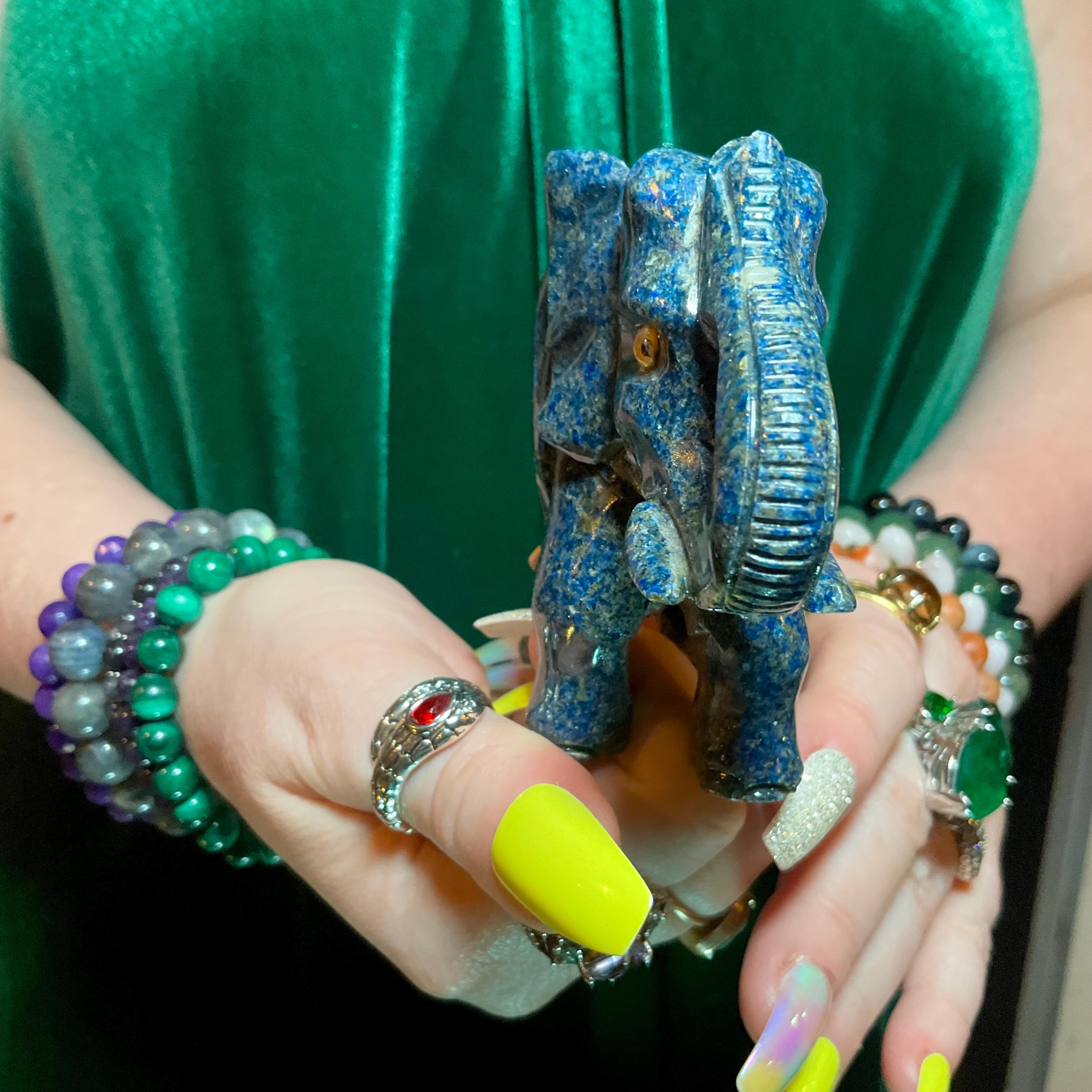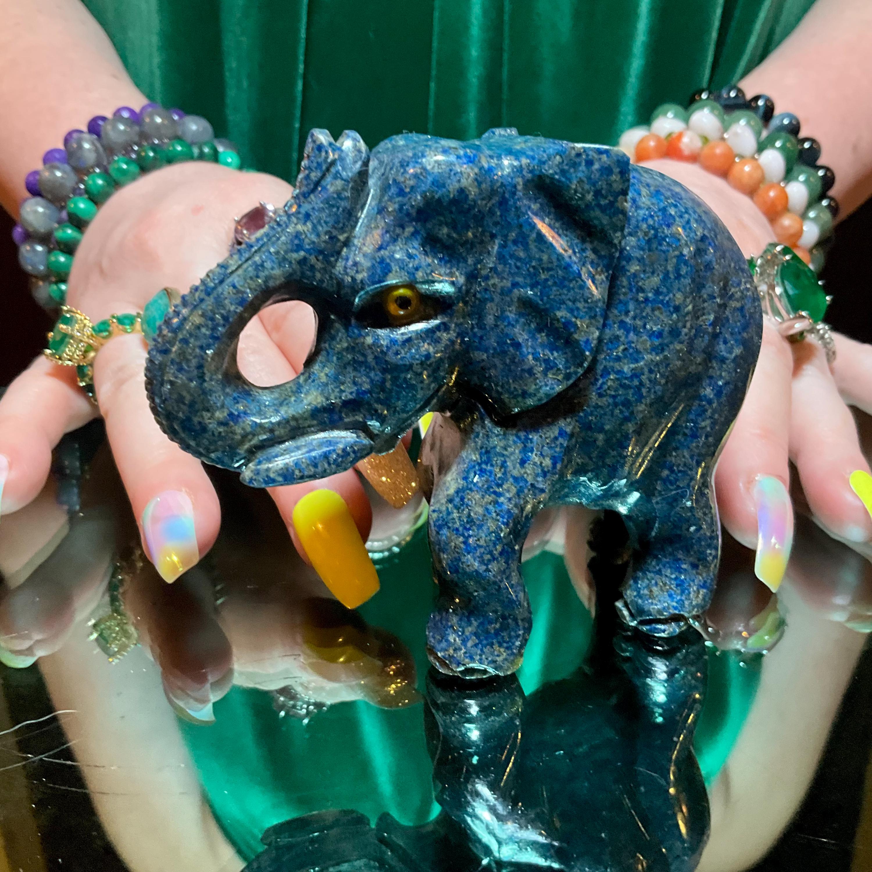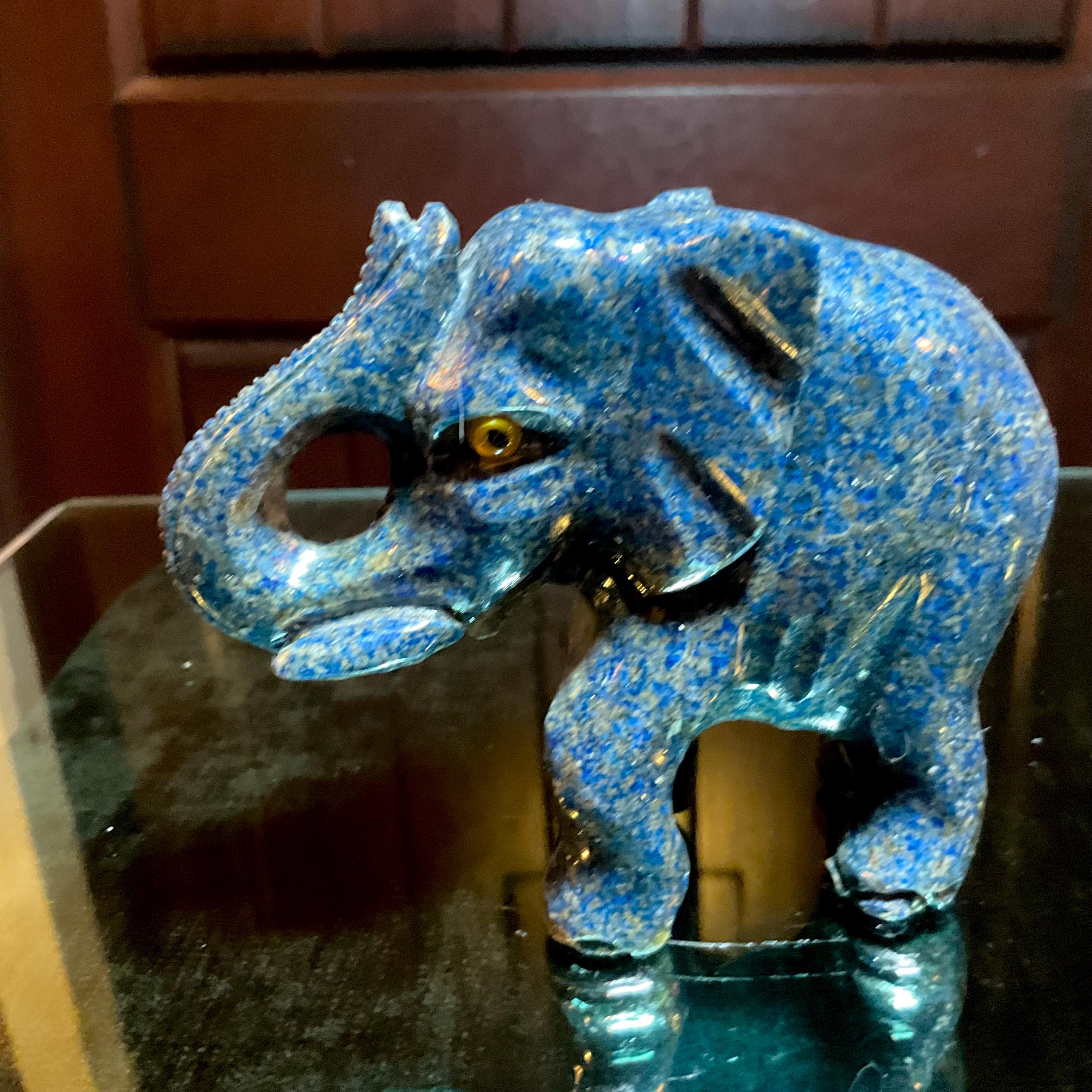 This is a one-of-a-kind carved Lapis Lazuli Crystal Elephant.