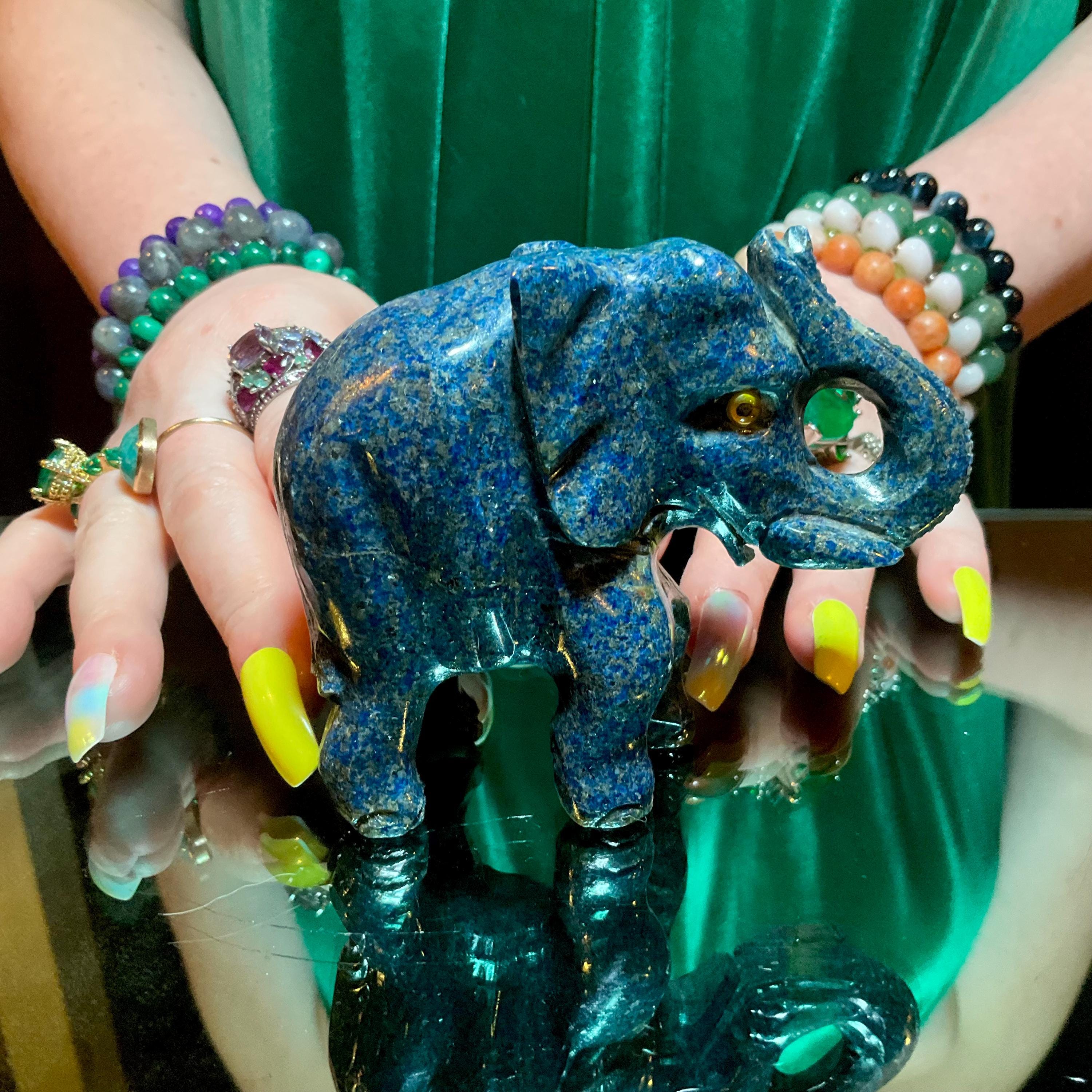 If you love vintage Lapis Lazuli expertly hand carved, then this adorable Crystal Elephant is for you.