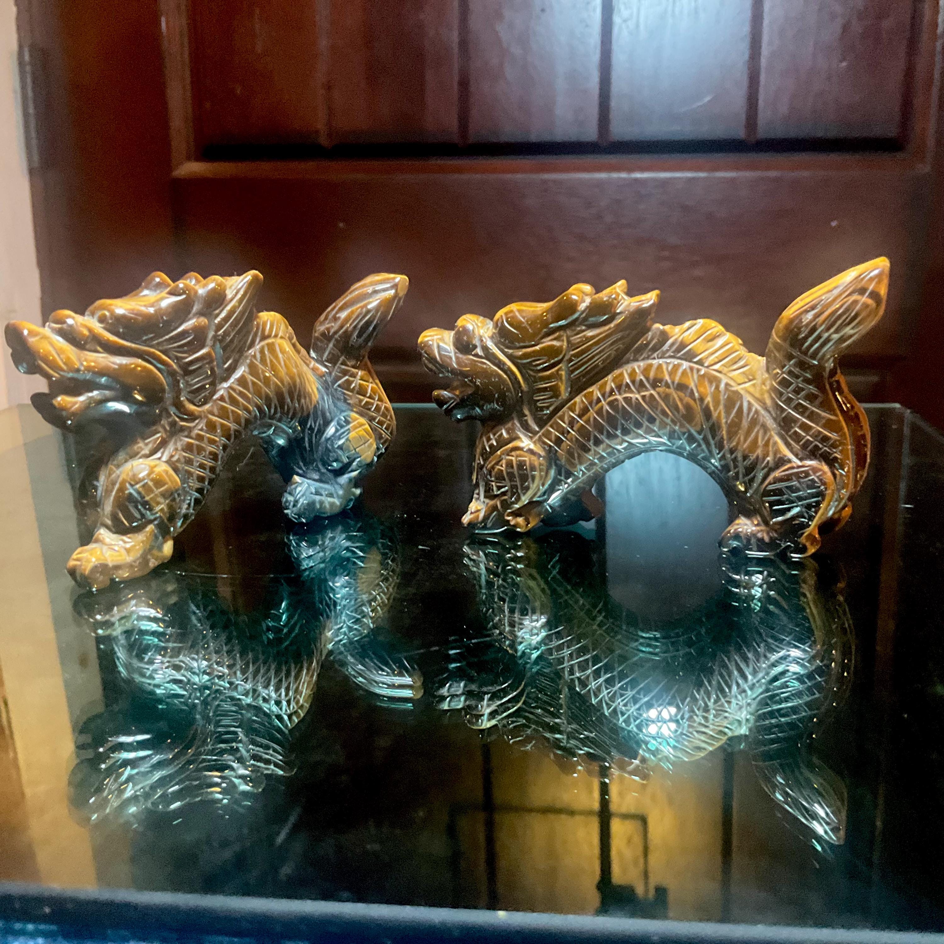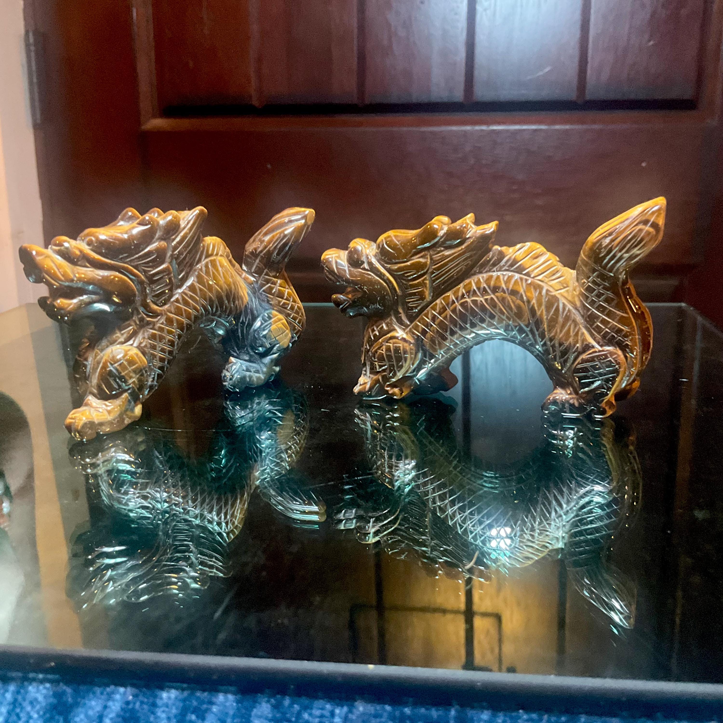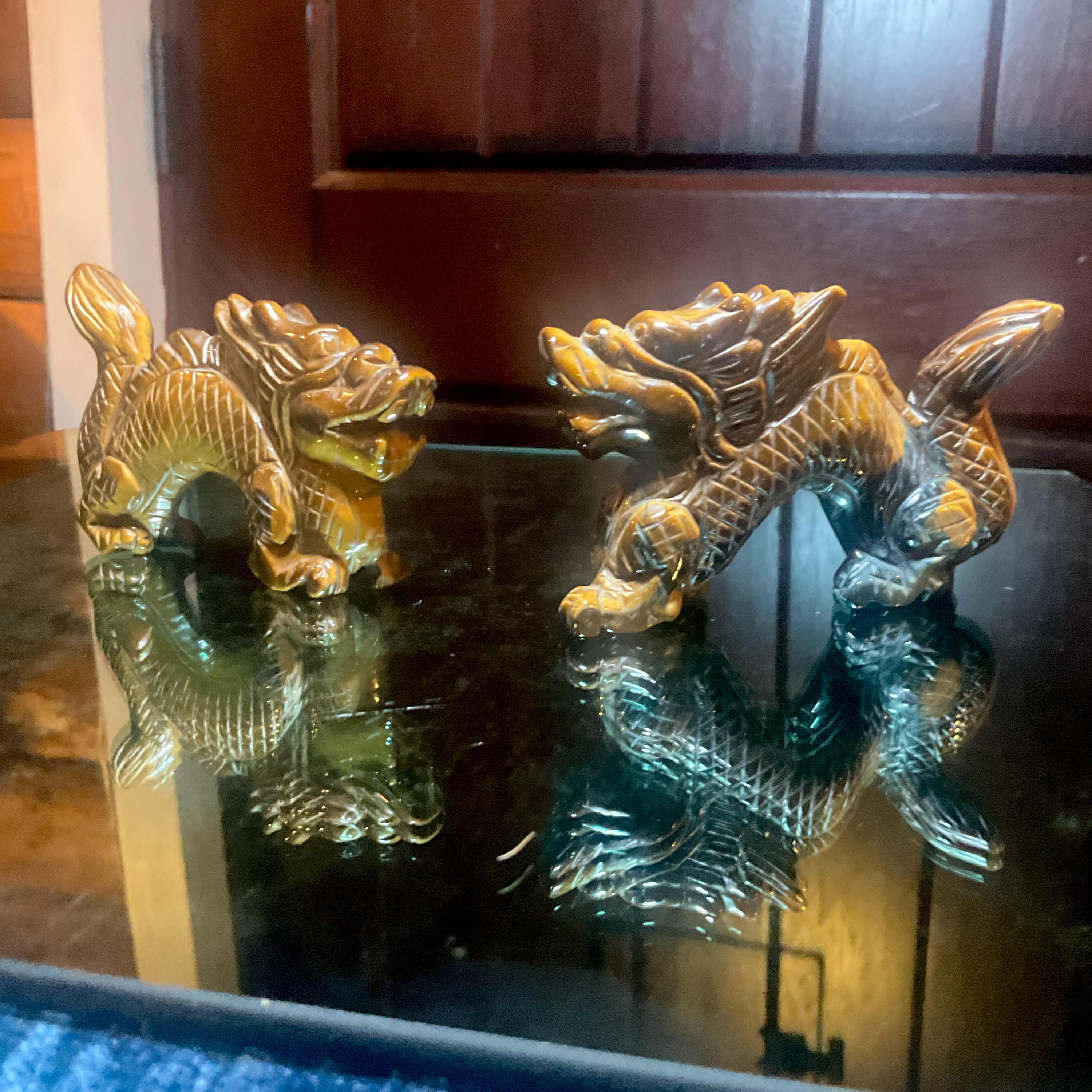 This piece of vintage Tiger's Eye Foo Dog is so beautiful, so thick and its natural patina is not like the modern Tiger's Eye from China.