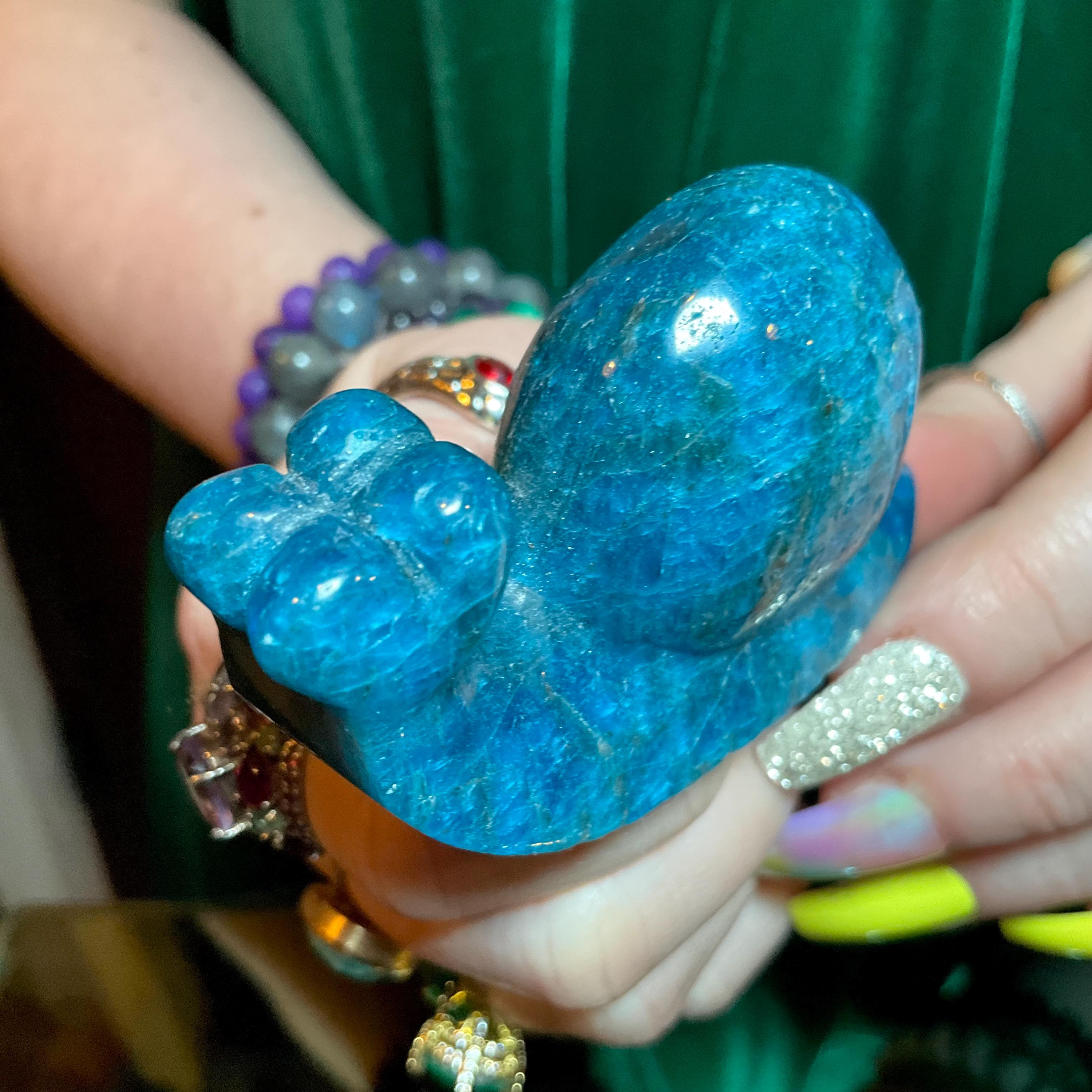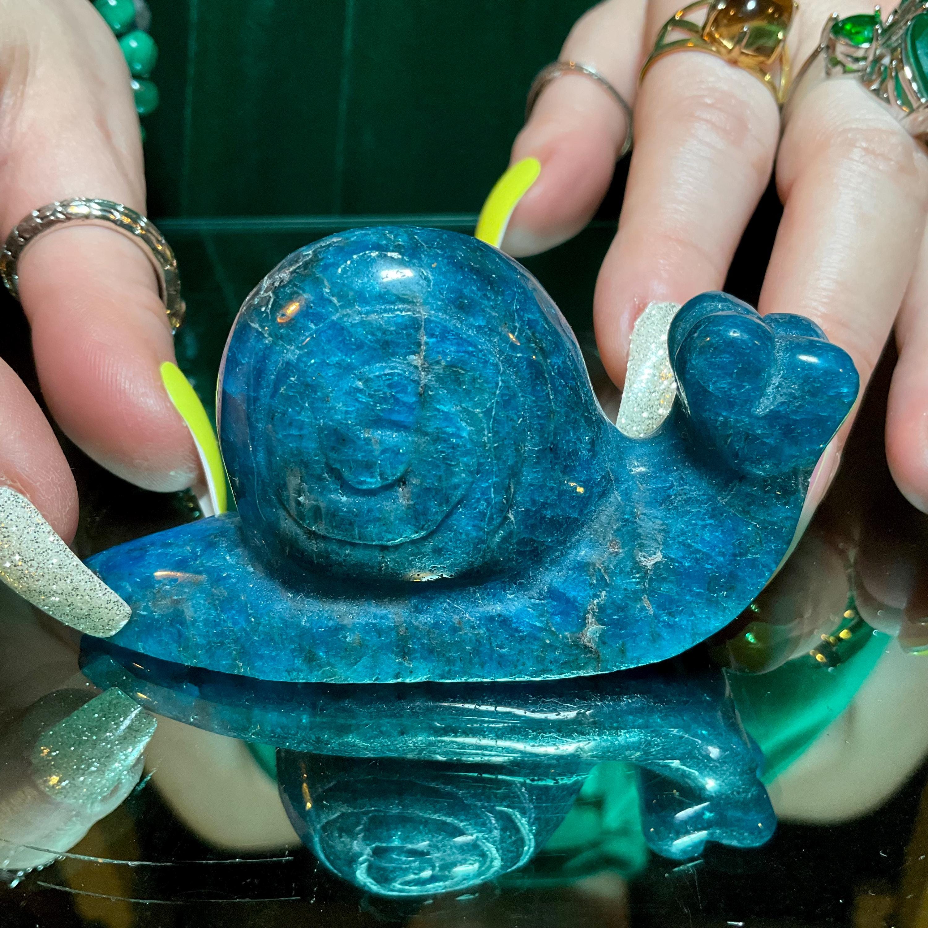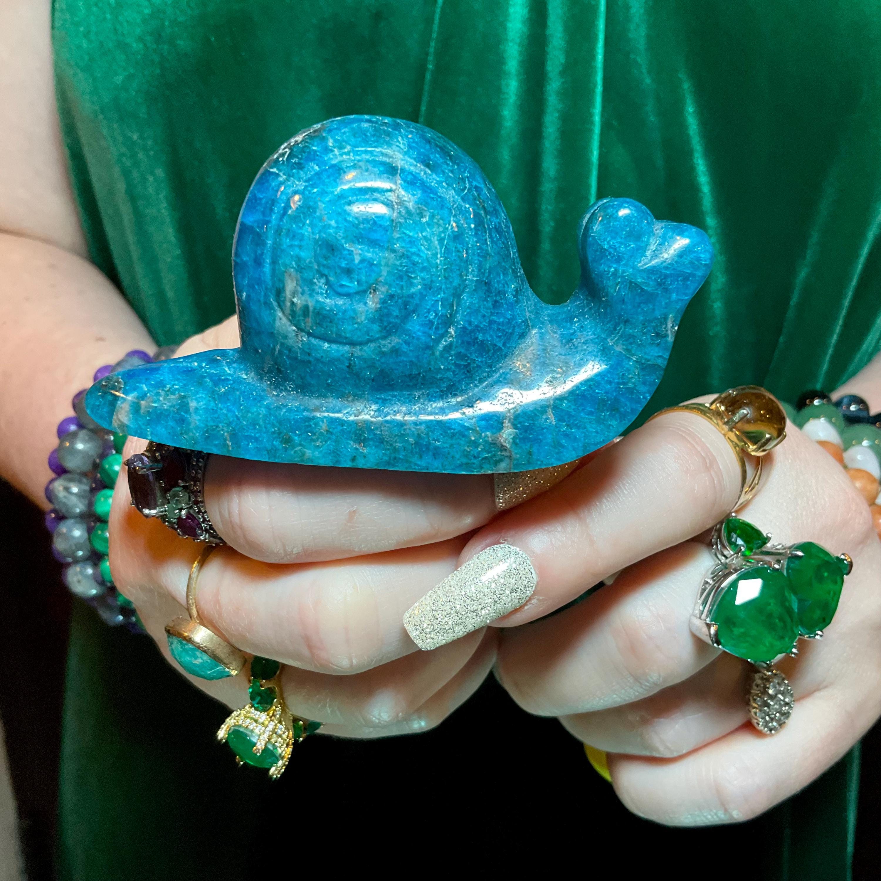 If you love vintage Blue Apatite Crystal expertly hand carved, then this adorable Crystal Snail is for you.