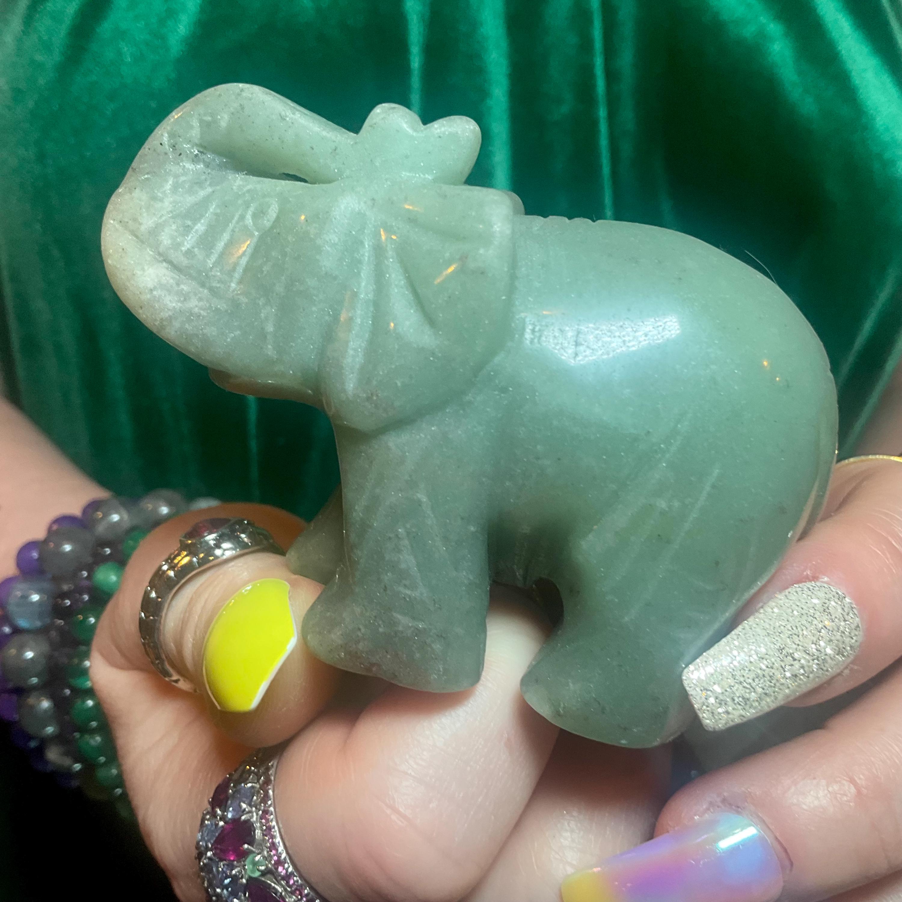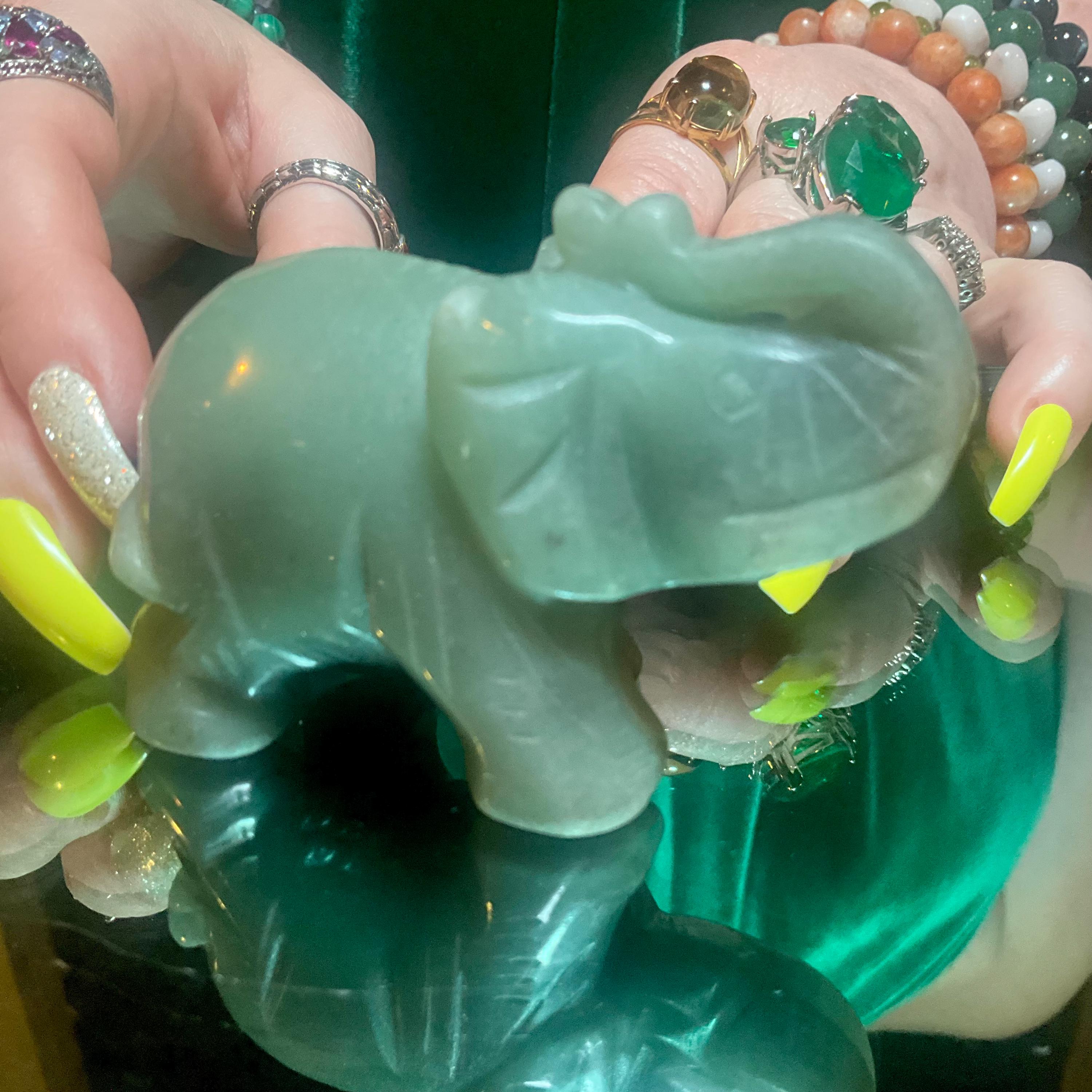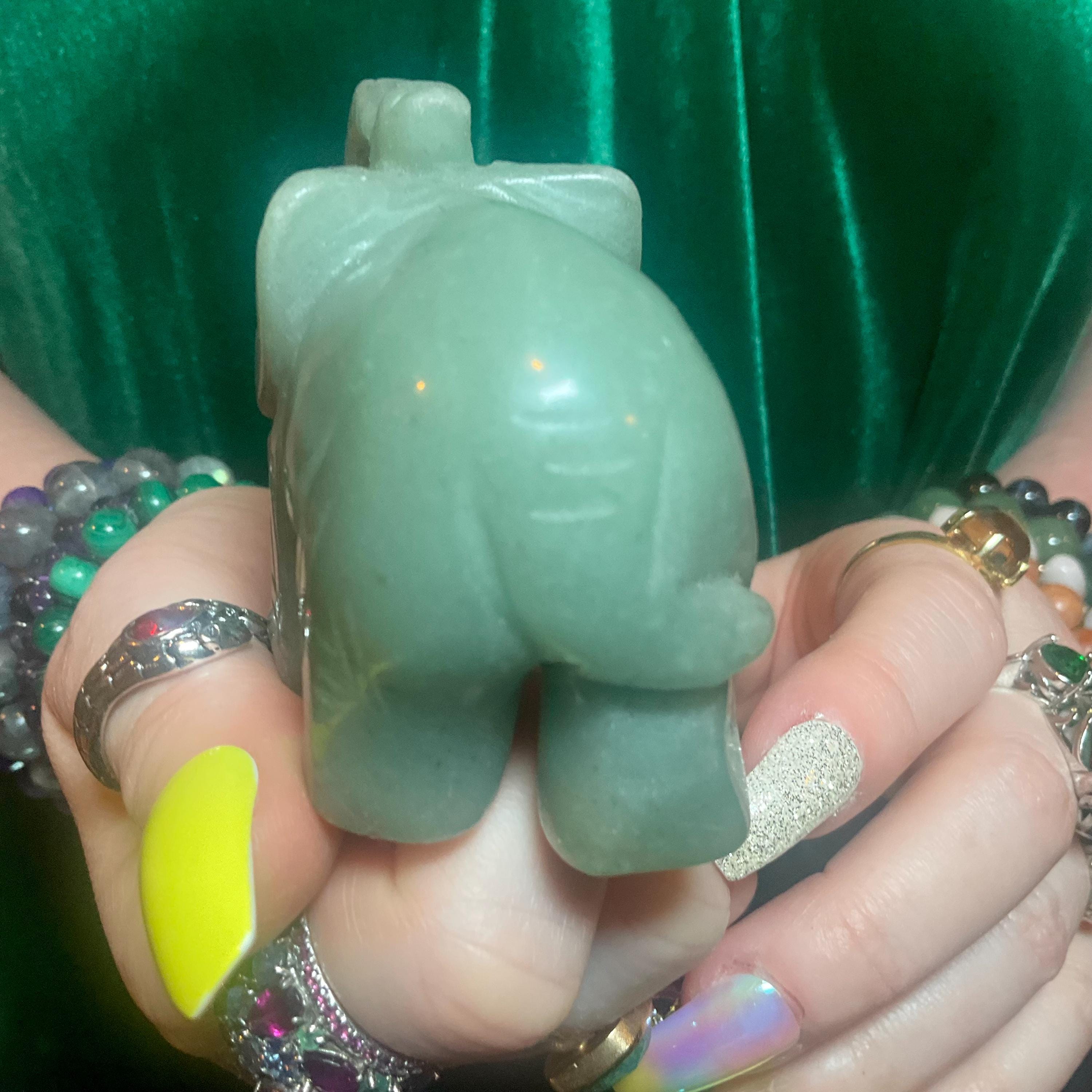 This is a one-of-a-kind carved Green Aventurine Crystal Elephant.