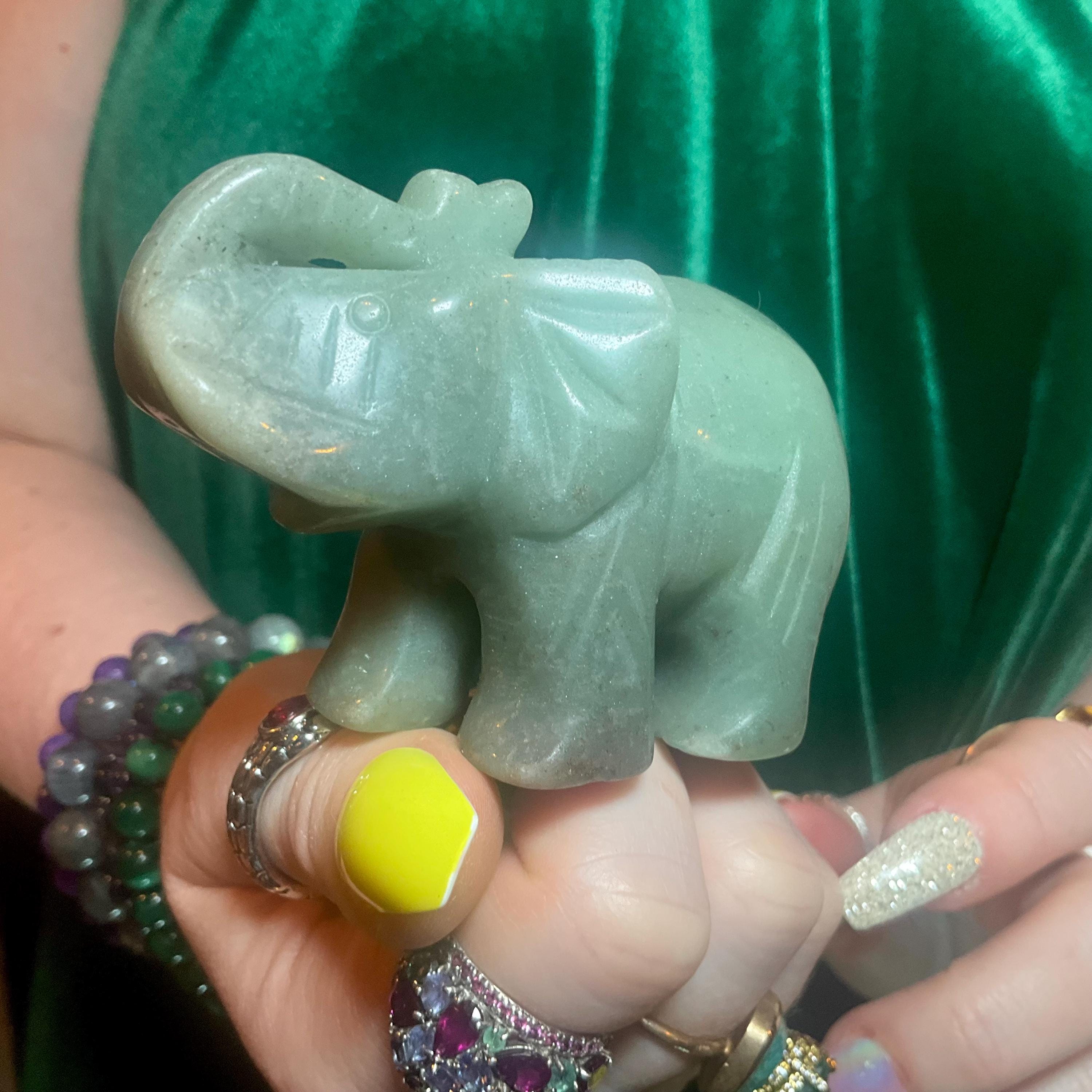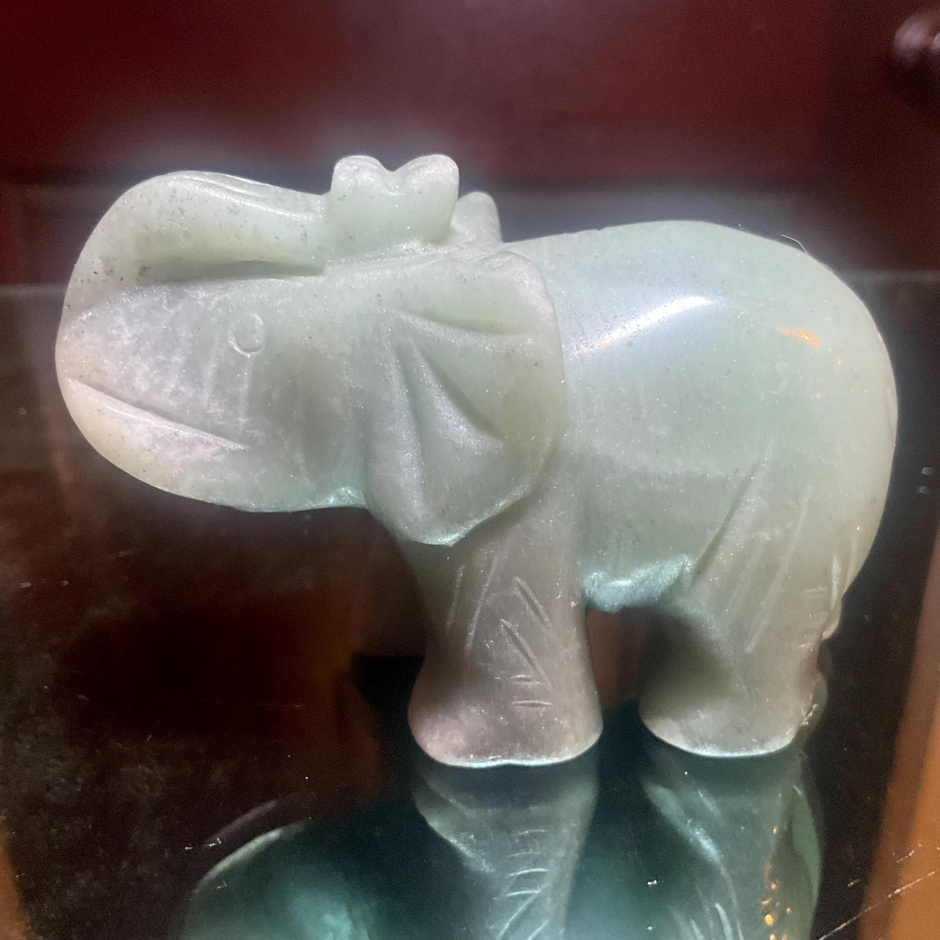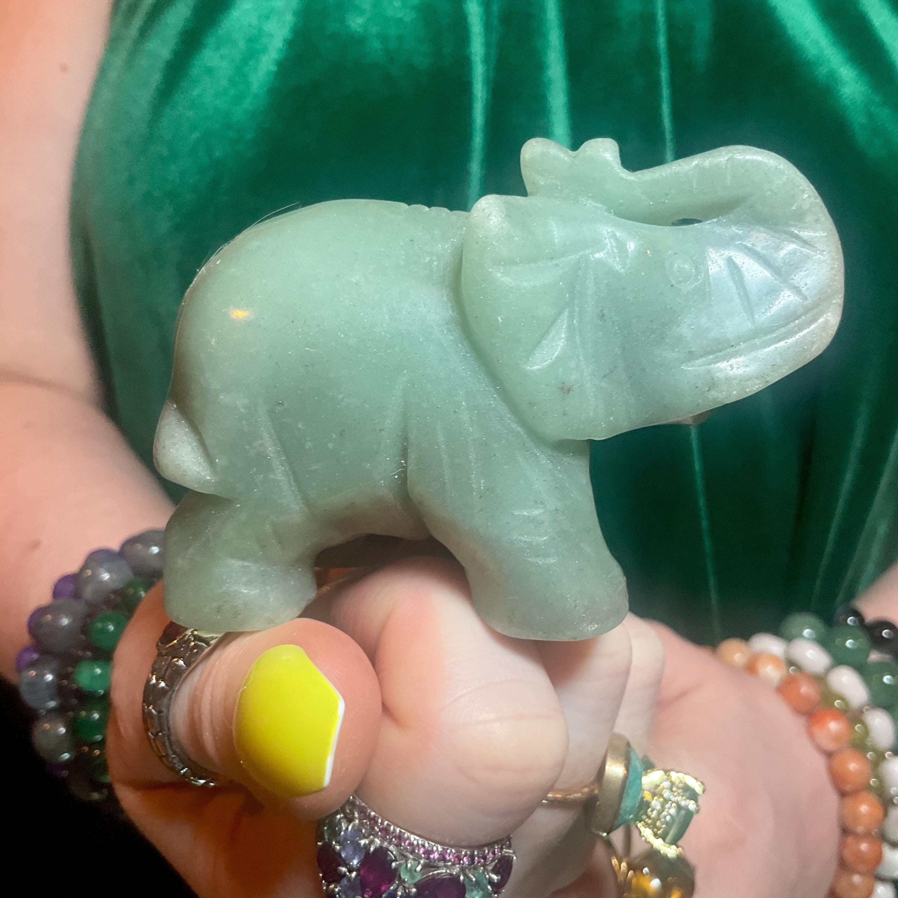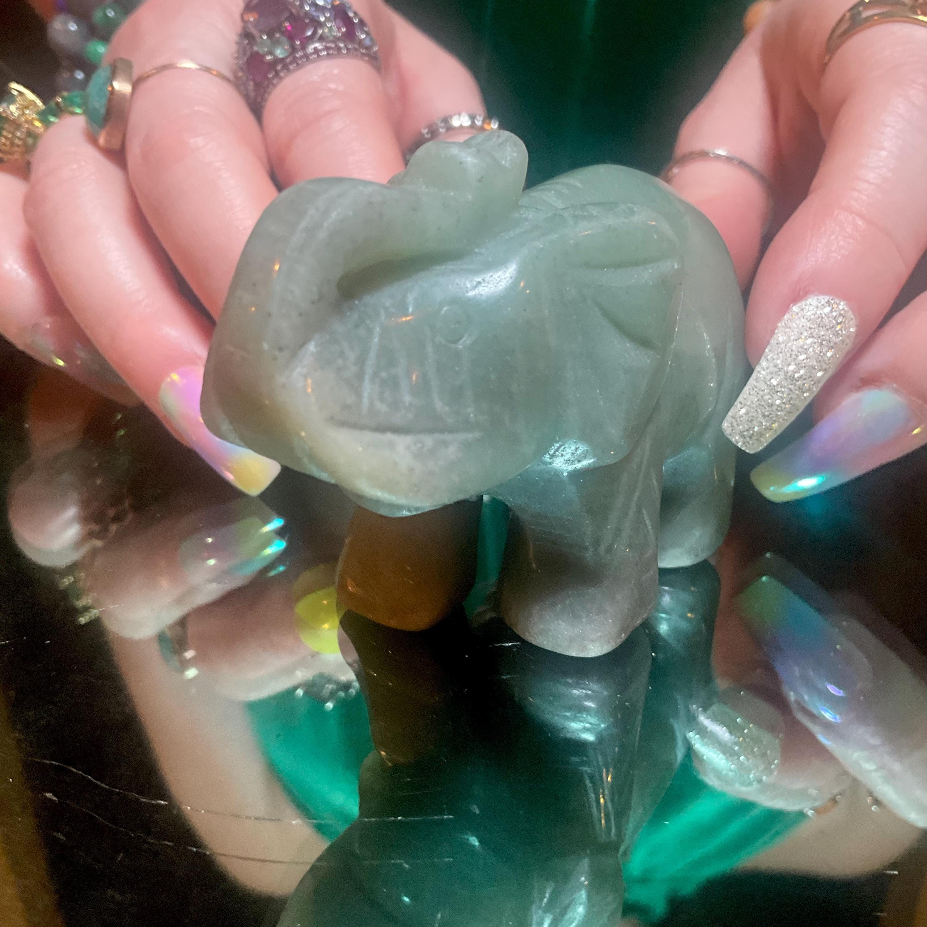 This is a one-of-a-kind carved Green Aventurine Crystal Elephant.