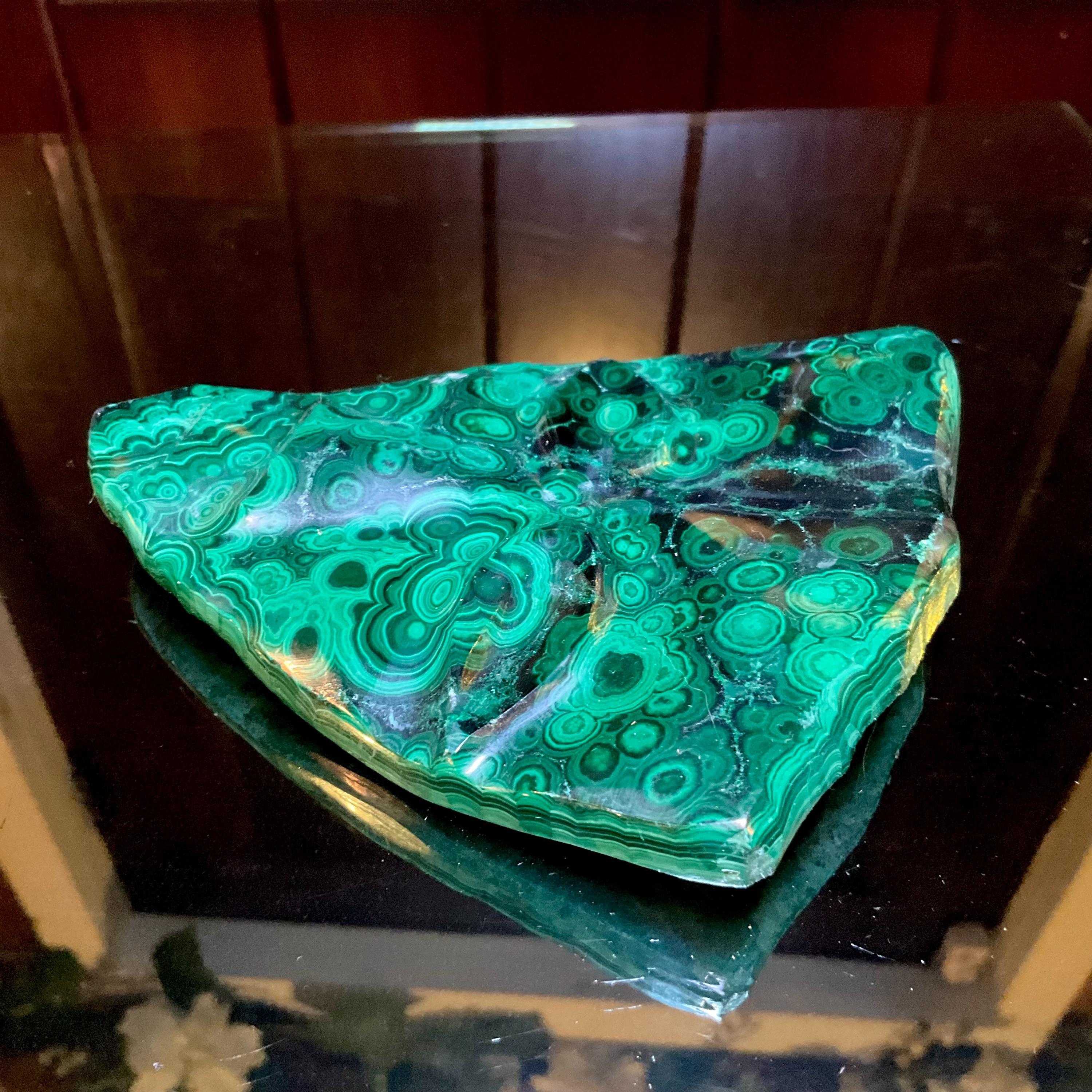 This beautiful malachite display was purchased from a collector from England and was part of a family collection going back many generations.