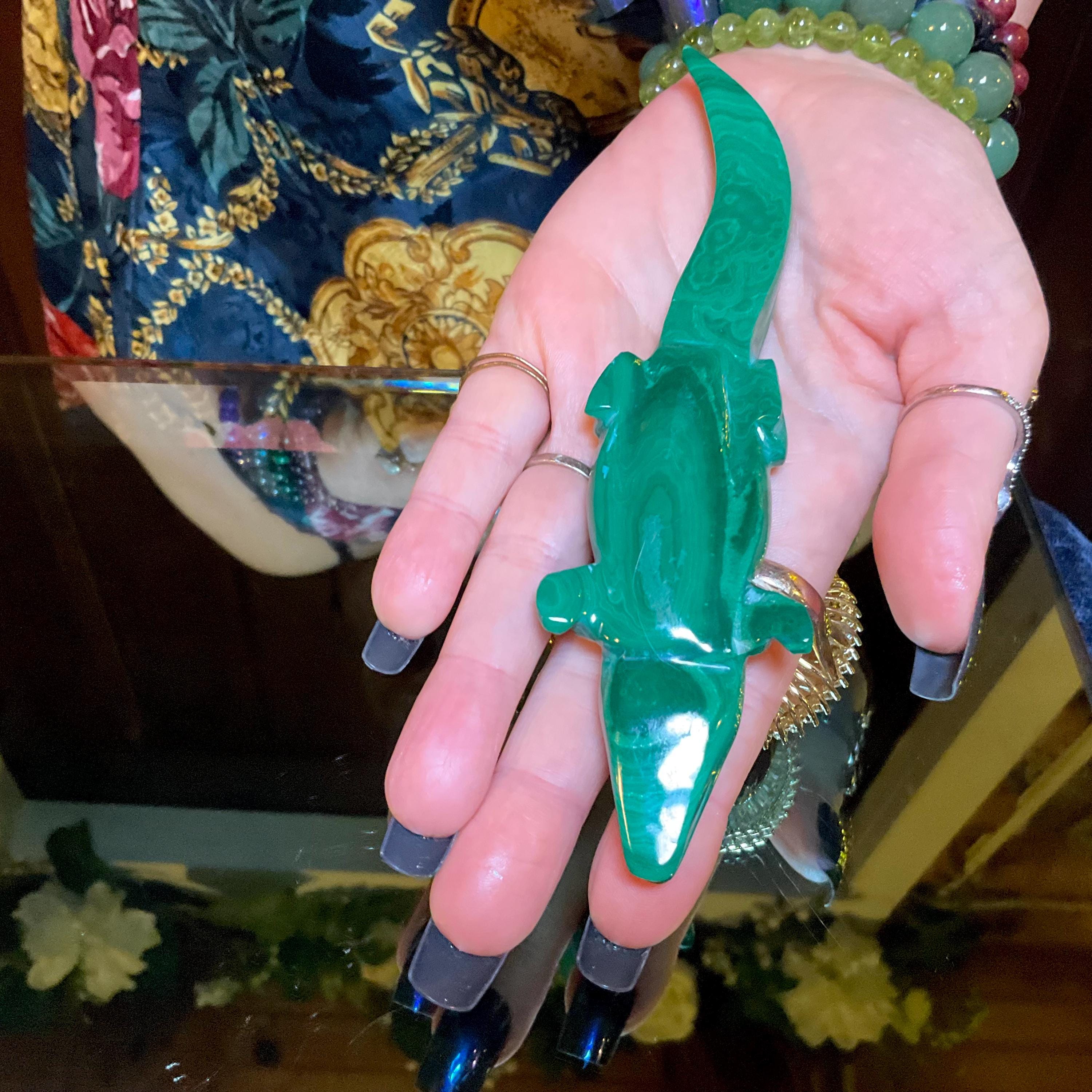 If you love vintage hand carved Malachite, then this beautiful Alligator is for you.